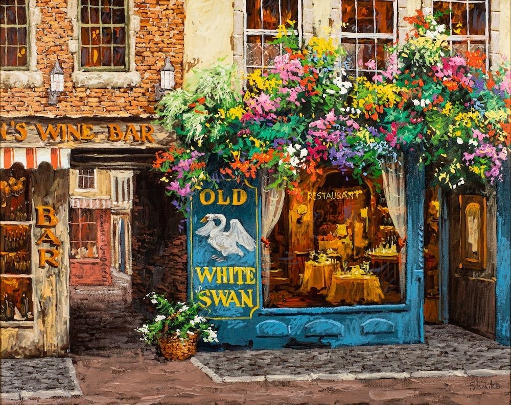 Viktor Shvaiko [Russian, b. 1965] A cobbled city street signed lower right oil on canvas 59 x 74cm