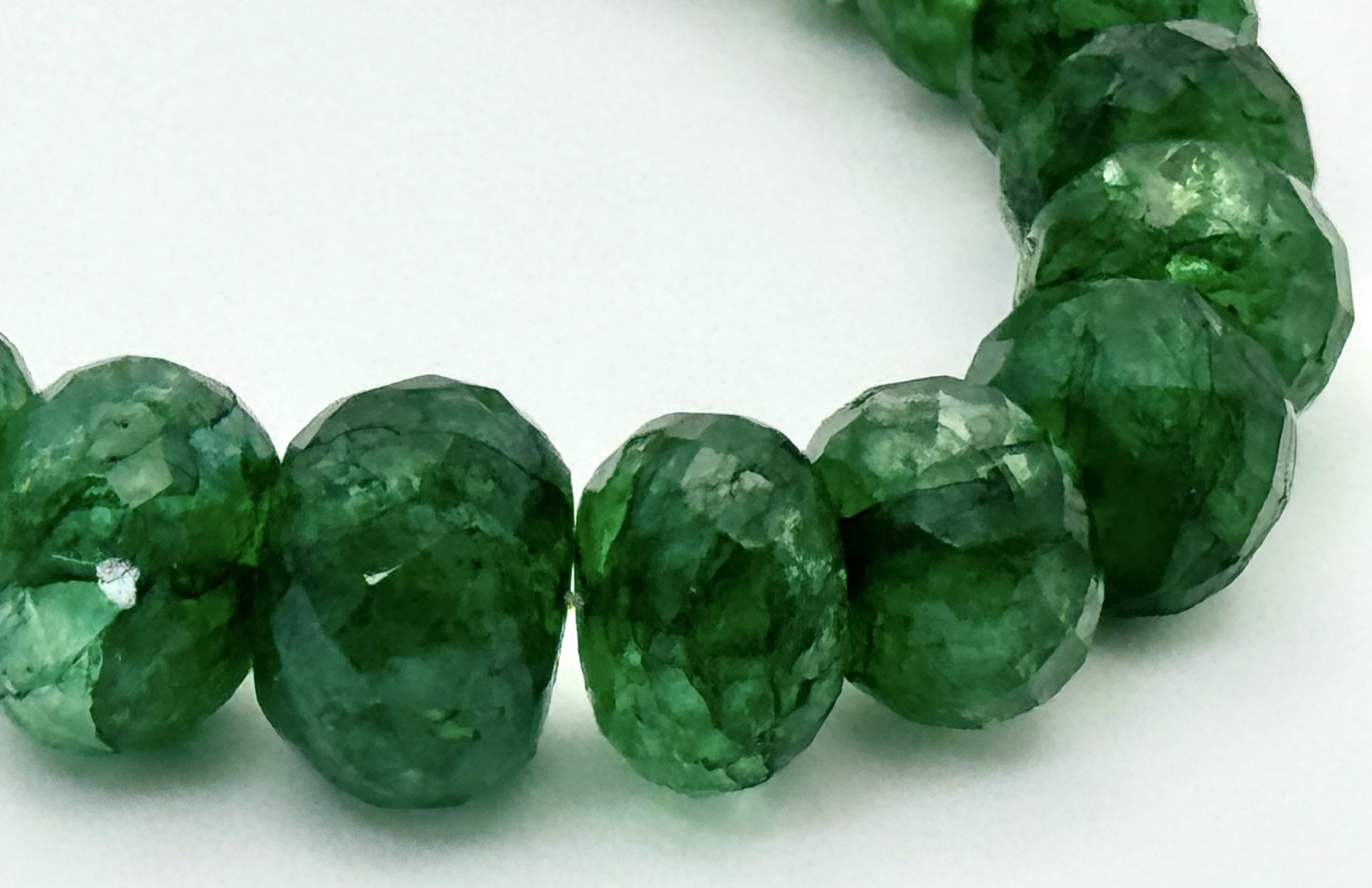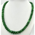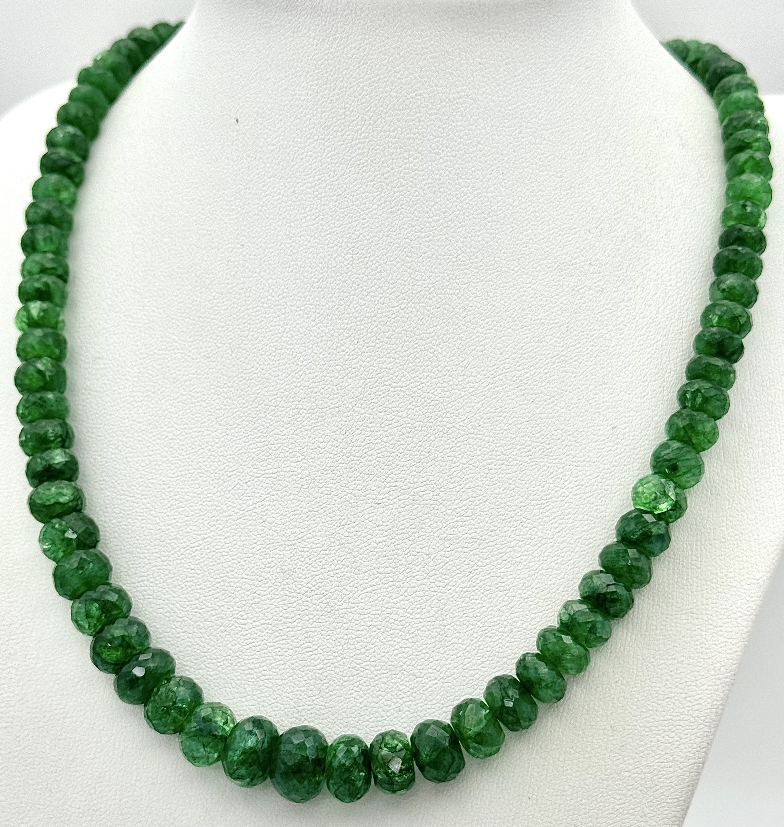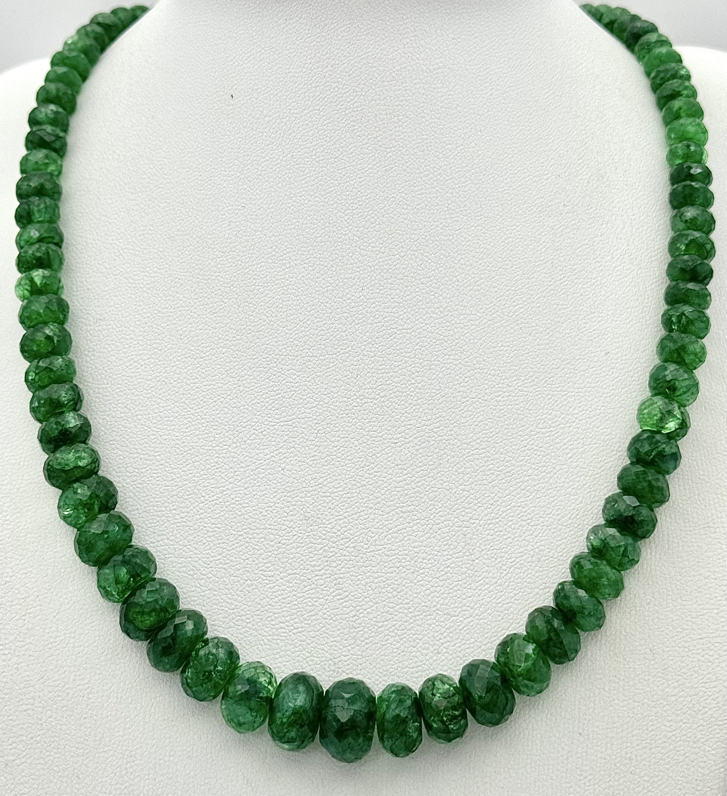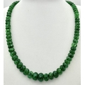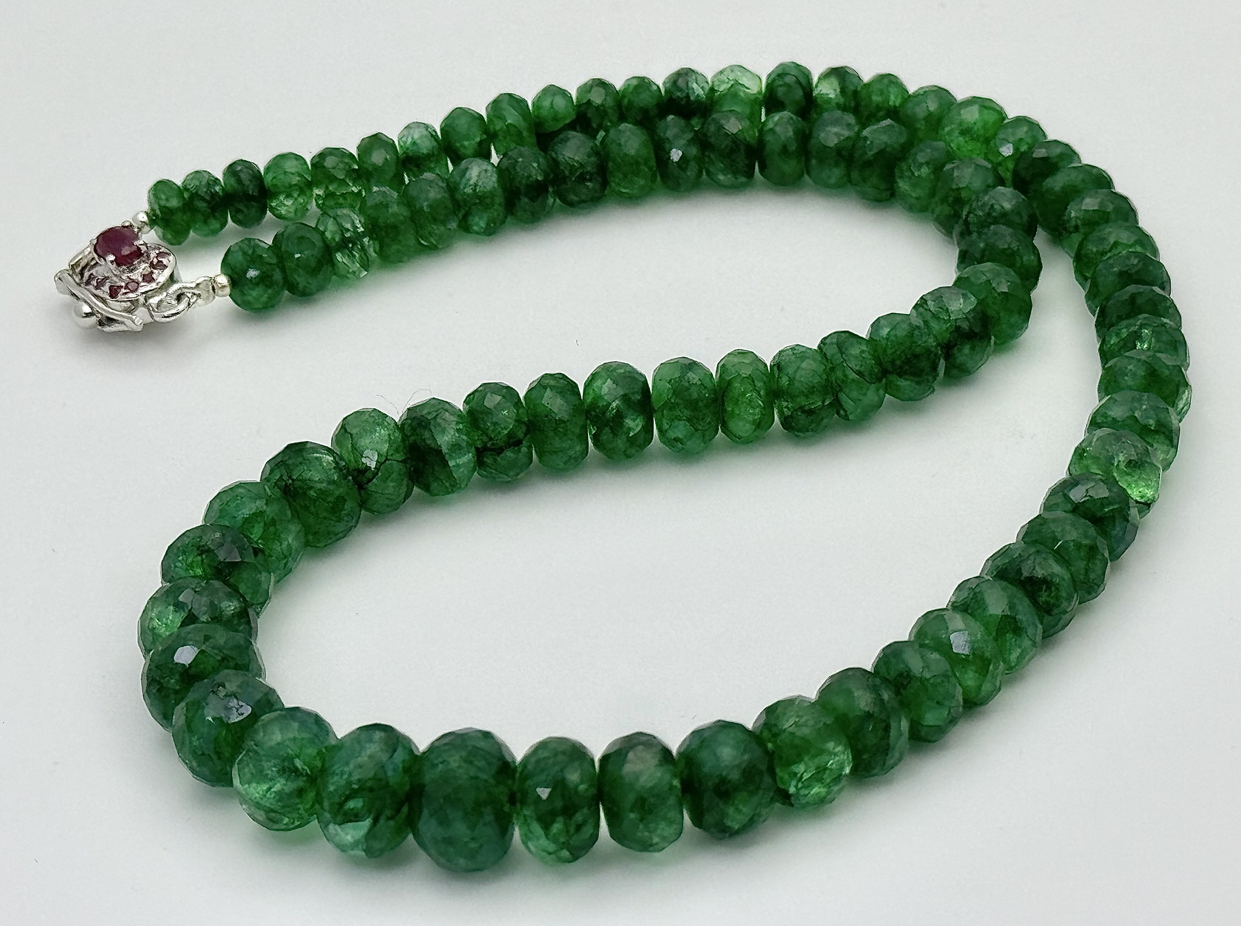 A 200ct Graduating Emerald Rondelle Gemstone Necklace with a Ruby and 925 Silver Clasp. 42cm. CD-1965