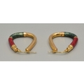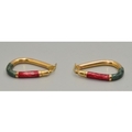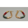 Good size 9ct gold hoop earrings with Green and Red enamel decoration 33x26mm 5.3grams
