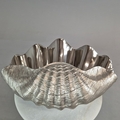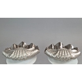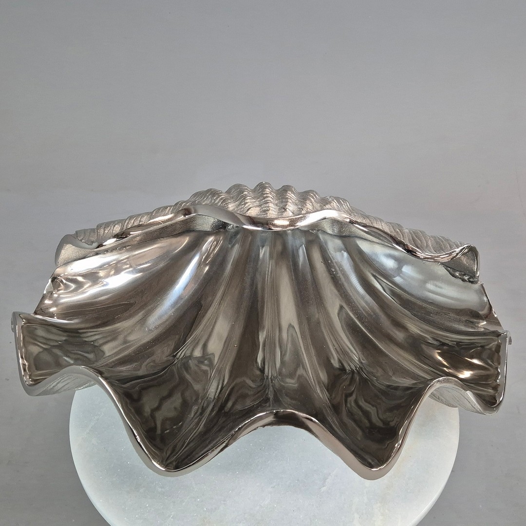 PAIR OF POLISHED METAL CLAM SHELL DISHES. 18cm H x 46cm W x 36cm D.