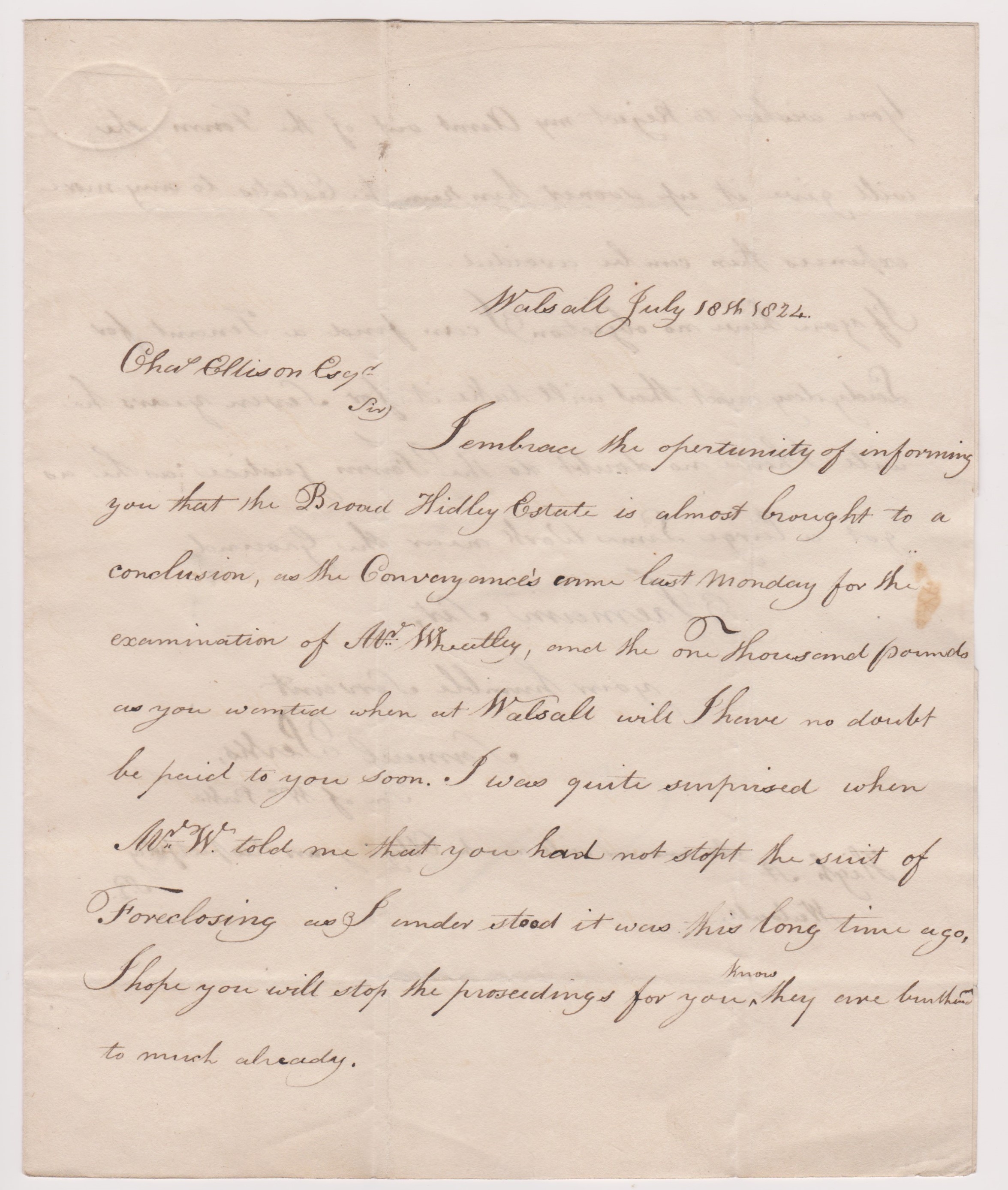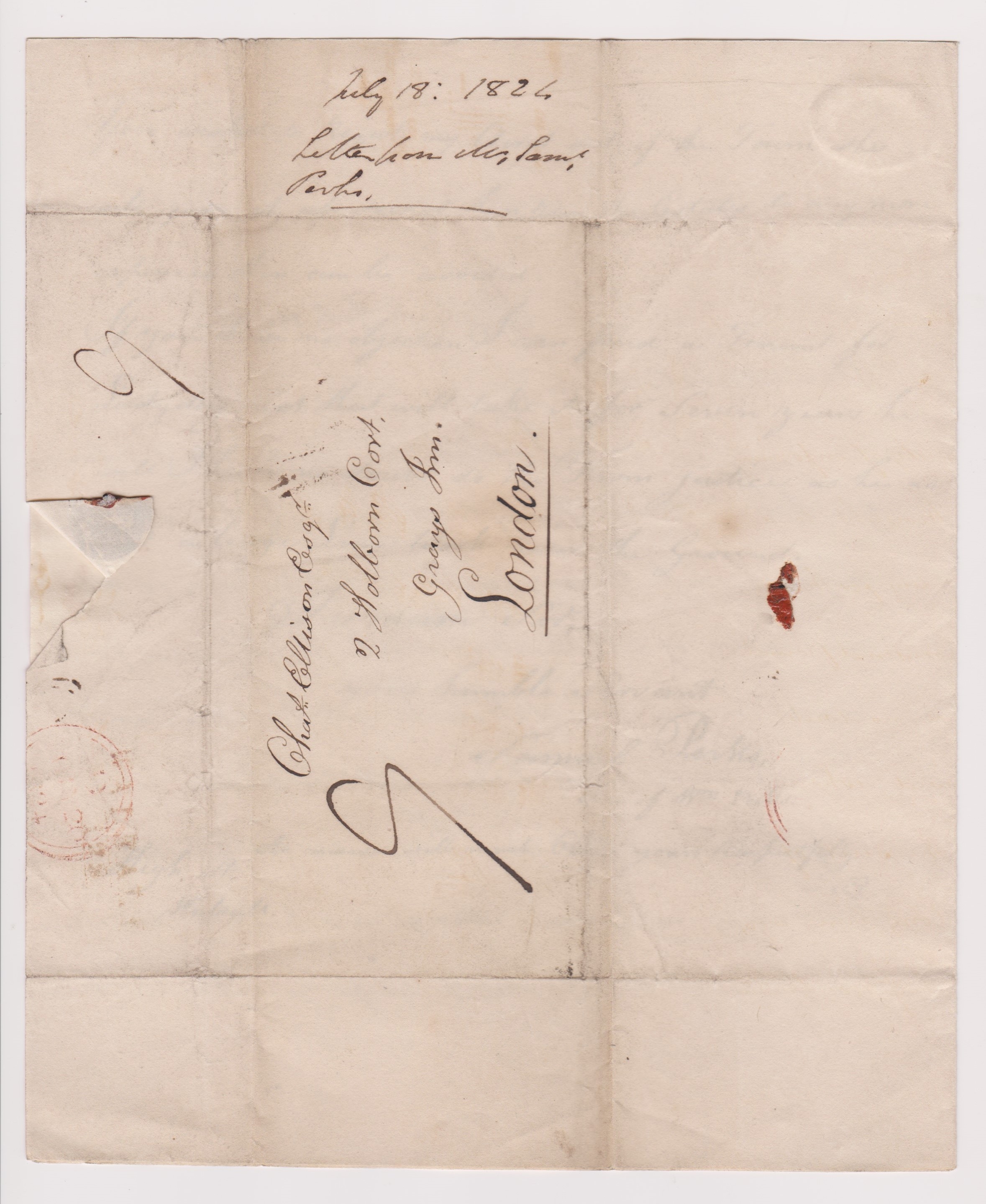 Great Britain 1824-EL dated July 18th 1824-Walsall posted to London-manuscript 9 - 2line Walsall 128 and red two circle Ju20 1824 cancel
