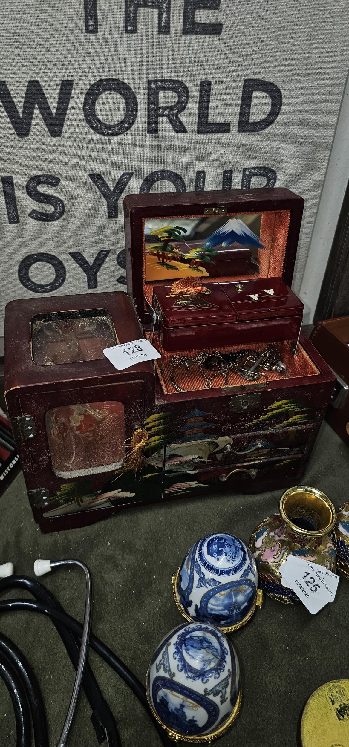 Asian jewellery box + contents