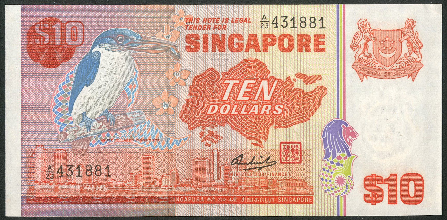 Singapore, Board of Commissioners, 10 dollars, (1979), #A/23 431881, (Pick 11b). GEF.