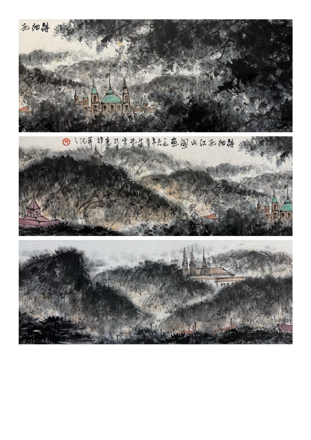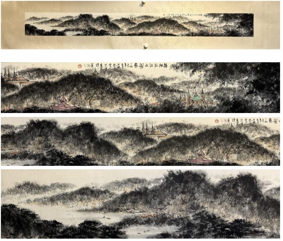 Landscapes - Chinese ink and watercolour on paper scroll. Attributed to Fu Baoshi (1904-1965) a Chinese painter from Xinyu, Jiangxi province.