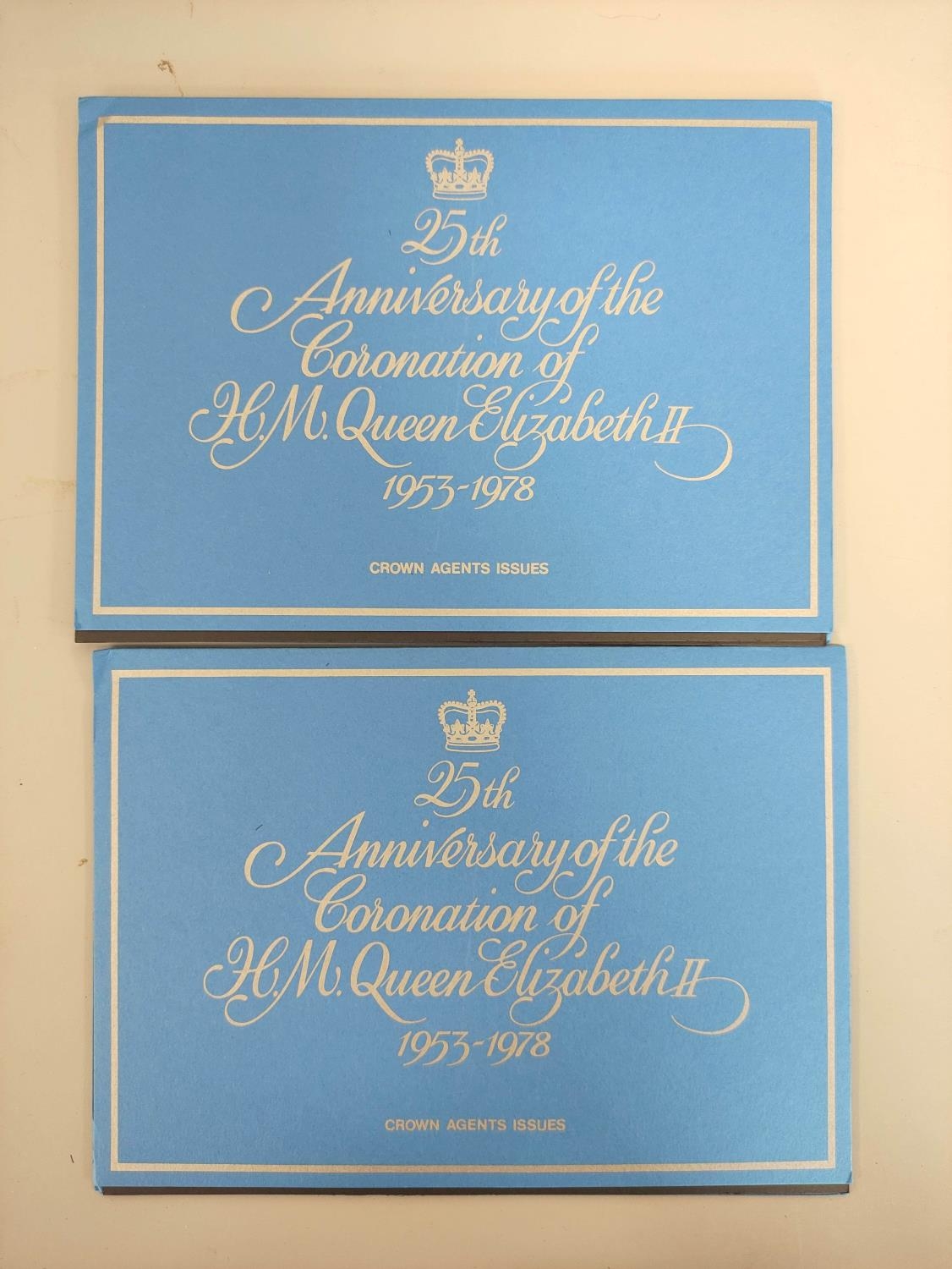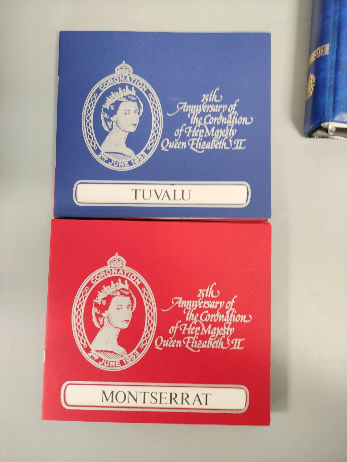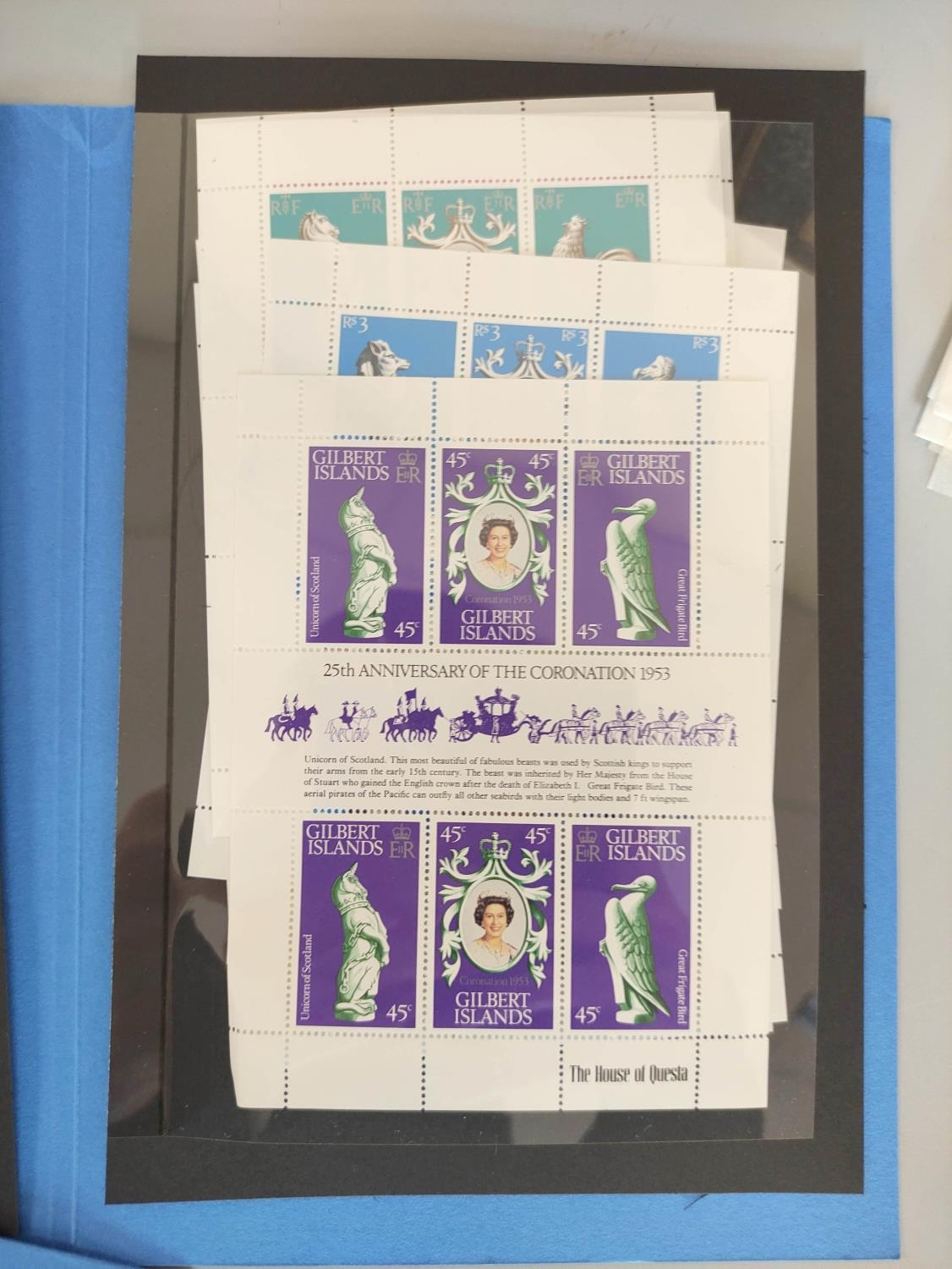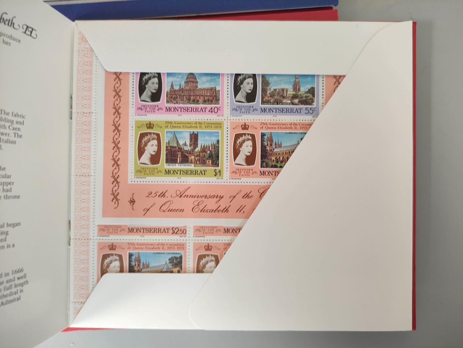 Box containing a large quantity of postage stamps and albums relating to Royal commemorative events such as the Queen Mother's 80th birthday. Many sealed. To include British and commonwealth issues.