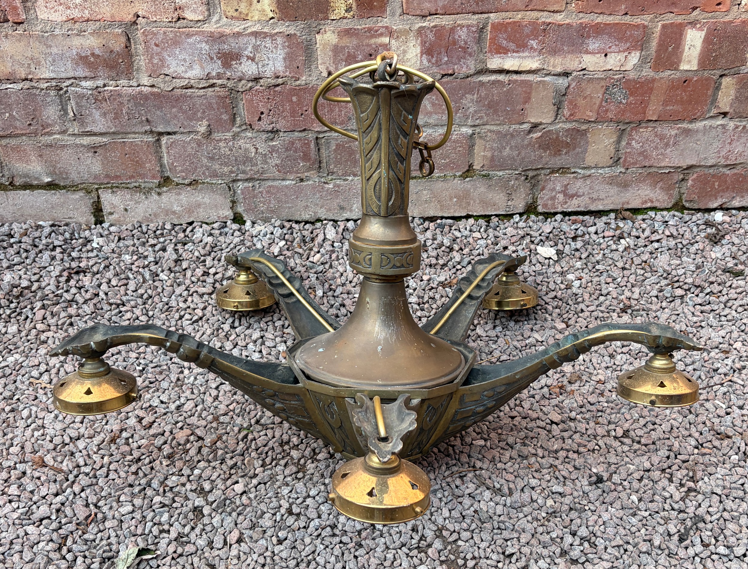 BRASS FIVE BRANCH CEILING LIGHT