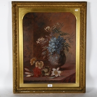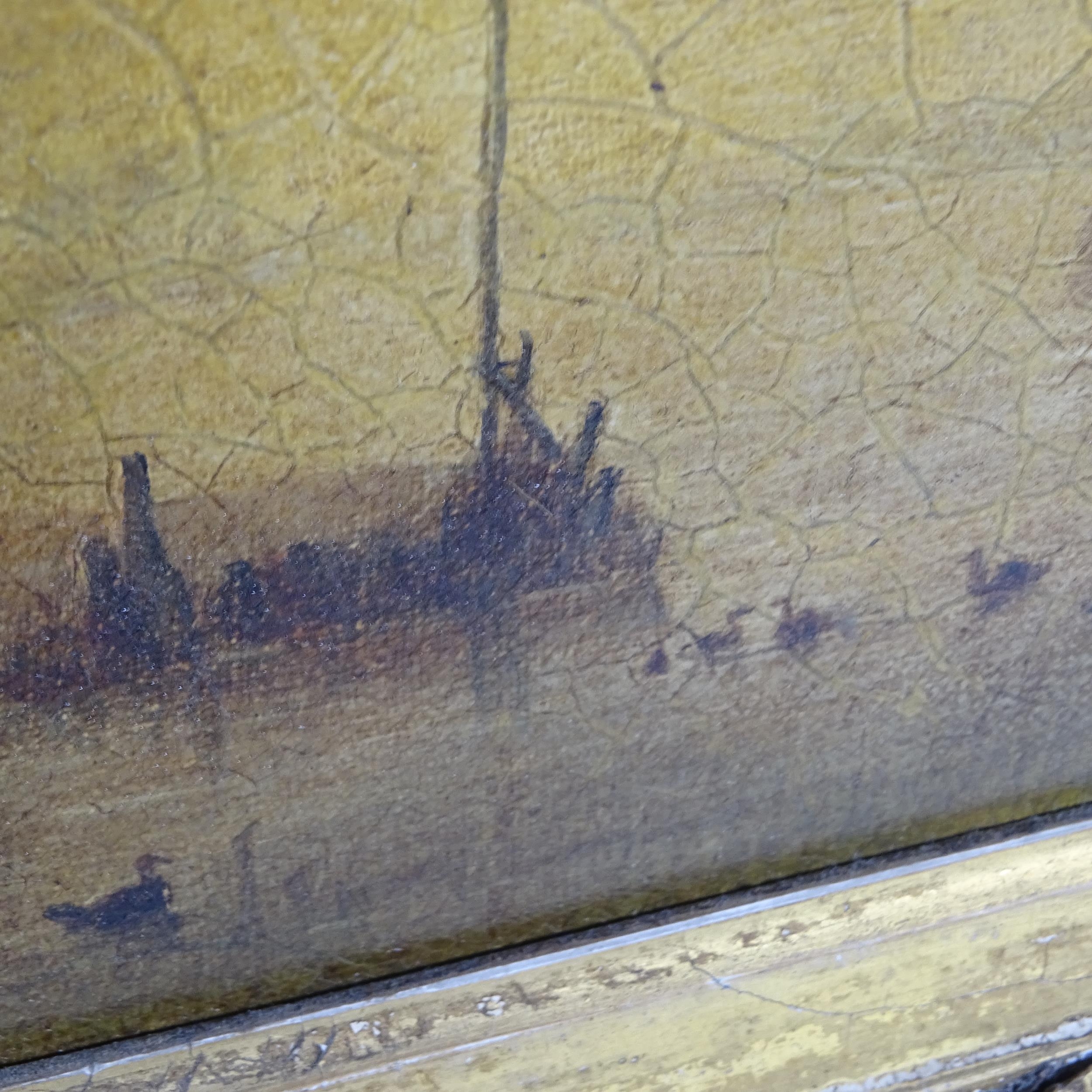 Good overall condition. Paint appears stable but will need cleaning. Canvass has not been re-lined. No signs of tearing or repair. Picture and frame appear original. Some sections of gesso missing as seen.