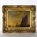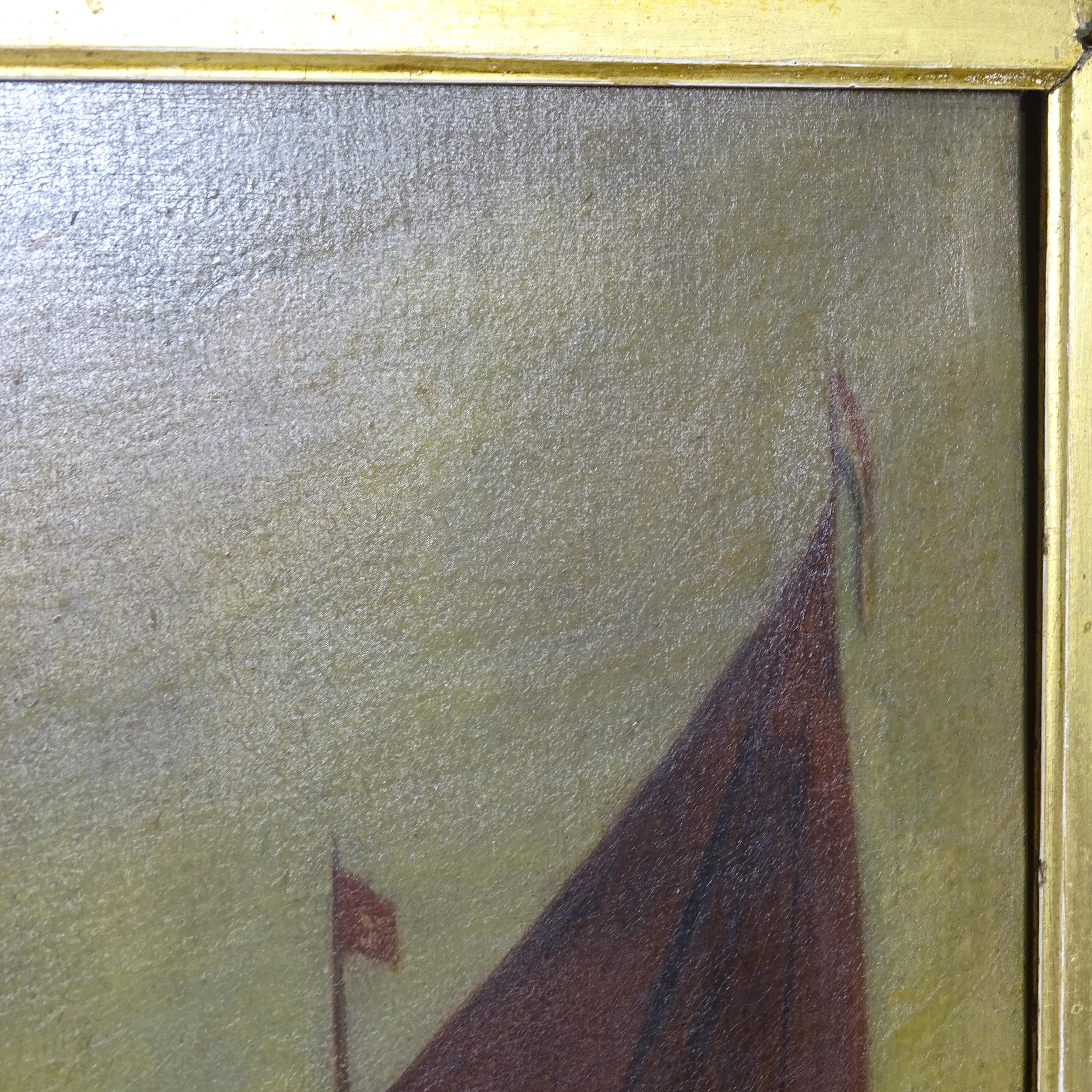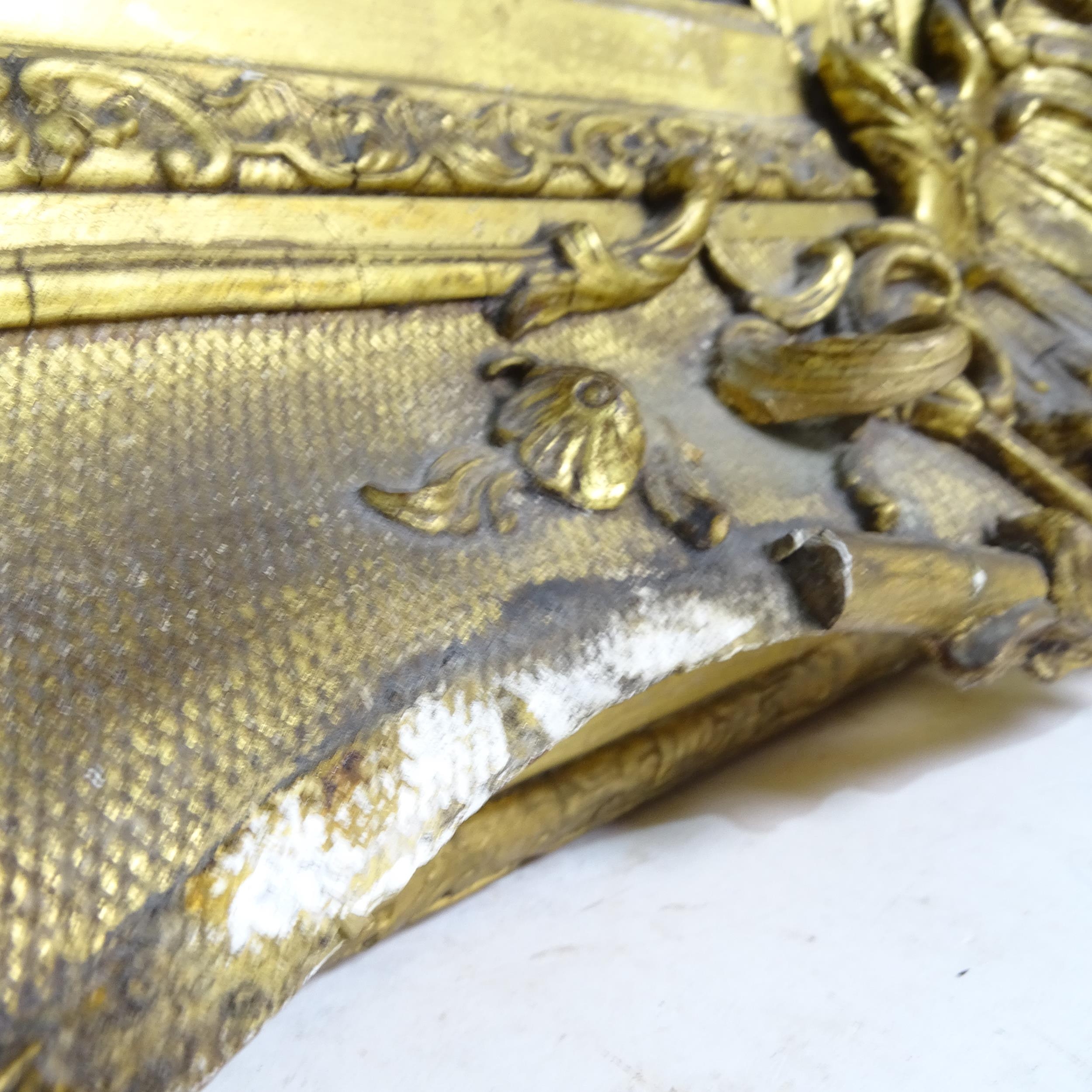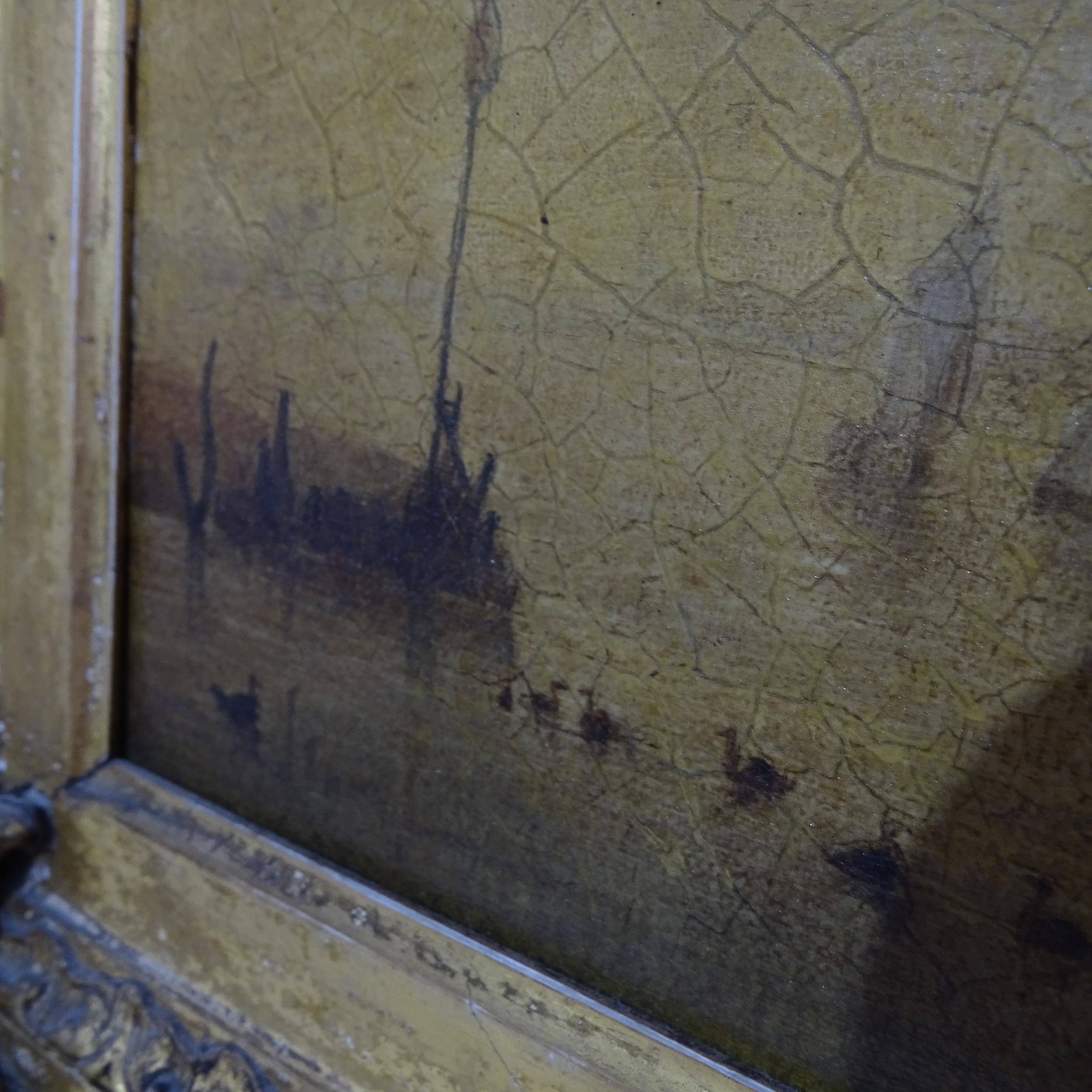 A Victorian oil on canvas, figures on a ship at harbour, image size 35cm x 46cm, 57cm x 69cm overall, in ornate giltwood and gesso frame, unsigned
