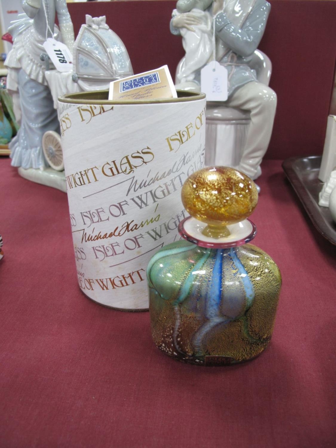Isle of Wight Studio Glass Scent Bottle and Stopper, multi-coloured, 10cm high (boxed).
