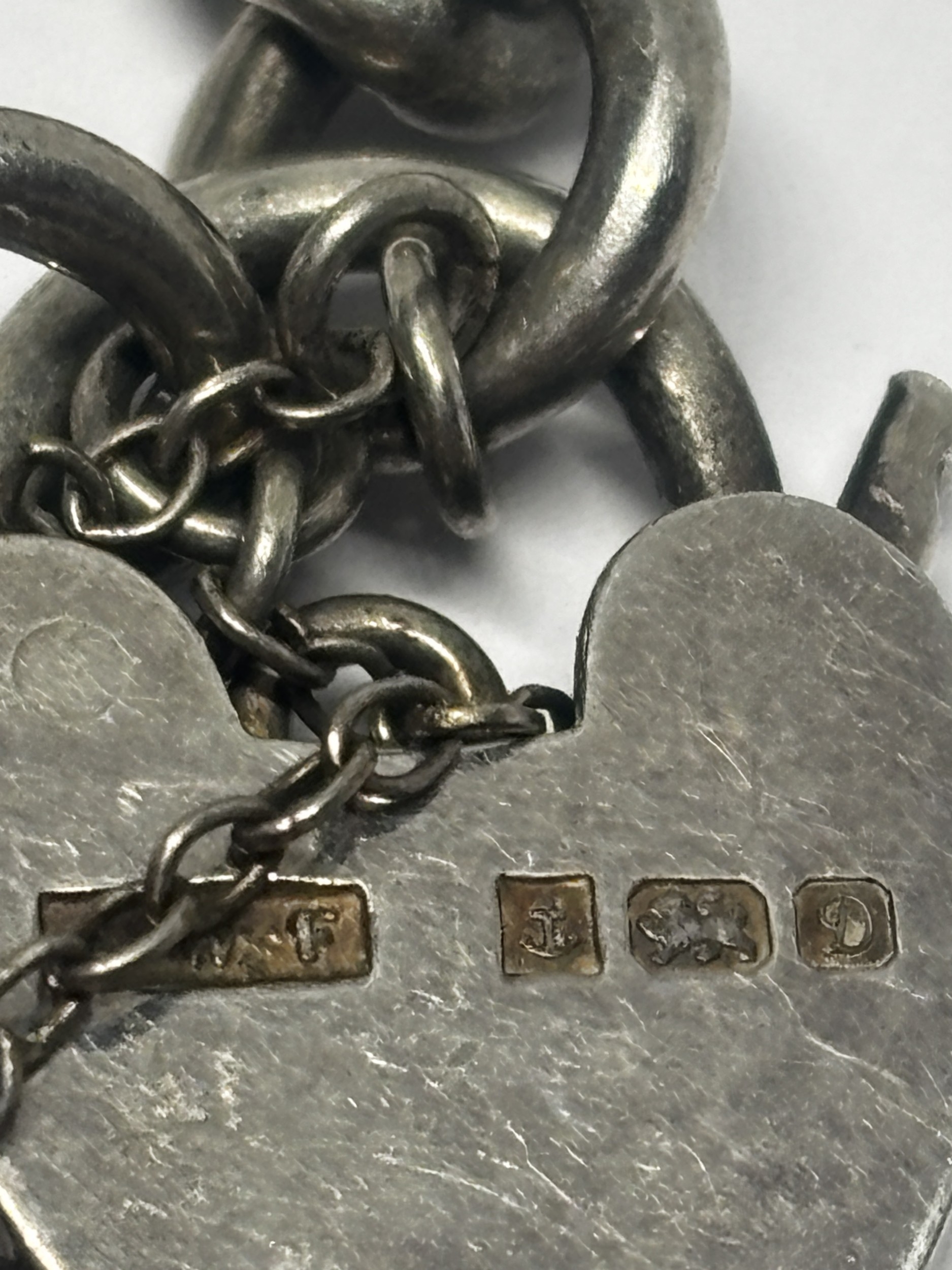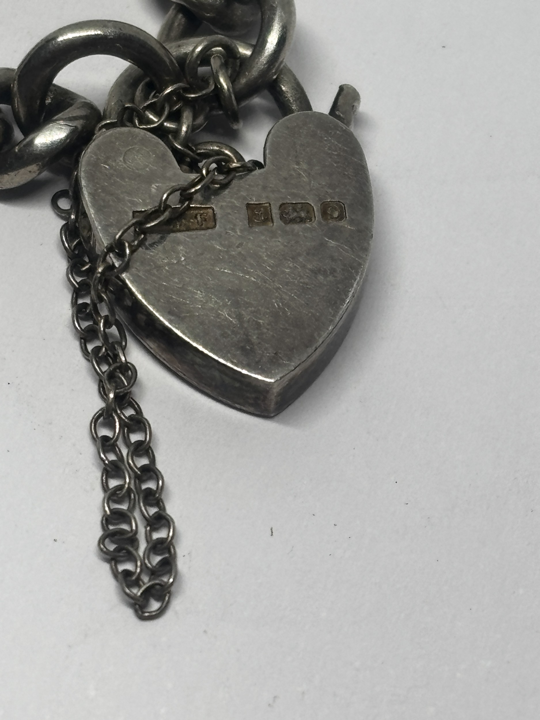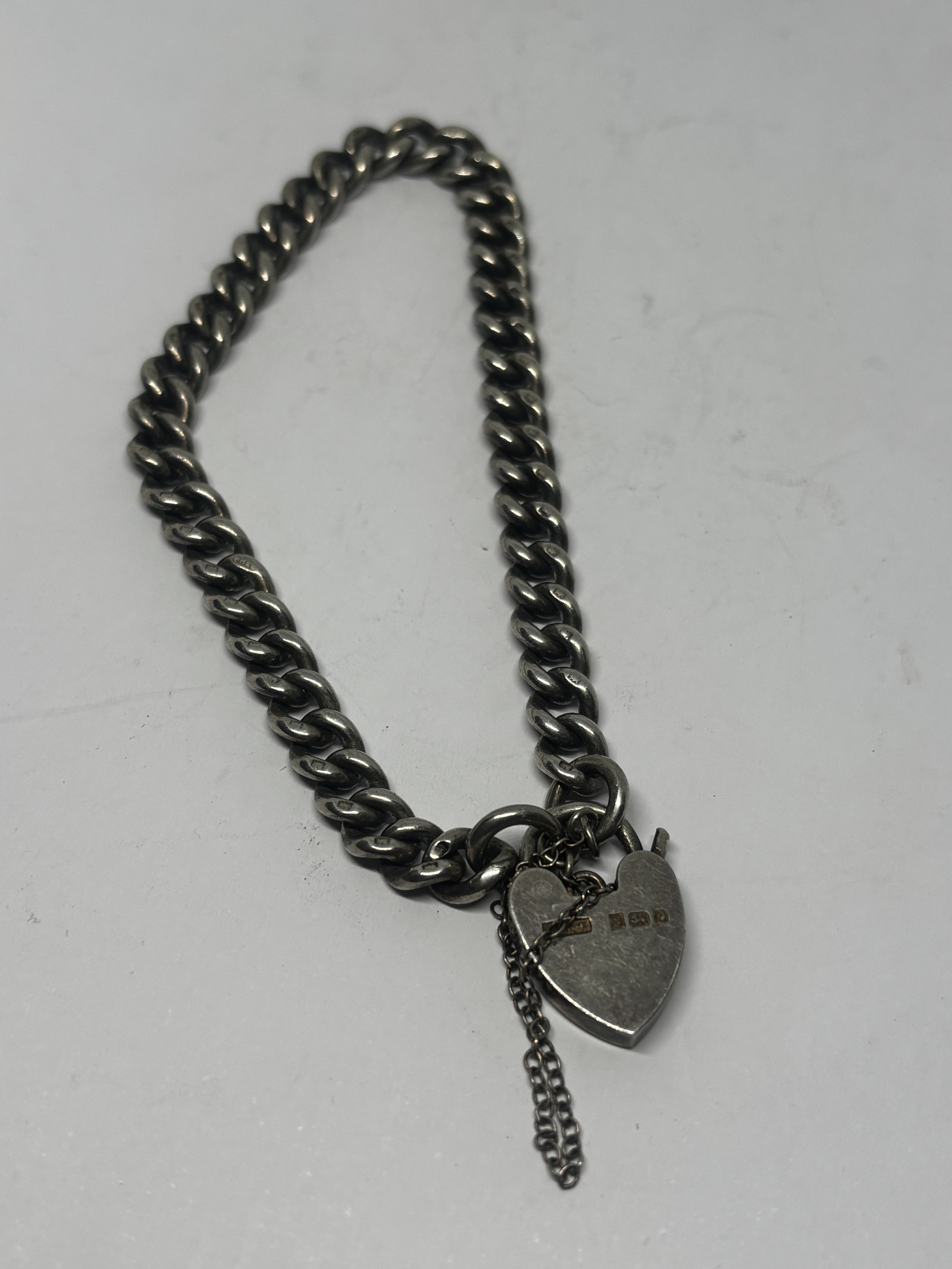 A HEAVY SILVER WRIST CHAIN WITH A HALLMARKED BIRMINGHAM SILVER HEART LOCK GROSS WEIGHT 23.2 GRAMS