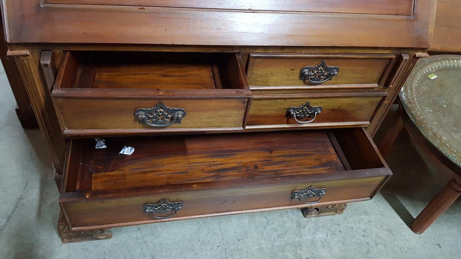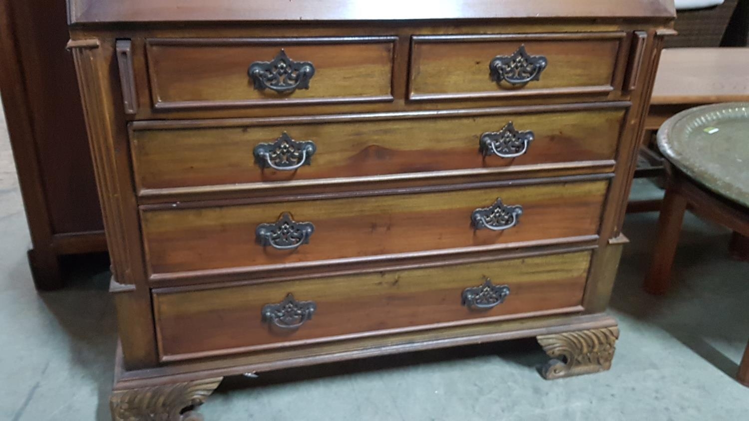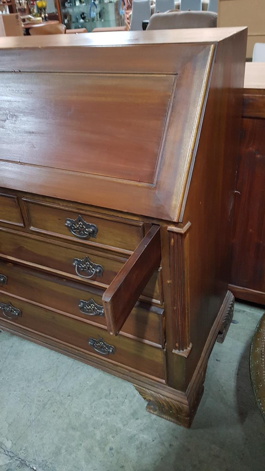 Vintage Wooden Bureau (Perhaps Edwardian Style Writing Bureau) with 5 - Fitted interiors Featuring Cubbies, Letter Racks, Drawers and a Central Cabinet with Secret Compartment (95 x 107 x 49cm)