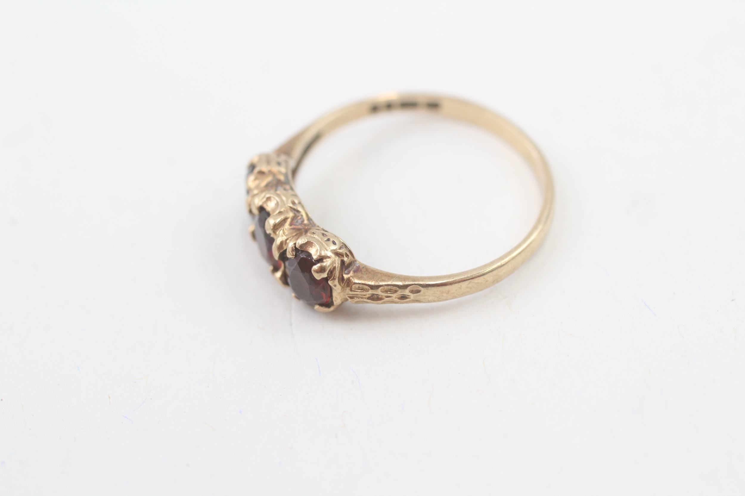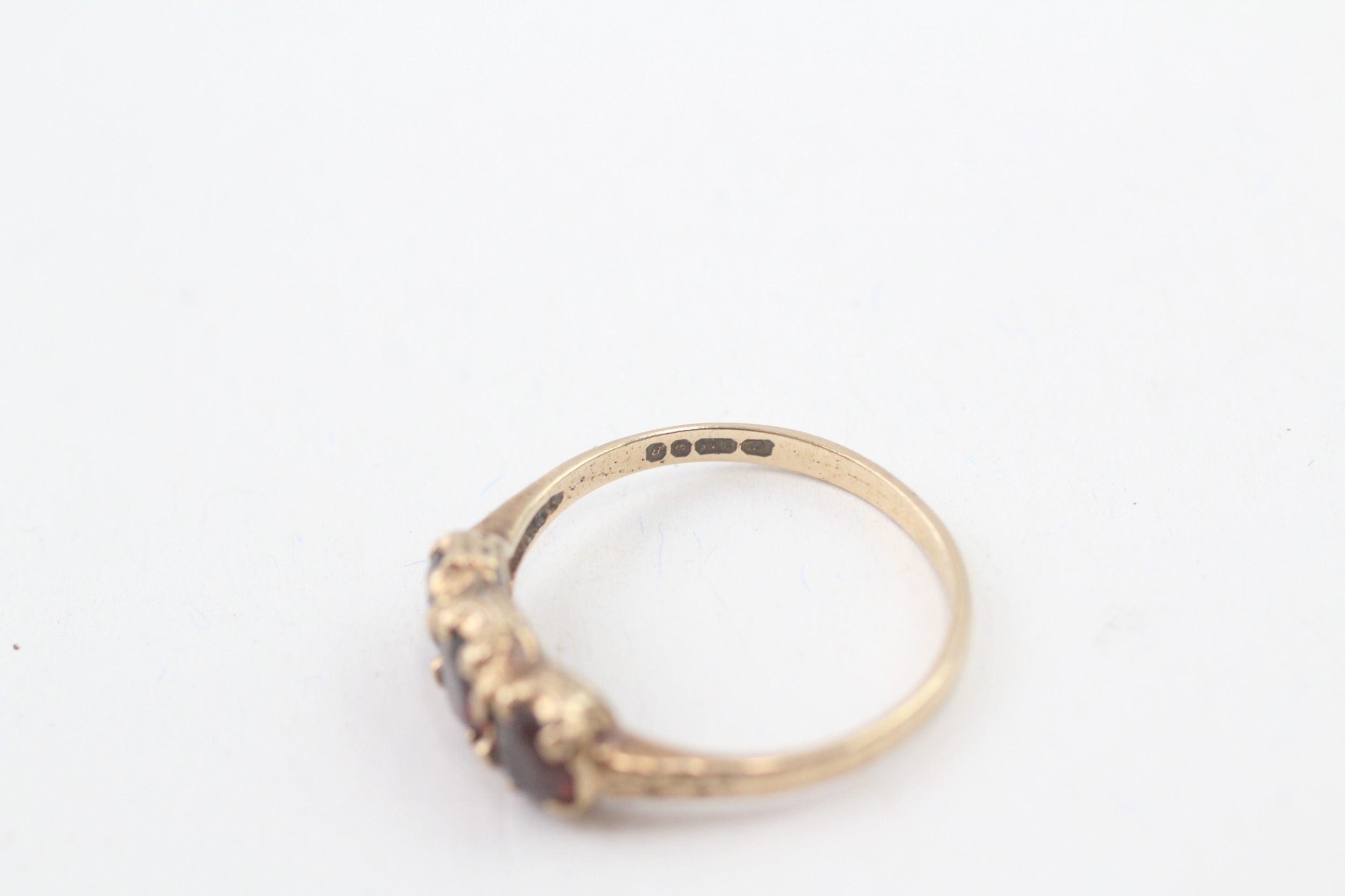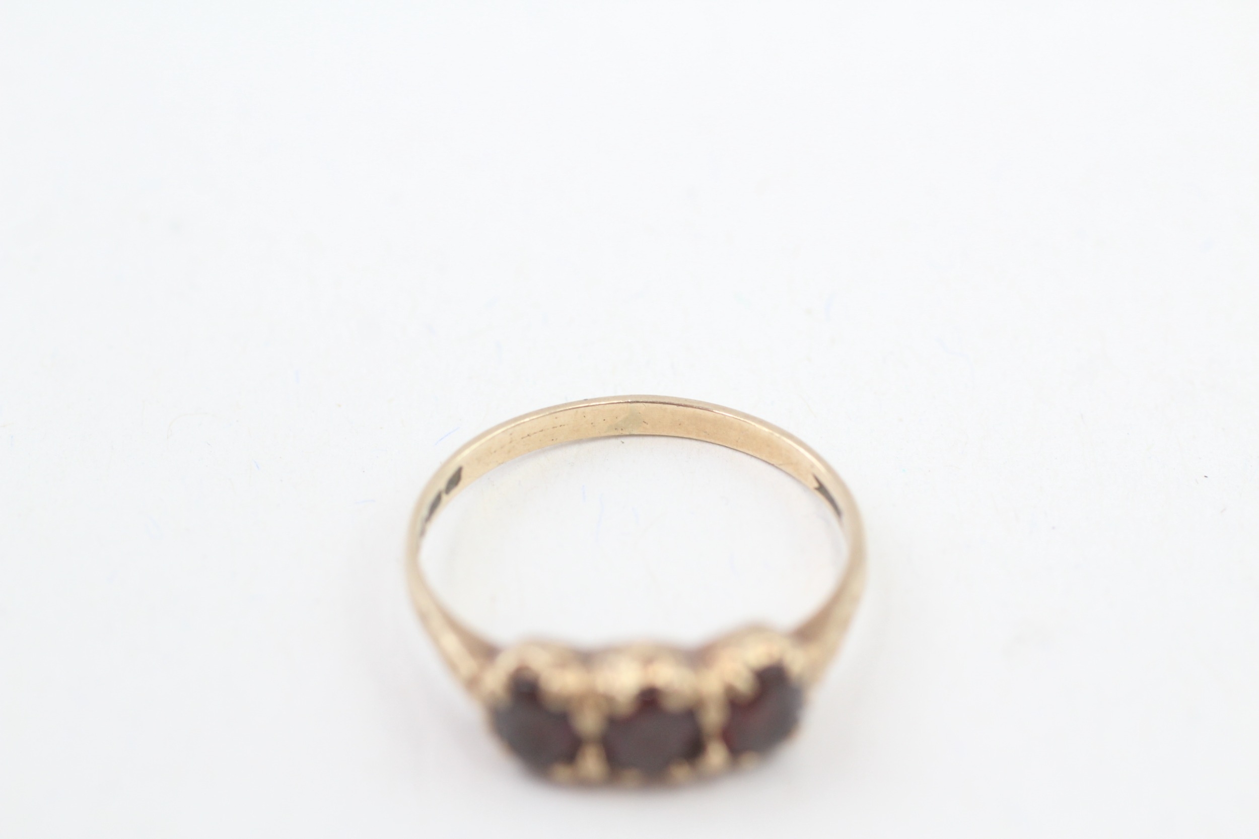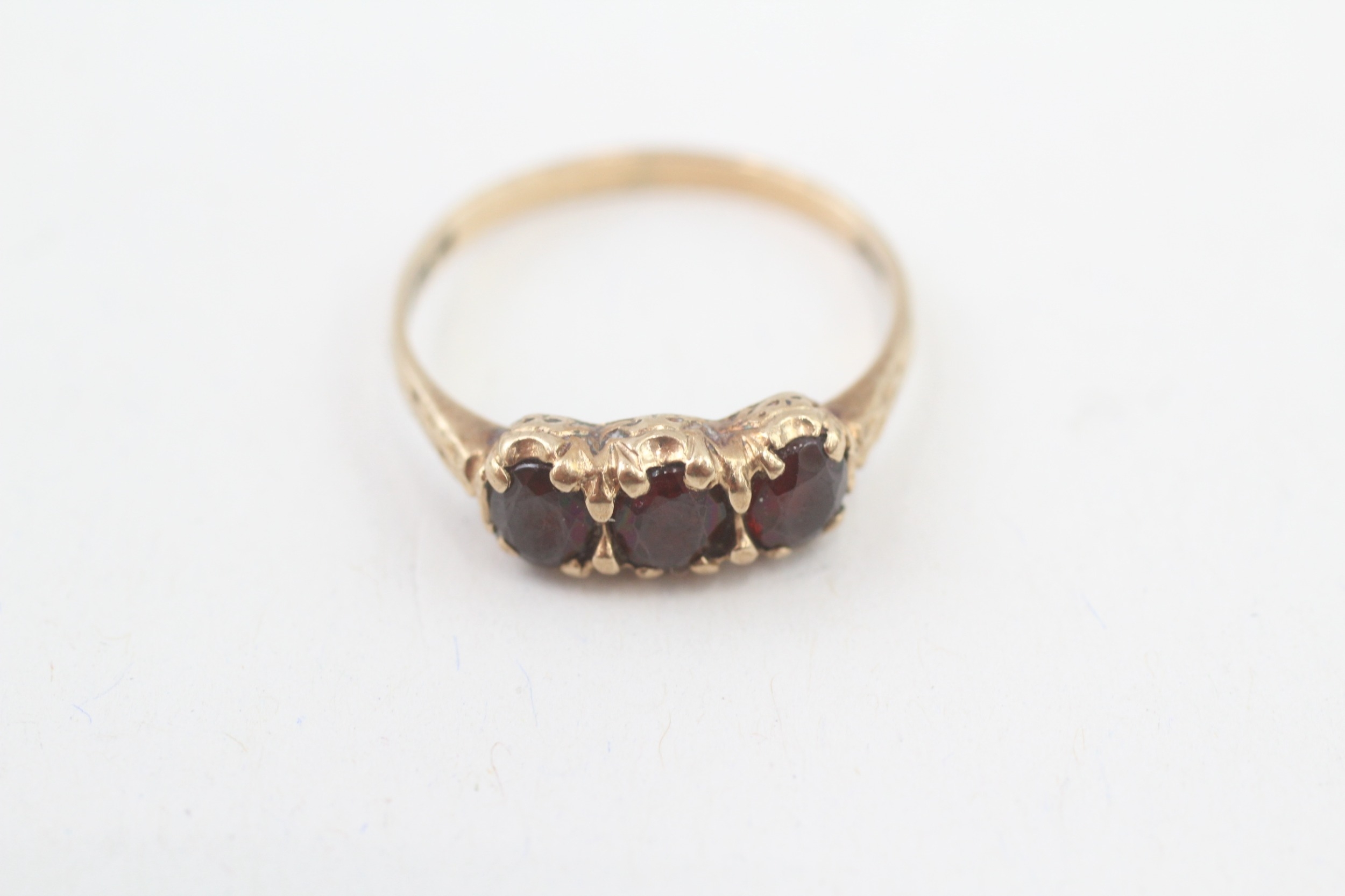 9ct gold vintage garnet three stone ring (2g) Size O1/2