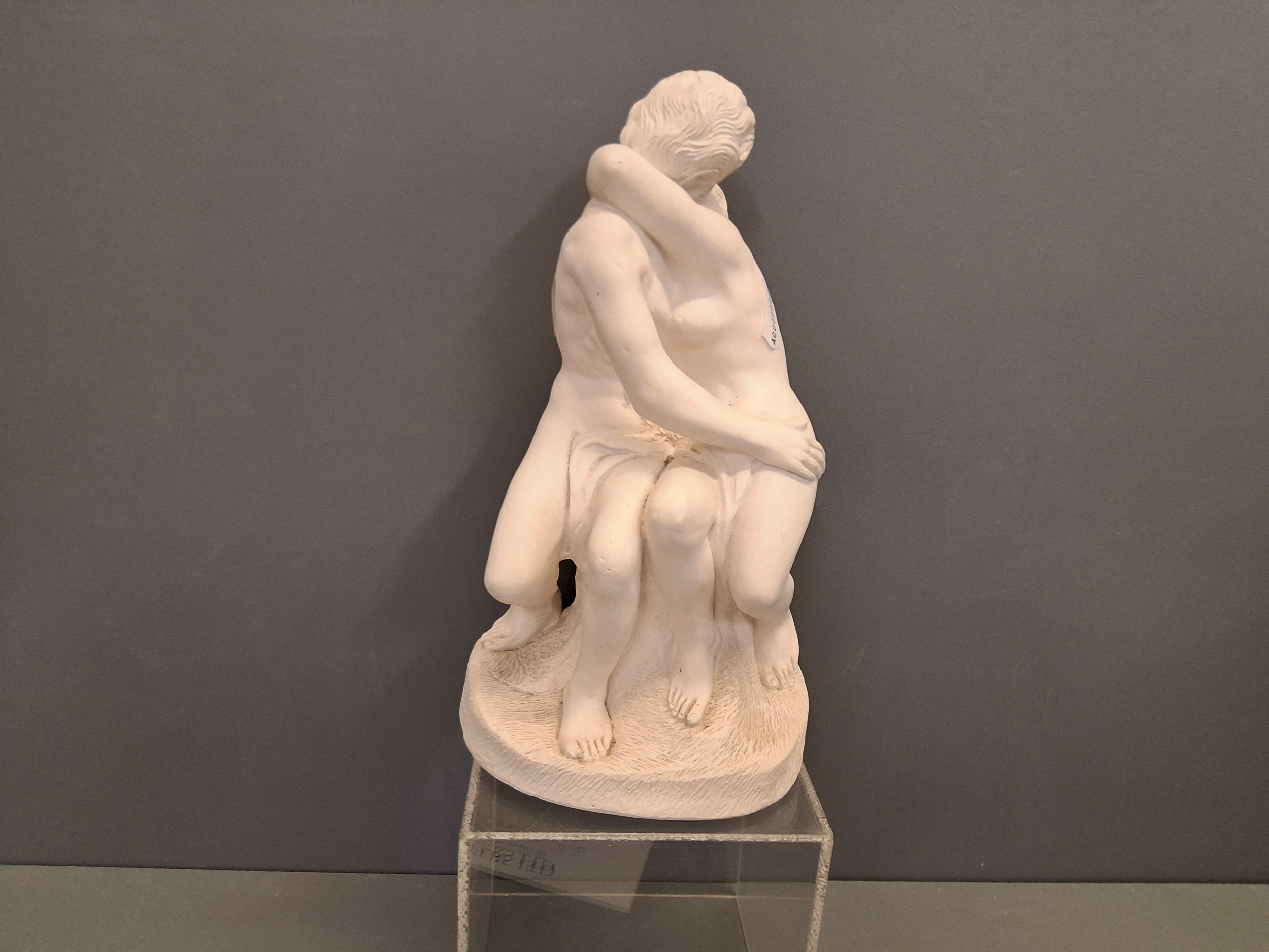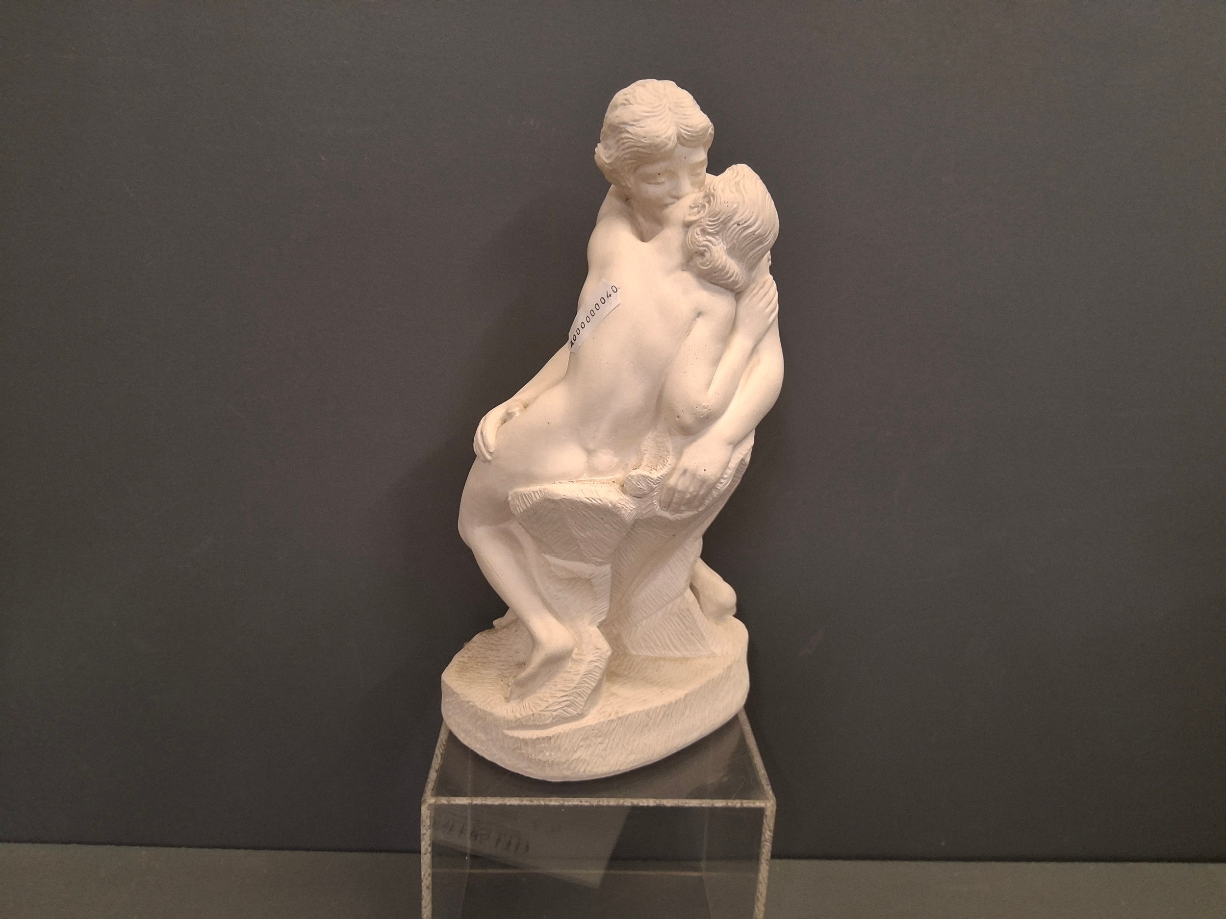 A contemporary plaster marble effect sculpture of Rodins kissHeight 22cm