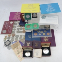 Large quantity of coins, Royal Mint sets including 2x 1997 Deluxe year sets, 4x Five pound Millennium sets, 2x Queen Mother centenary Crown, 2x Victorian crowns, 2x 1995 uncirculated sets, 2x 2003 Cornation crown sets, 2x Diana memorial Coin sets 2x Jubilee Crown sets, Three £1 Coin on England, 2x 70th Birthday crowns, 3x 1997 Commemorative crowns, 2x HRH 5oth Birthday Crown sets, 2x 1996 Football coin sets, 2x 1996 Northern Ireland sets, 2x 1999 World Rugby £2 coin sets. 1997 Standing on the Shoulders of Giants £2 sets, quantity of loose coinage and notes, 2x 1992 / 1993 50p coin sets, 2x NHS 50p sets, 50th Anniversary D-Day landings 50p sets Framed 10 shilling note. £20 Silver proof 2015 coin.