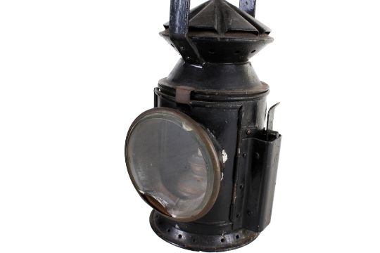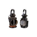 Two vintage oil lanterns. Including a Western British Railway example, both painted black with handles to the top, Max. H31cm.
