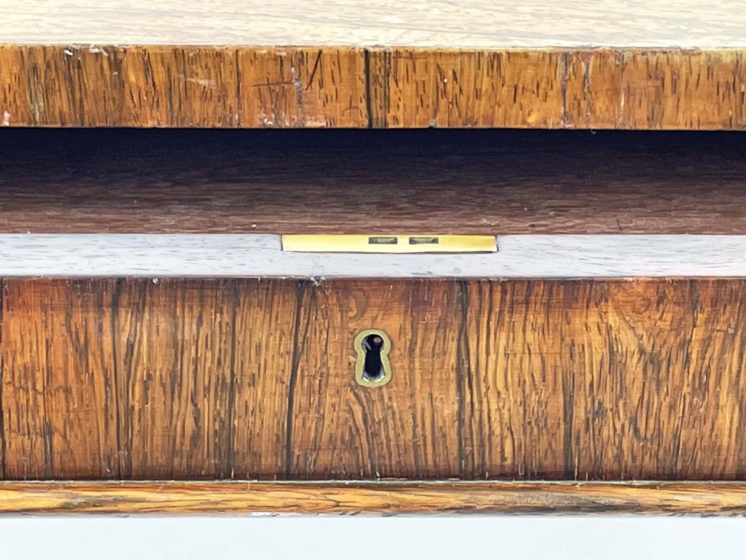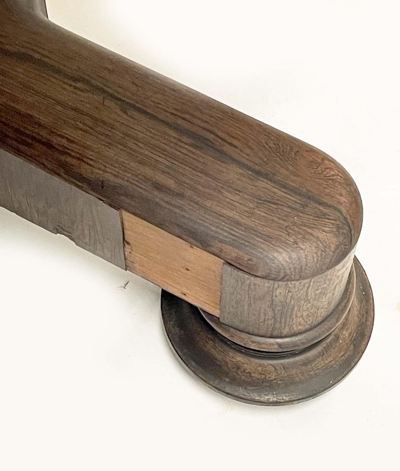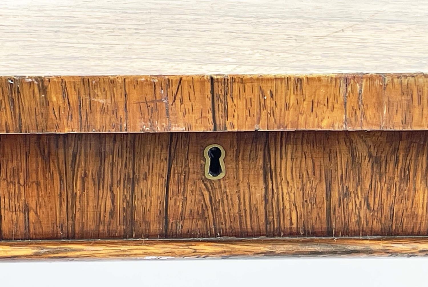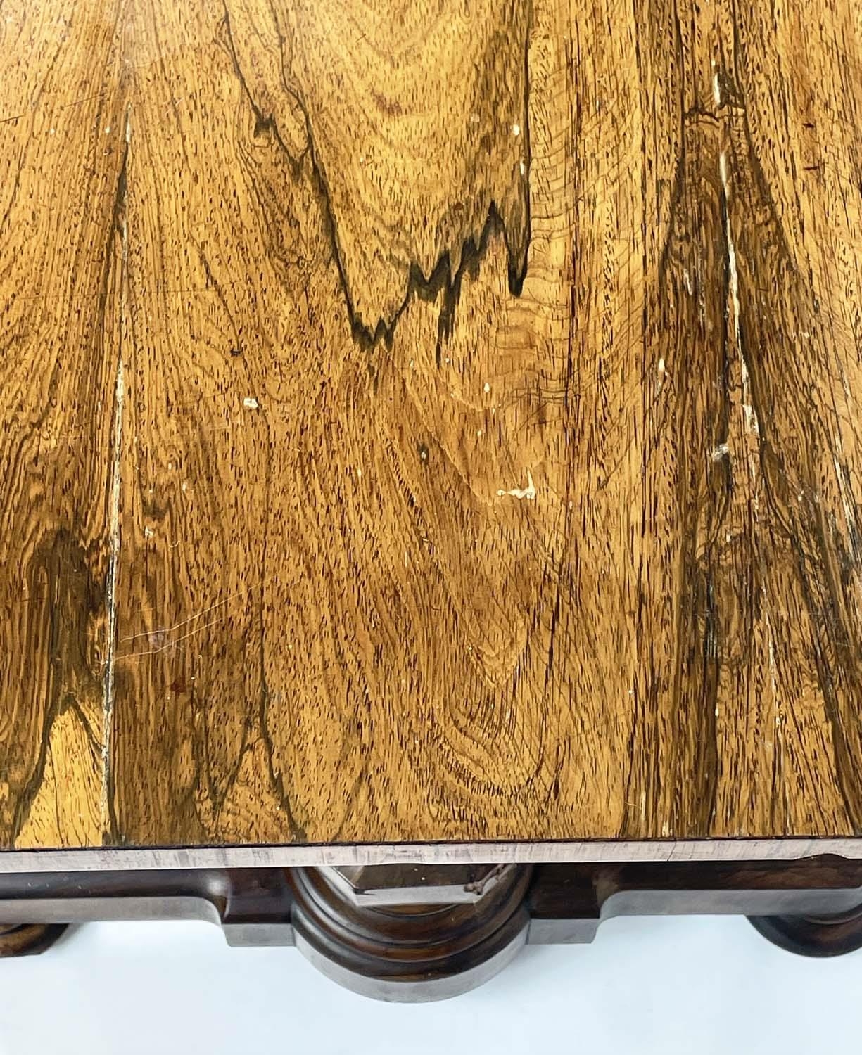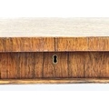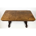 LIBRARY TABLE, late Regency rosewood, circa 1830, with central drawer on octagonal end supports with blind castors on bun feet, 140cm L x 68cm W x 74cm H.