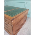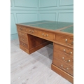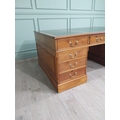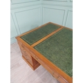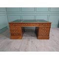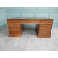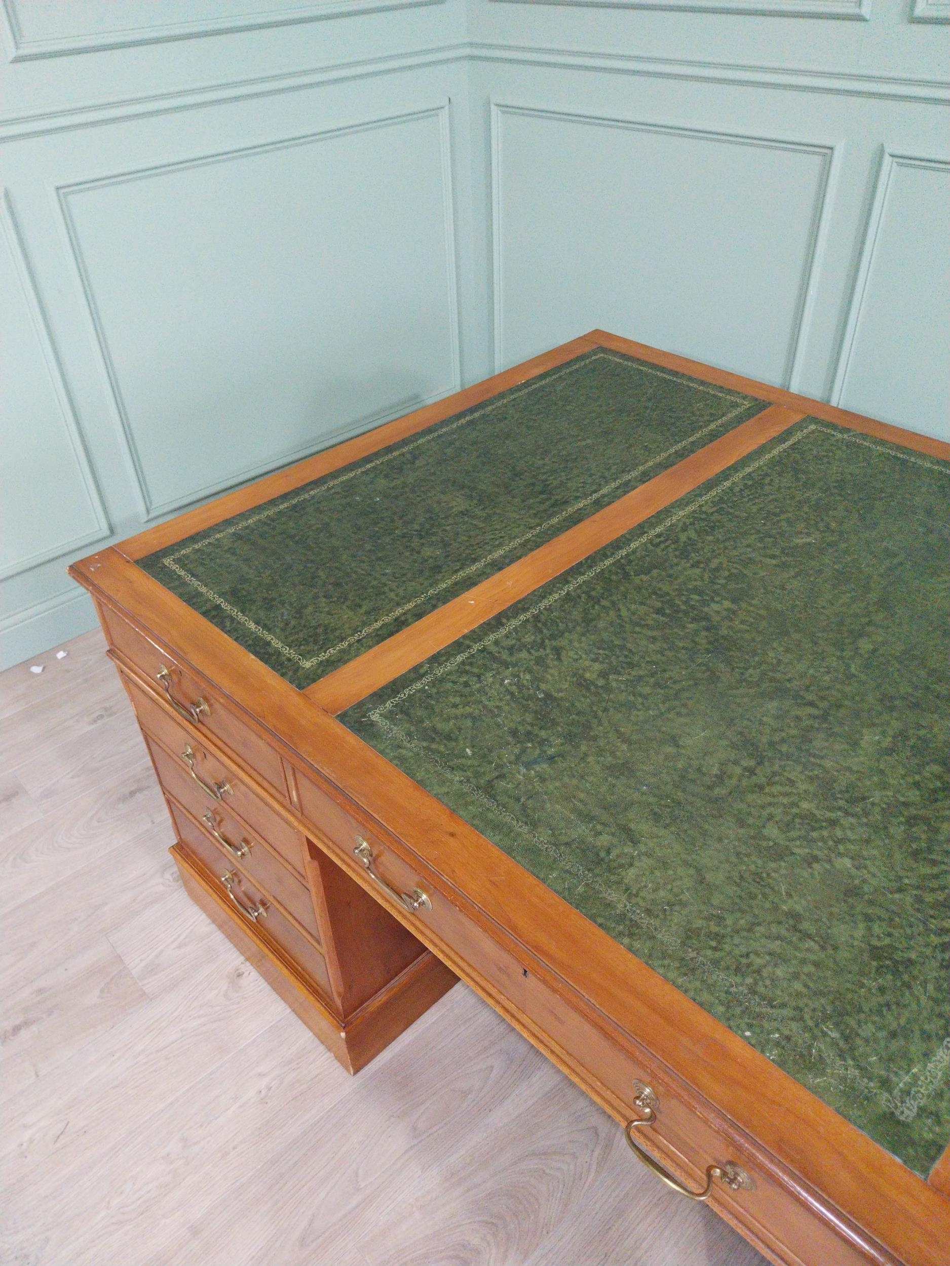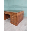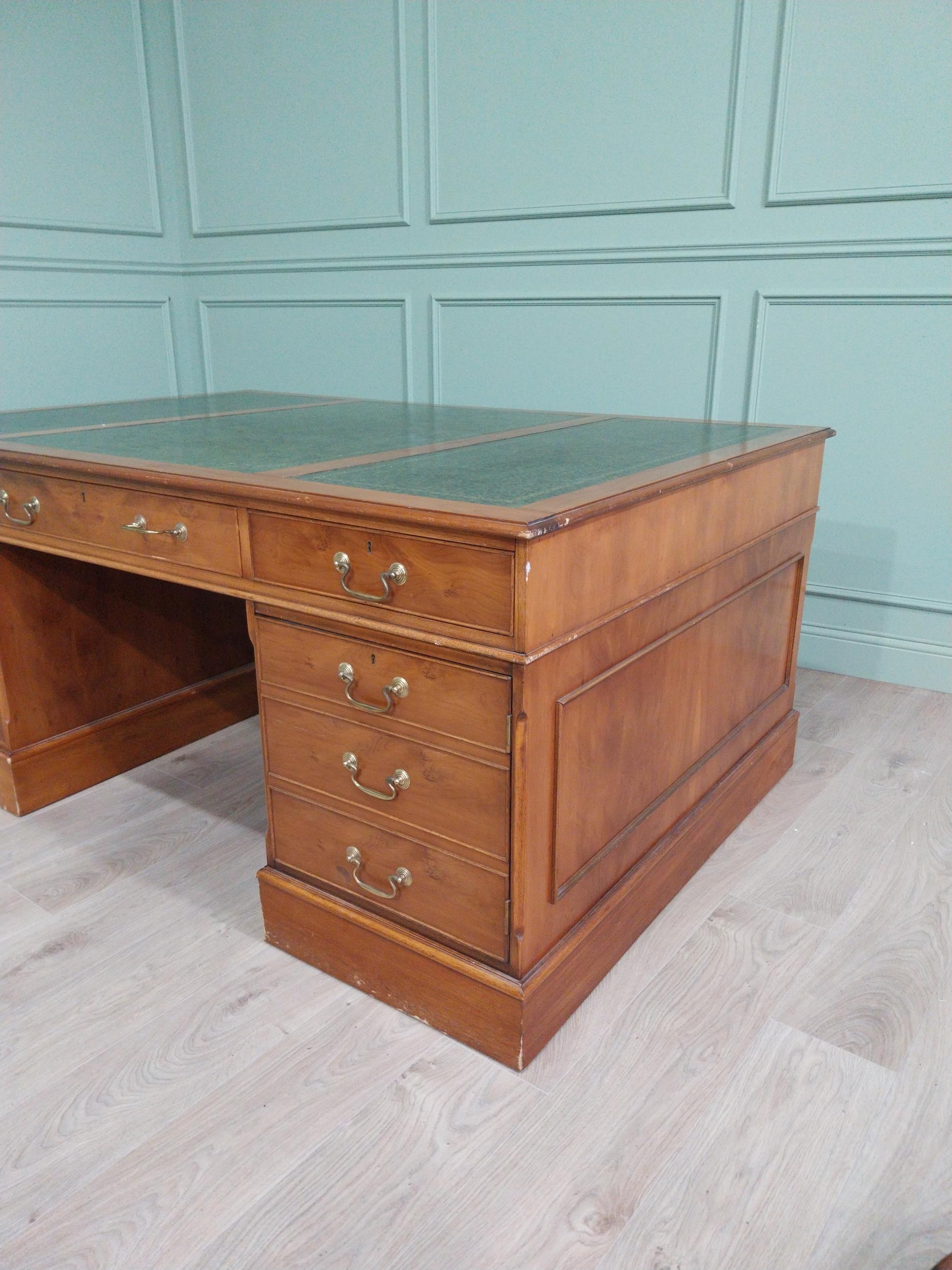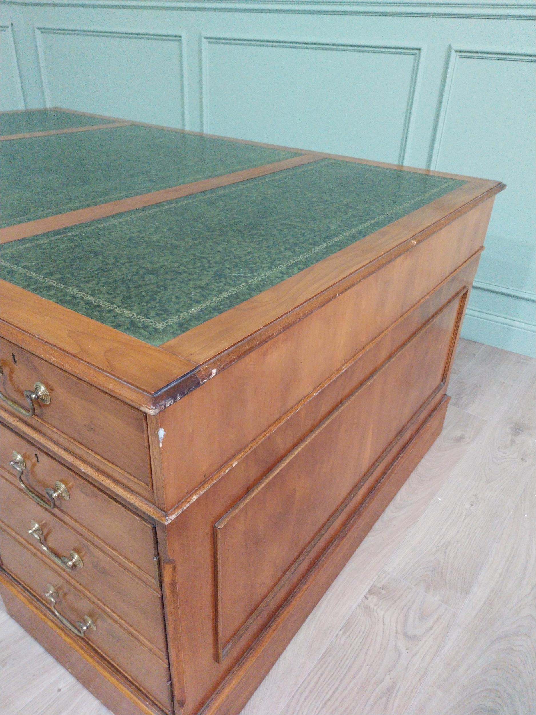 Good quality 19th C. yew wood Partner's desk with inset tooled leather top above a short centre drawer flanked by eight short drawers raised on plinth bases . {80 cm H x 183 cm W x 122 cm D}.