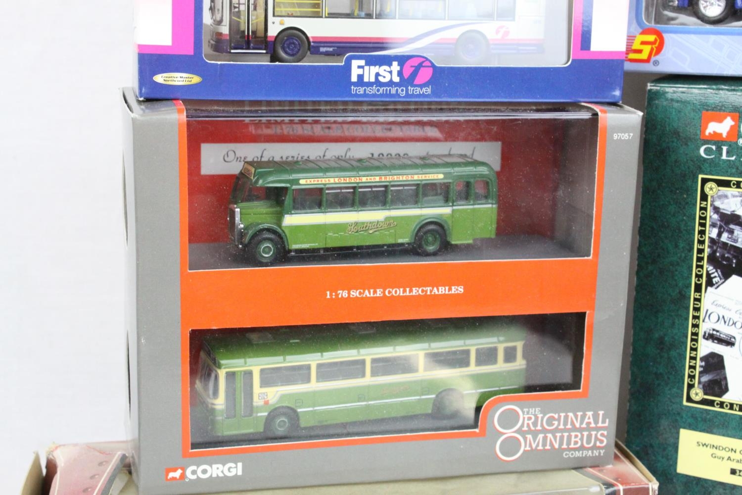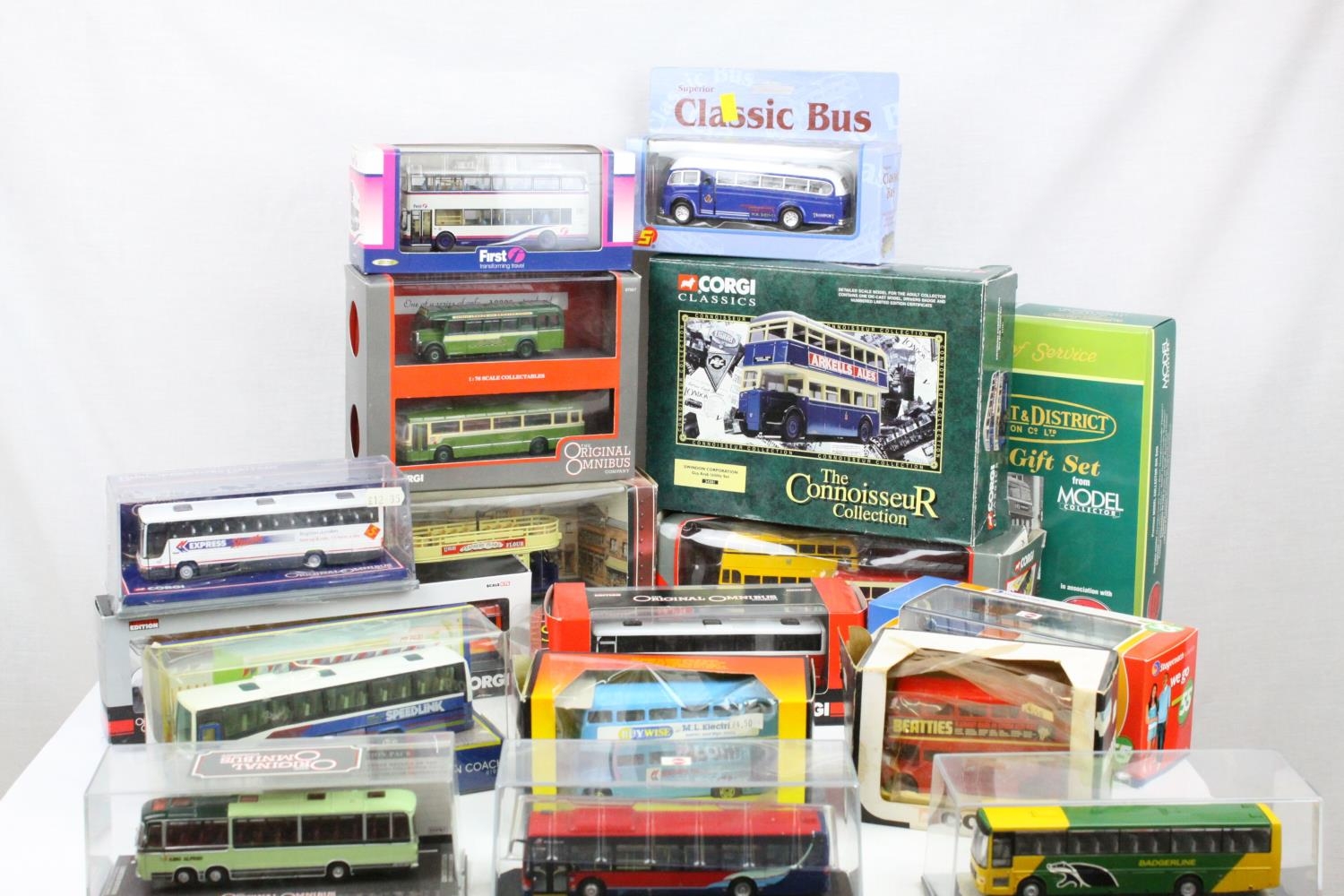 17 Boxed / cased diecast model buses and coaches to include Corgi, EFE, Creative Masters etc, features multi model sets, condition of diescast vg, boxes gd