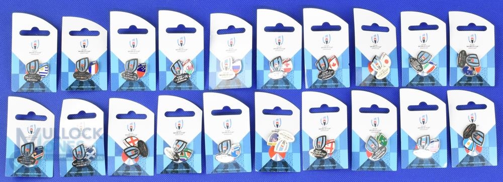 2019 RWC Official Lapel Badge Collection (20): 20-badge, new with tags, mint collection of official national badges for the RWC in Japan 2019