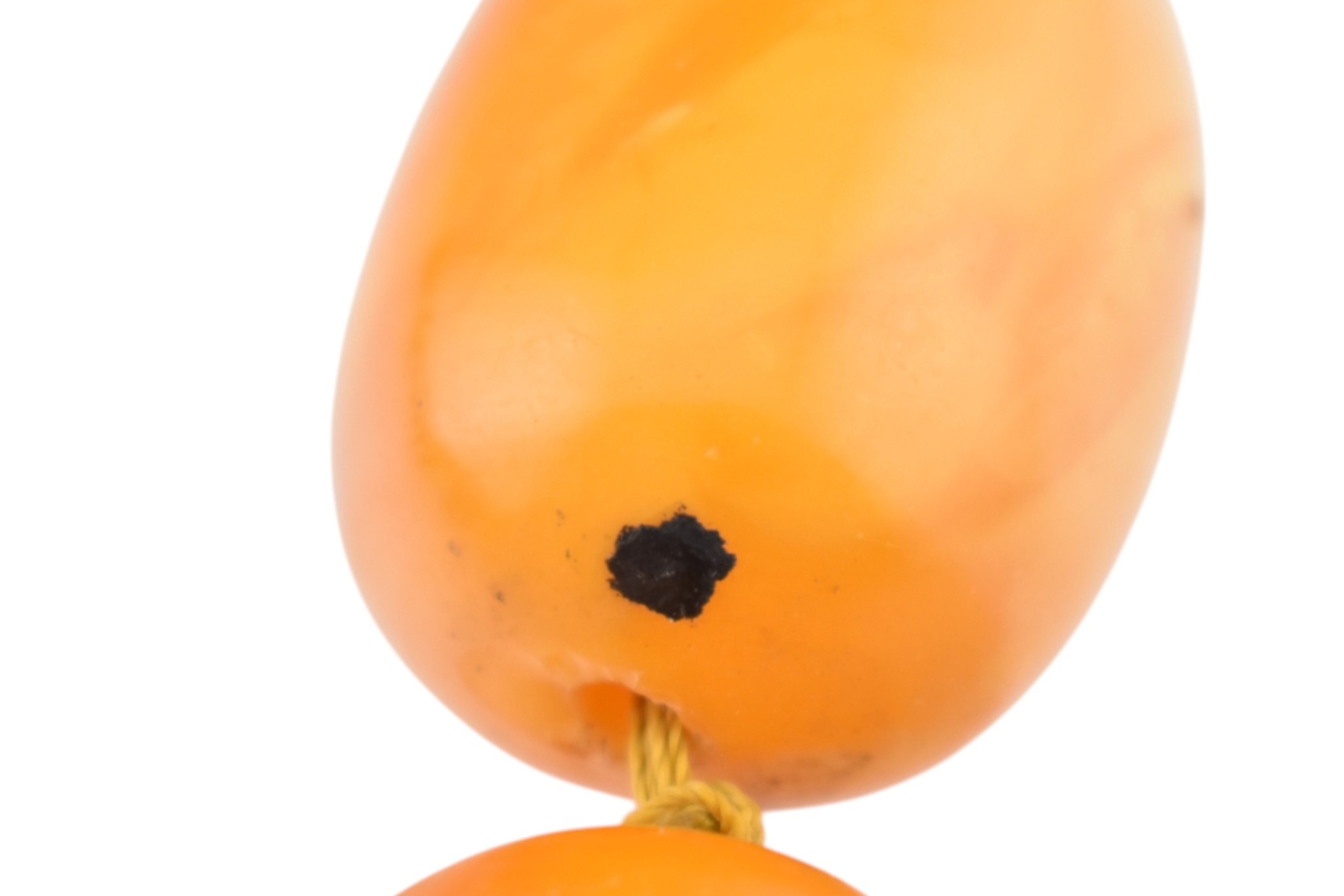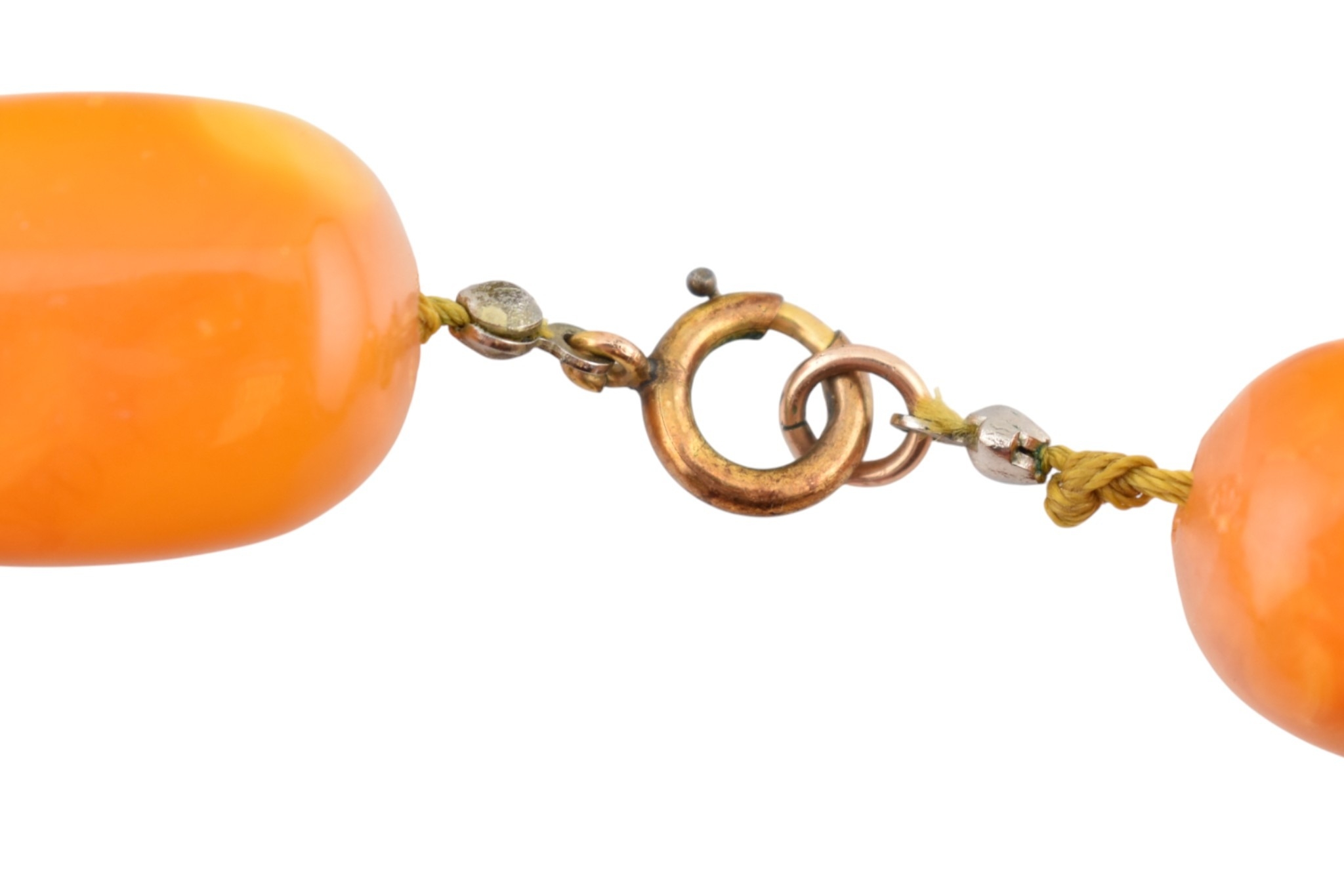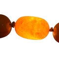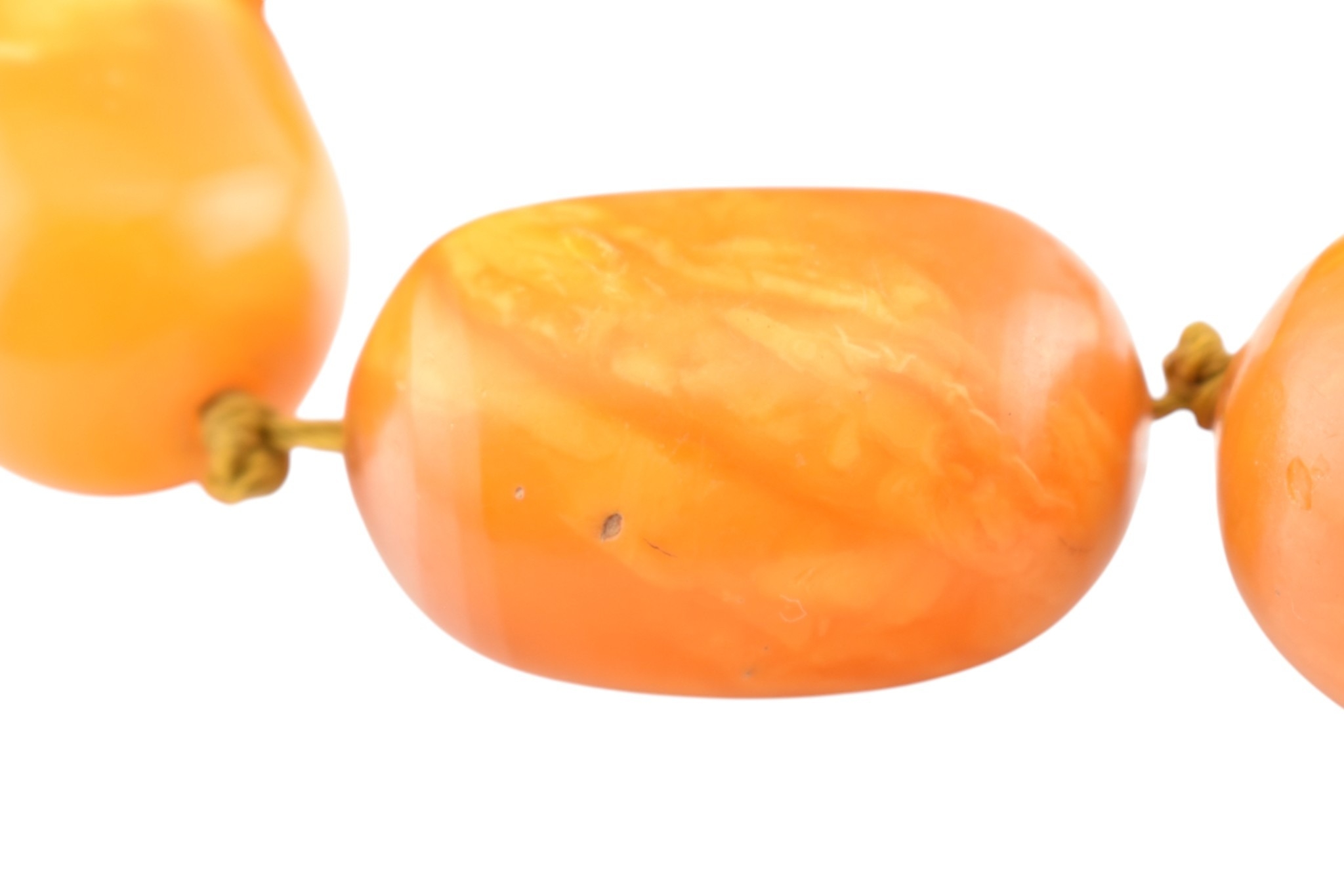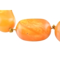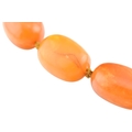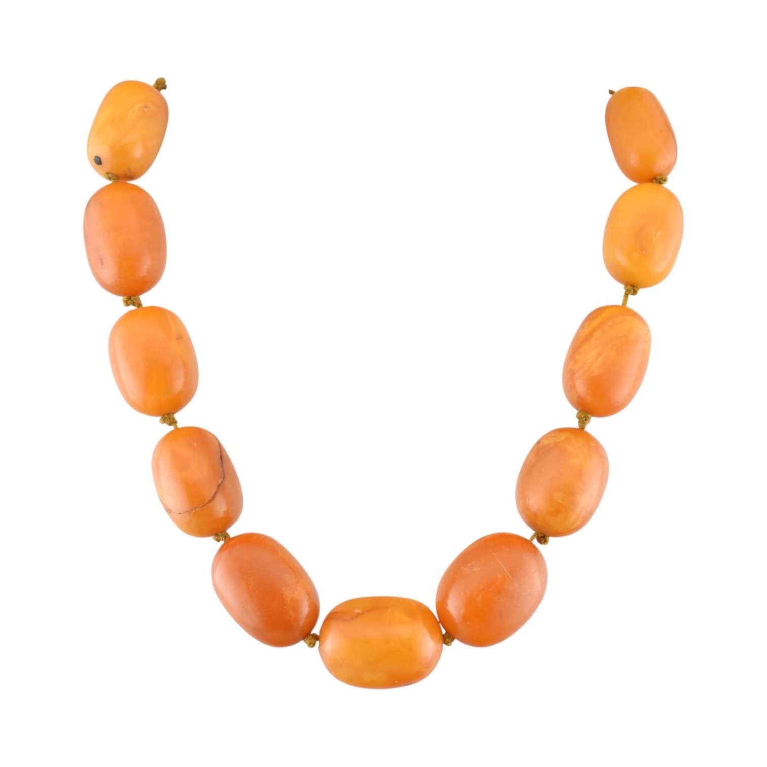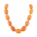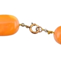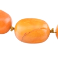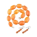 A vintage egg yolk amber bead necklace and earrings. The necklace with large knotted amber beads. The earrings made from another amber bead necklace.