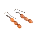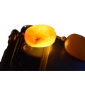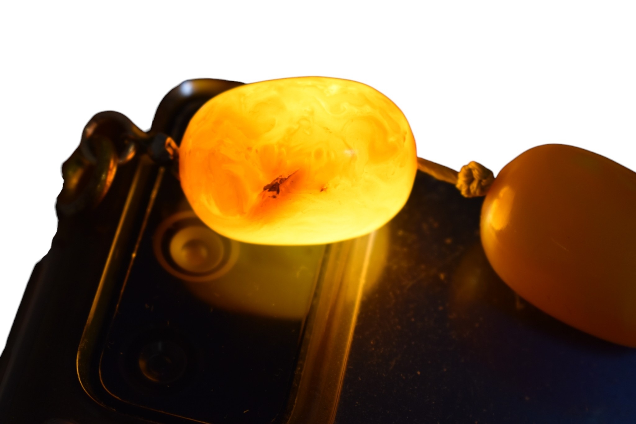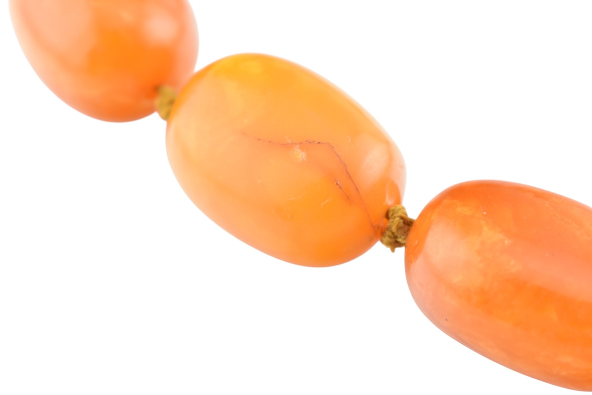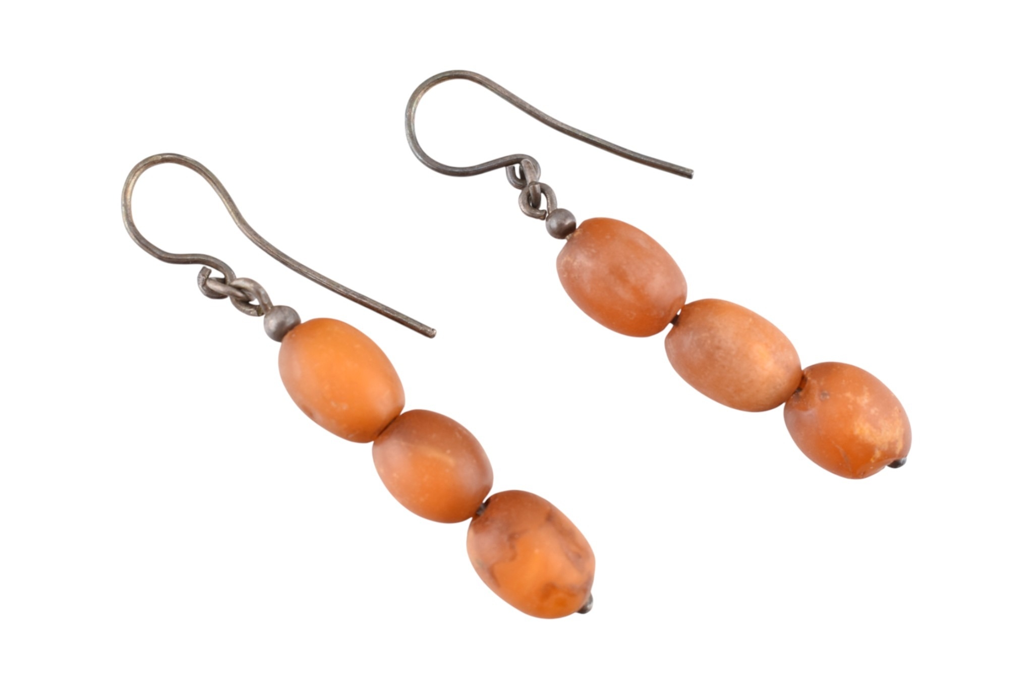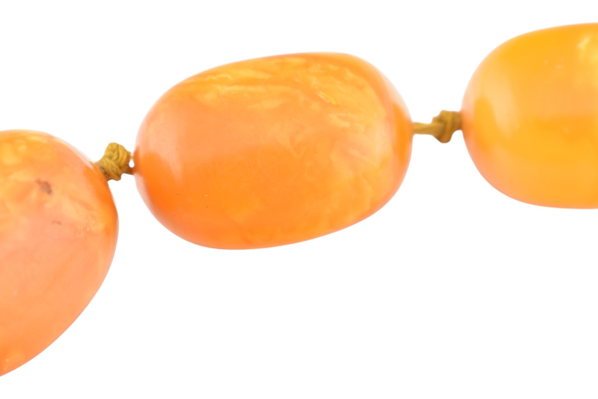 A vintage egg yolk amber bead necklace and earrings. The necklace with large knotted amber beads. The earrings made from another amber bead necklace.