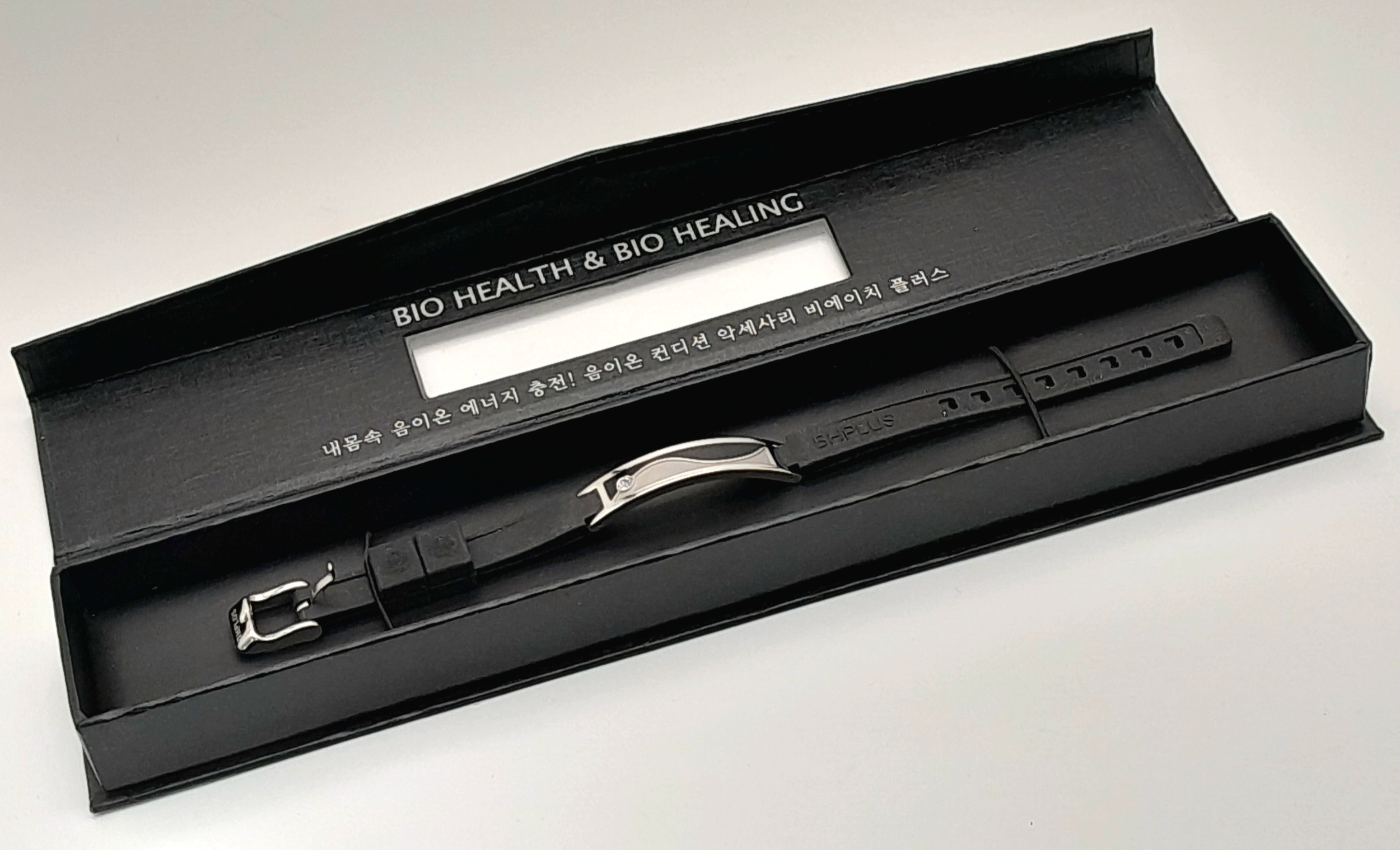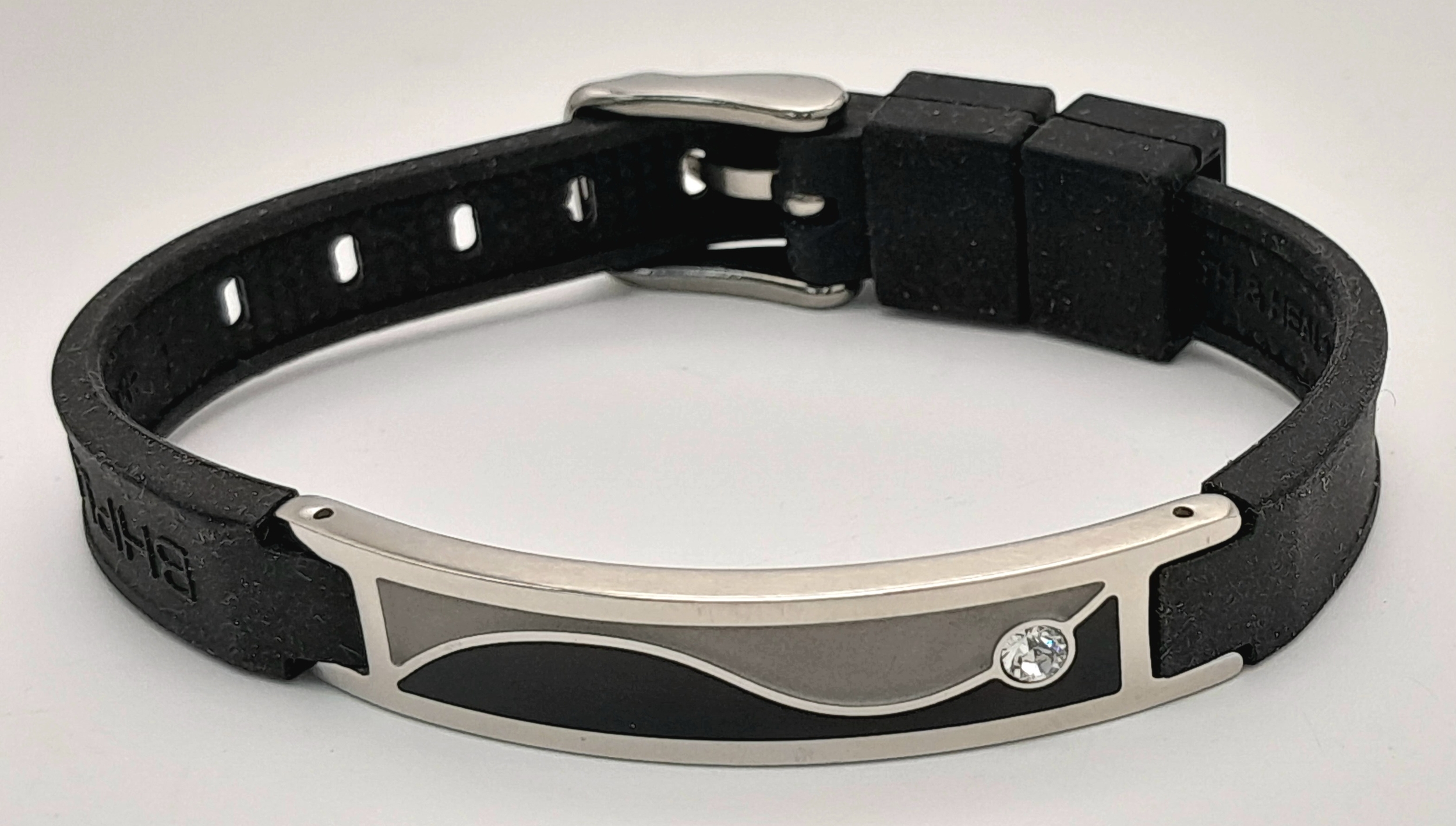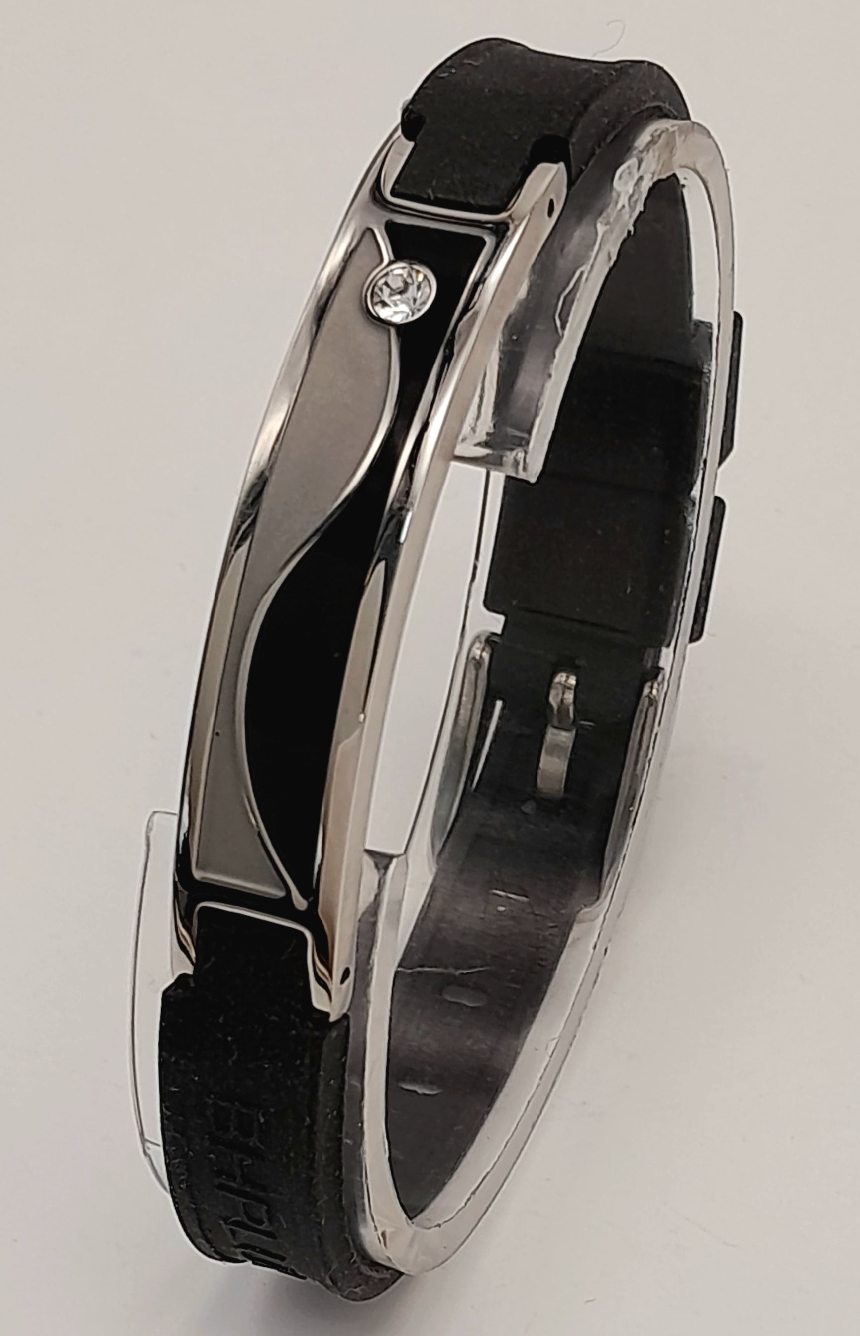 A fashion stone set bracelet with rubber strap and watch style buckle. Total length 22.5cm. Unworn condition. Comes with an original box.
