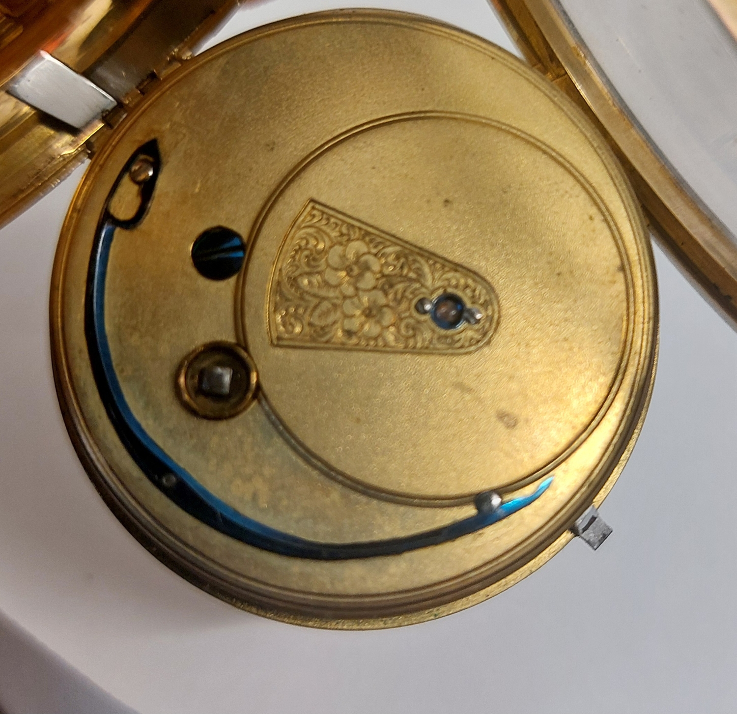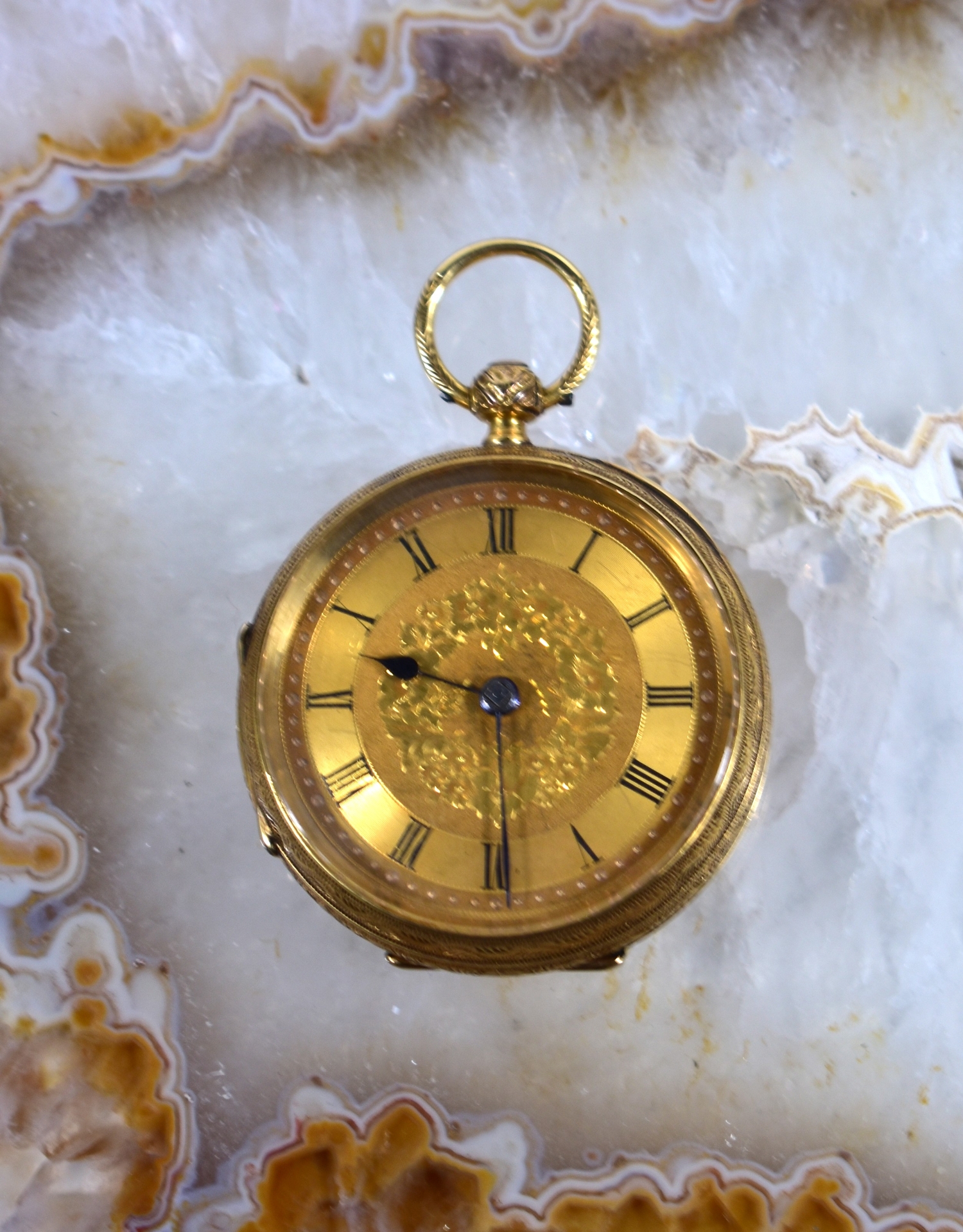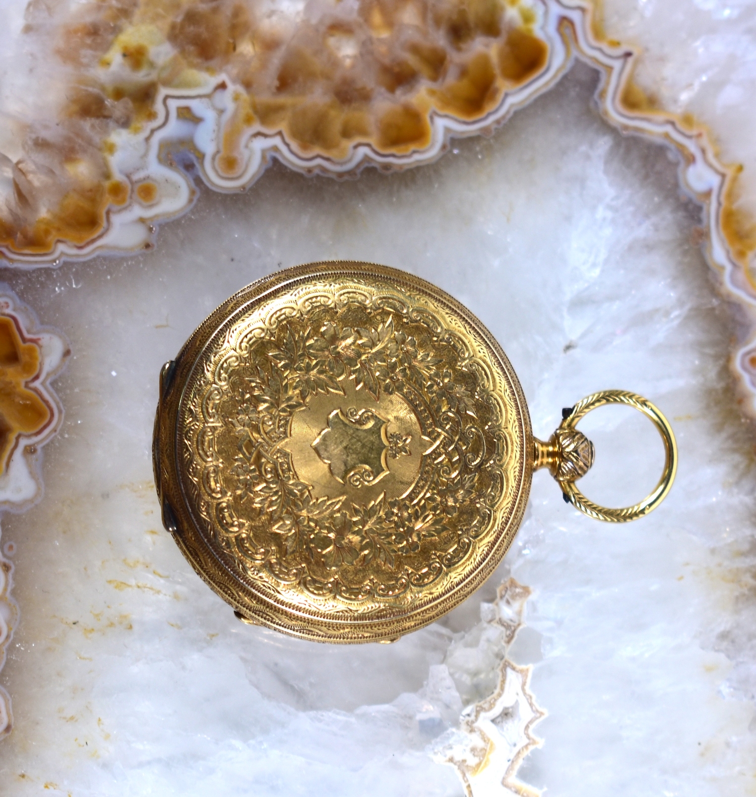 A Victorian 18ct gold ladies pocket watch, with an ornate gold dial with foliate engravings and Roman numerals, hallmarked for Chester 1896, 57.5g.