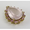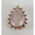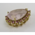 A rose quartz and gem set pear shaped pendant in a 9ct yellow gold setting, 22mm, CCM mark, 4.11g