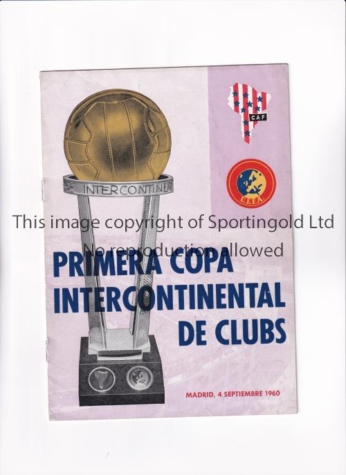 REAL MADRID V PENAROL 1960 / FIRST WORLD CLUB CHAMPIONSHIP Programme for the second Leg in Madrid 4/9/1960. Good