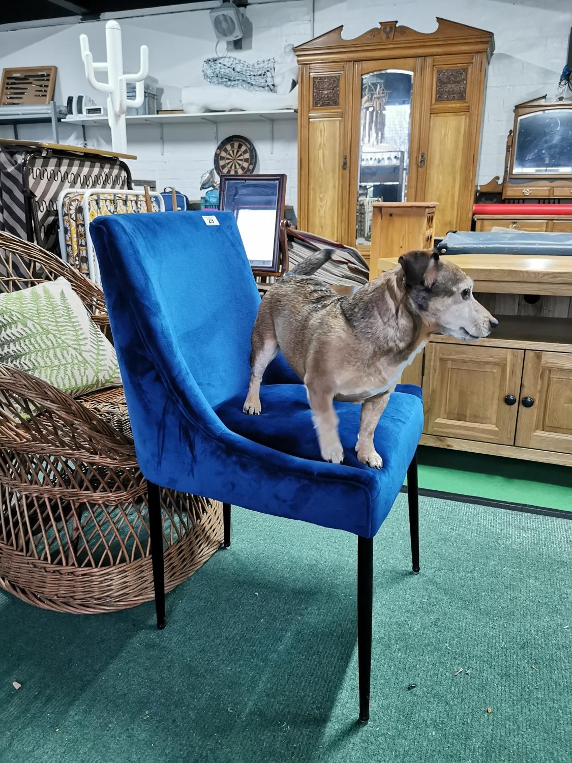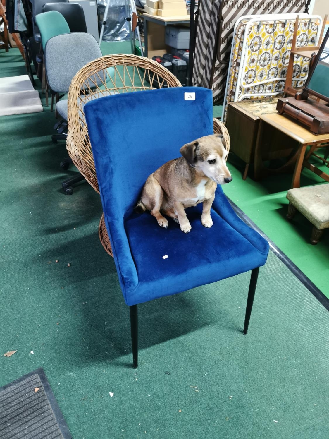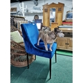 Blue Velor Upholstered Chair On Black Metal Stick Legs