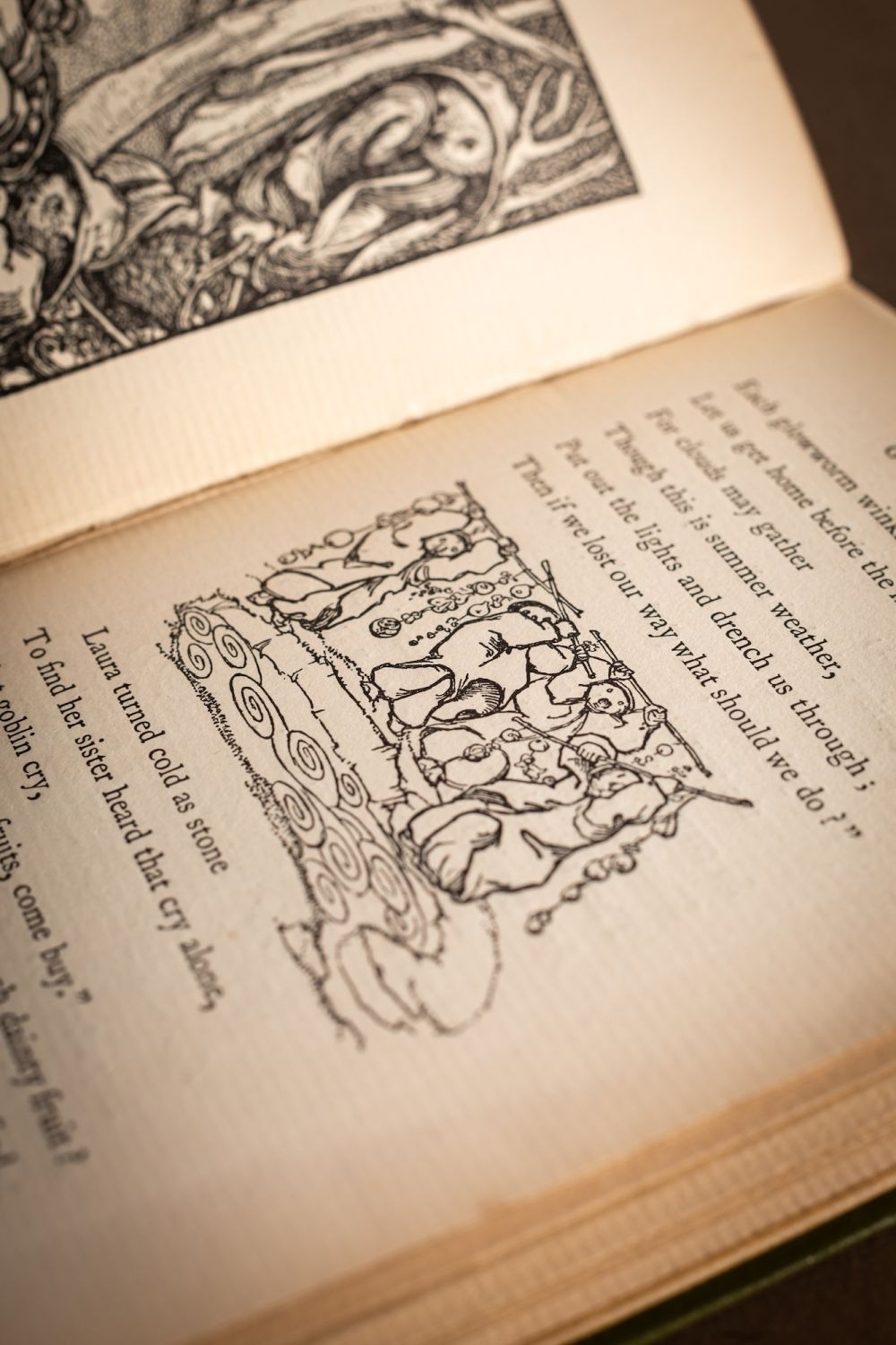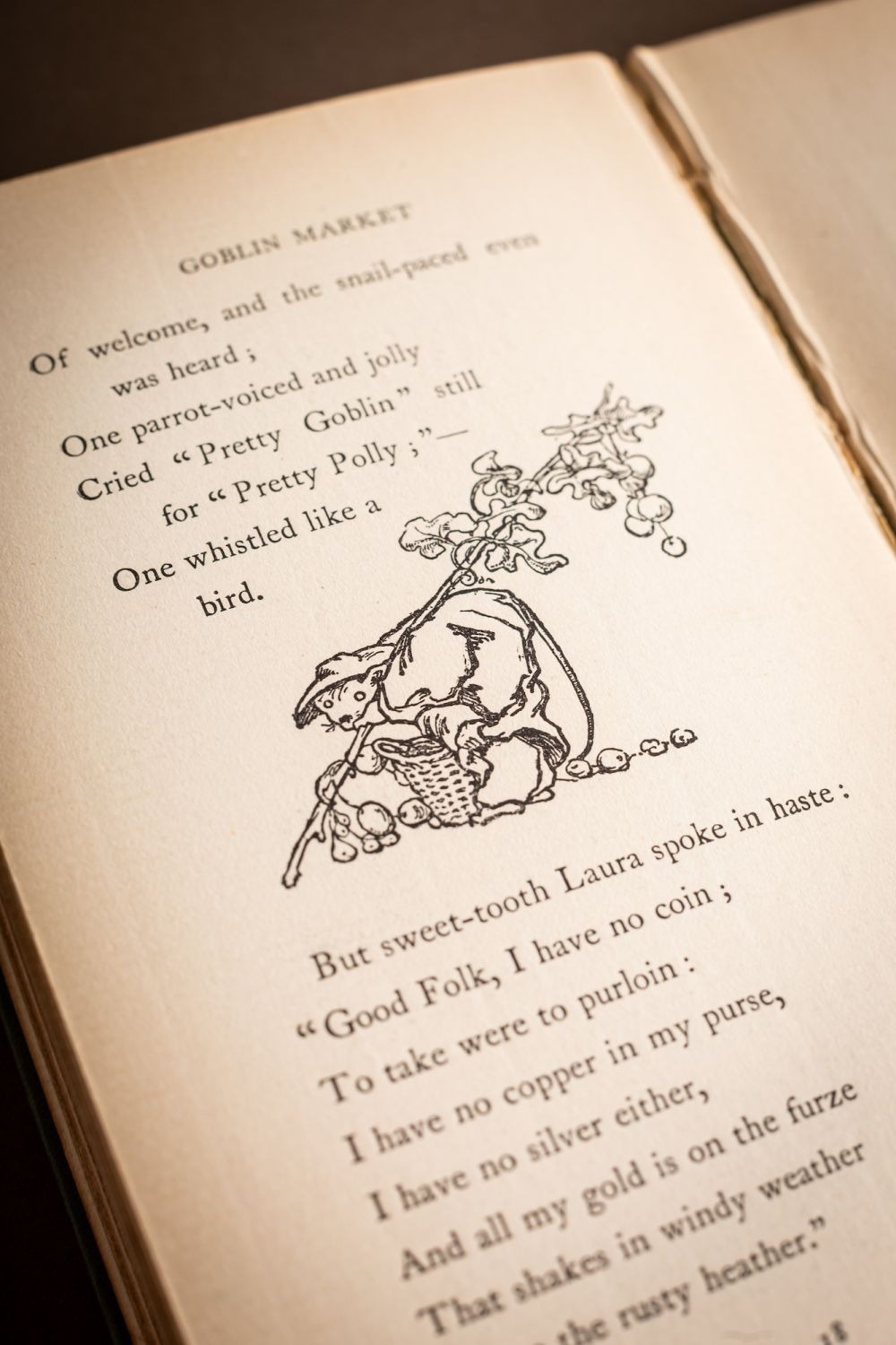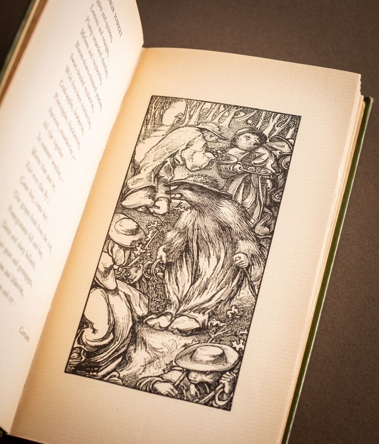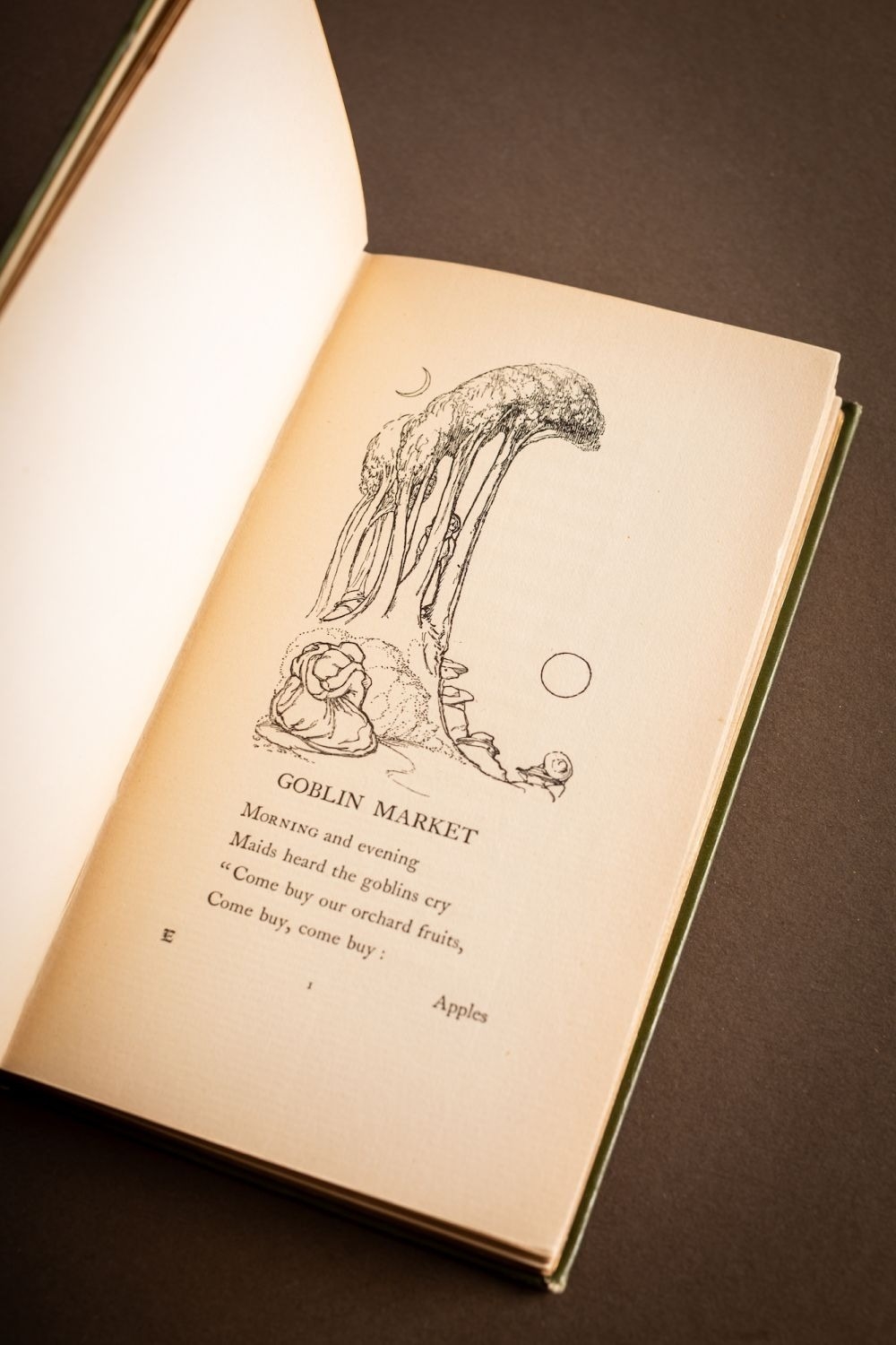ROSSETTI, Christina. Goblin Market, illustrated by Laurence Housman (1st thus), London: Macmillan & Co., 1893, half-title, wood-engr. title, 12 plates and num. illustrations, contemp. ink gift inscription to ffep, some browning, orig. decorative green cloth gilt, corners rubbed, a.e.g., 12mo.