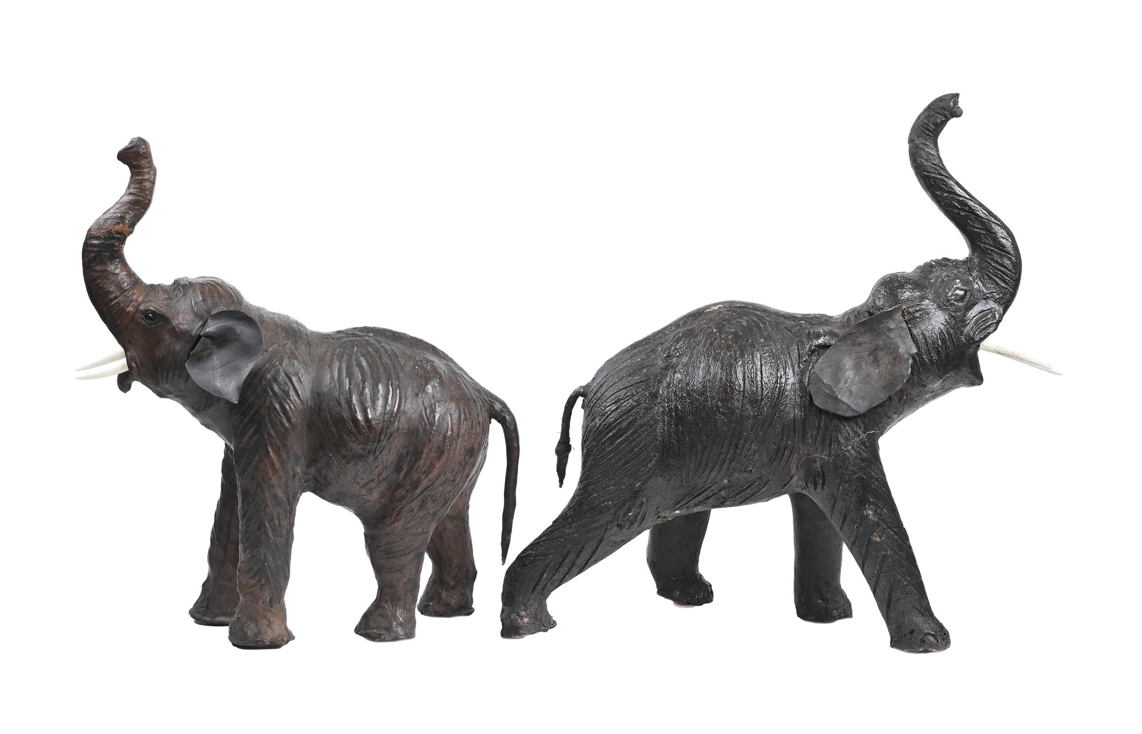 PLEASE NOTE: ALL LOTS ARE LOCATED AT SACKVILLE WEST STORAGE IN ANDOVER (SP10 3SA) AND ARE NOT AVAILABLE TO VIEWWith wear, marks, knocks and scratches commensurate with age and useSome splitting, cracking, and rubbing to leather and some lossesTear to one ear, please see additional imagesSeparation to the tip of the trunk of the larger elephantADDITIONAL IMAGES: Please 'Ask a Question' to request additional images for this lot.
