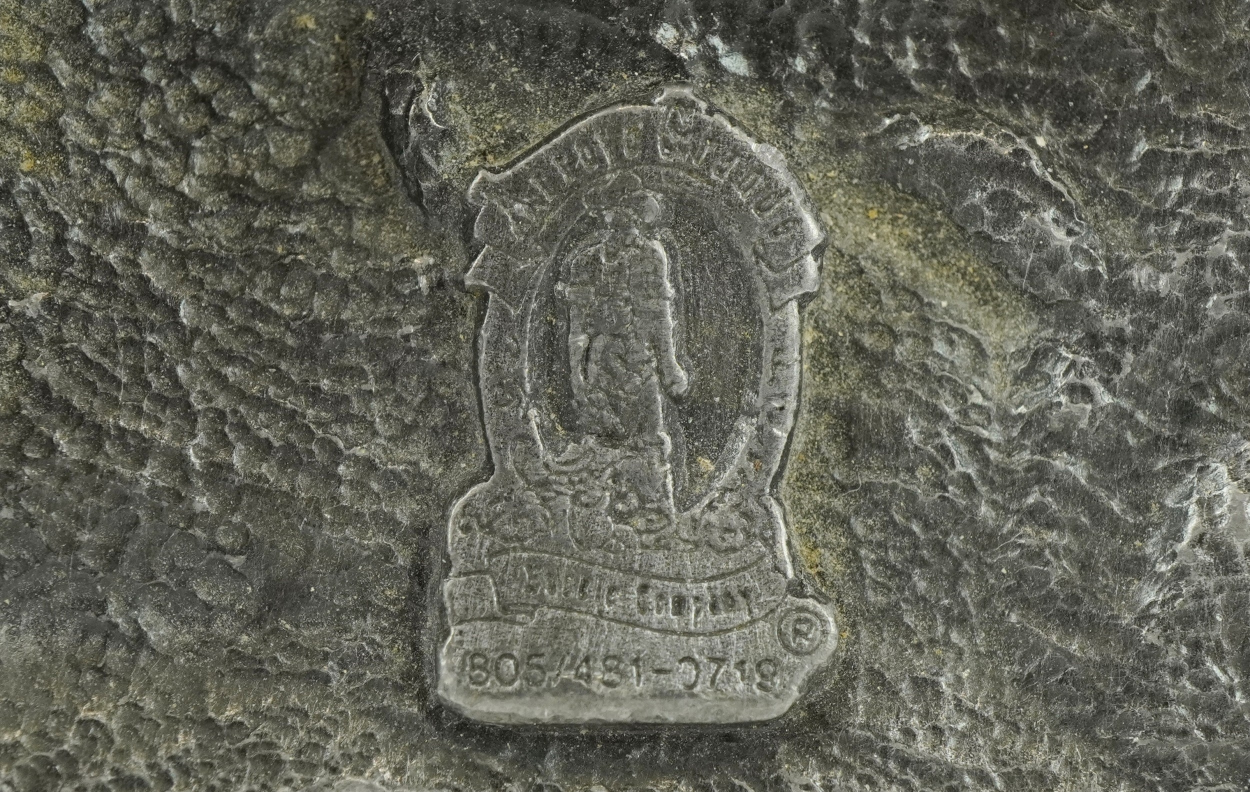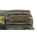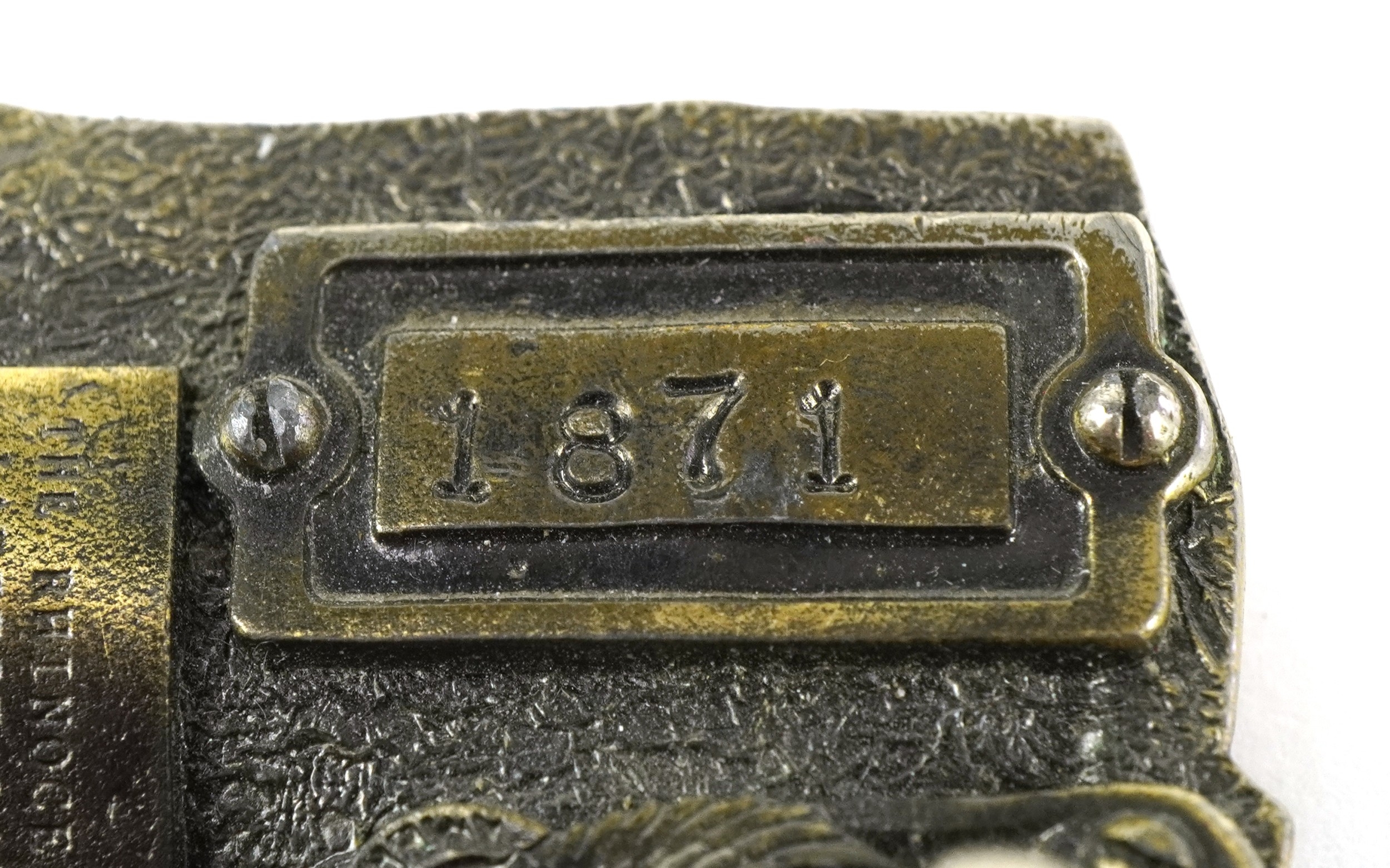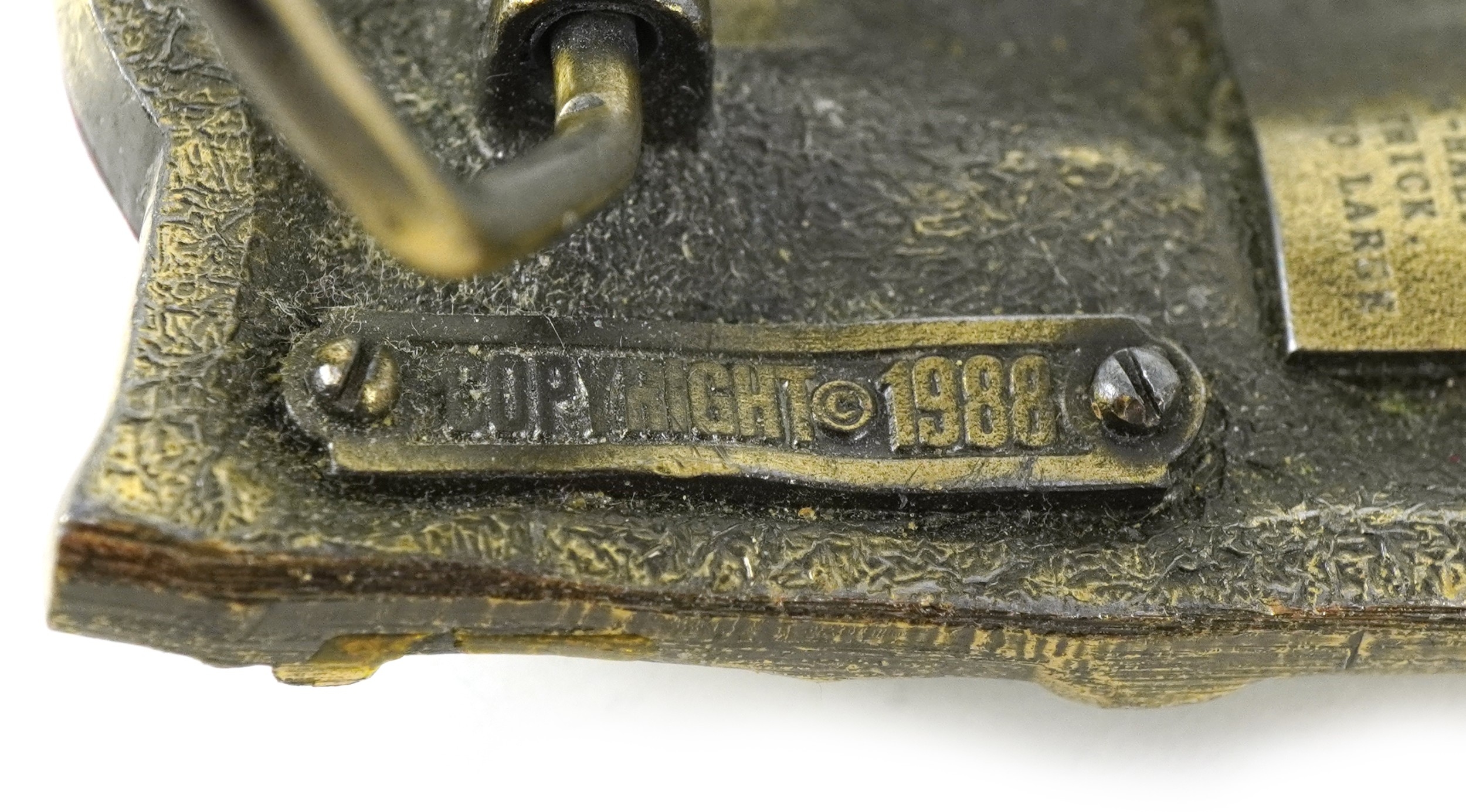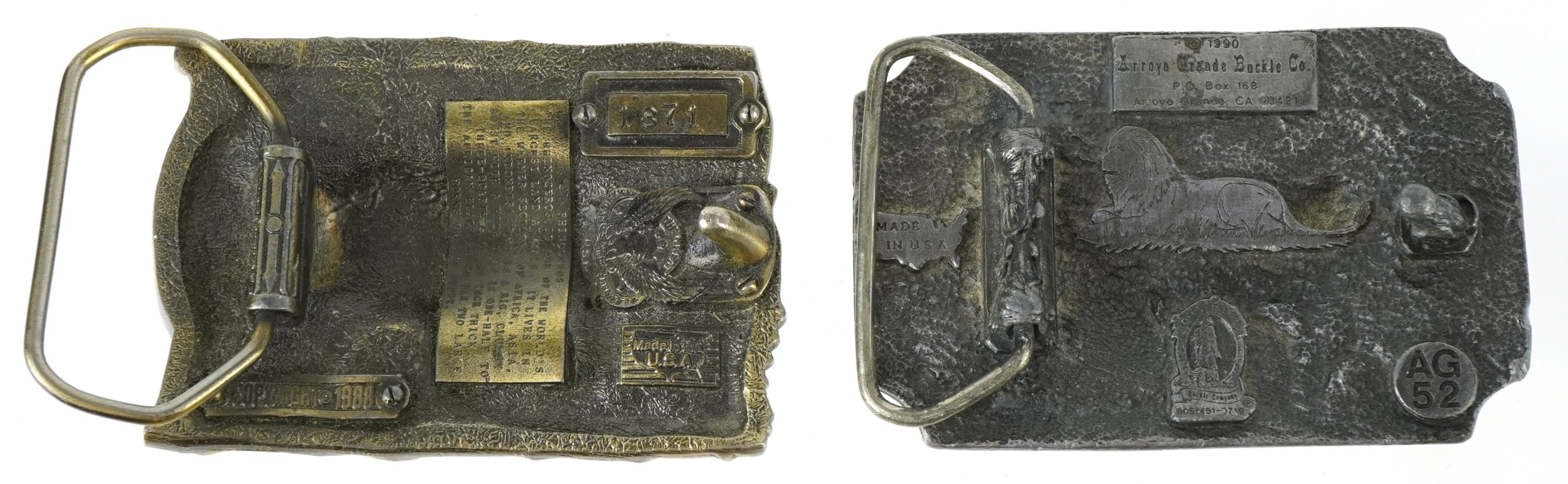 Two vintage American cast metal belt buckles including an en...