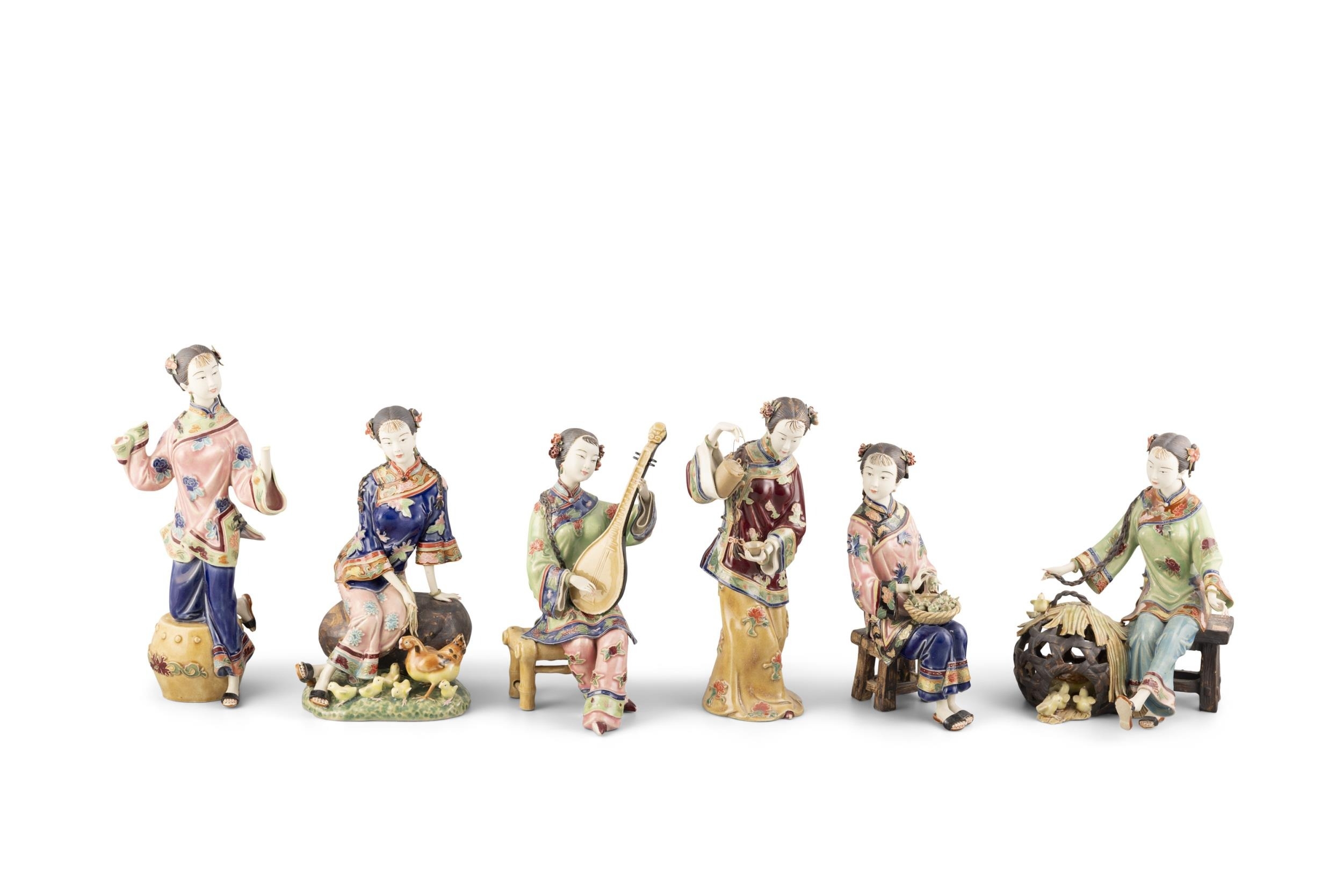 SIX CERAMIC CARVED FIGURES OF LADIES, SIGNED LIN WEI DONG 20????? ??? ??????6? China, second half of 20th century H: 21-29cm (6) Provenance: Collection of Professor Sean Mackey (1917-1997) ????????????·??(1917-1997)?????