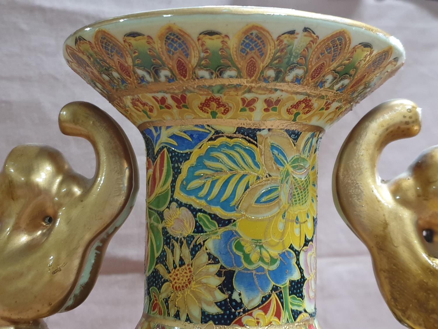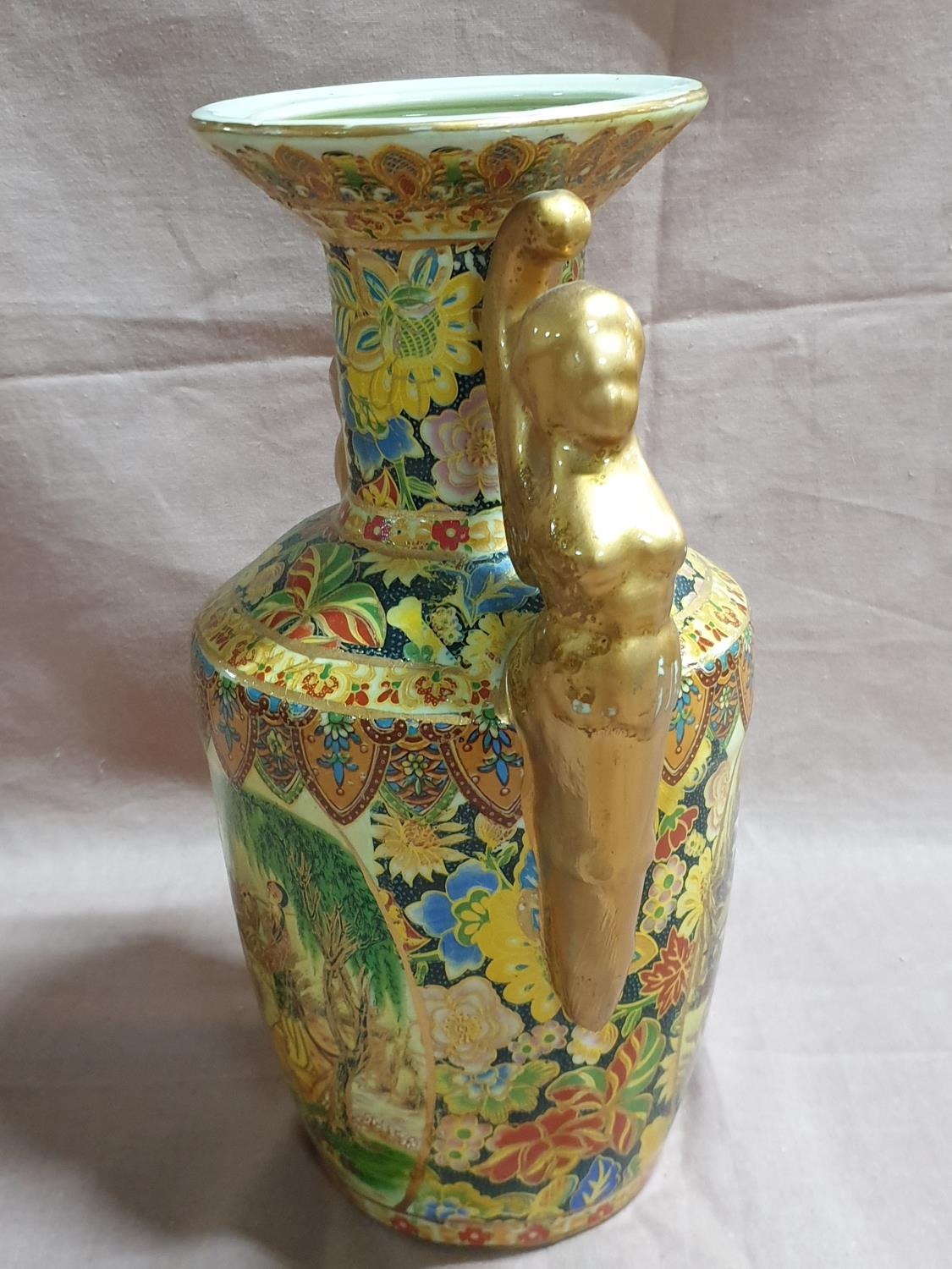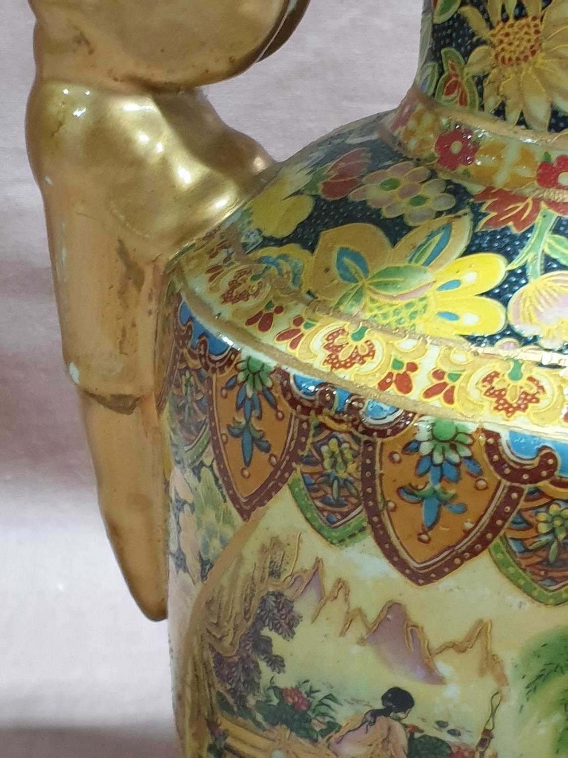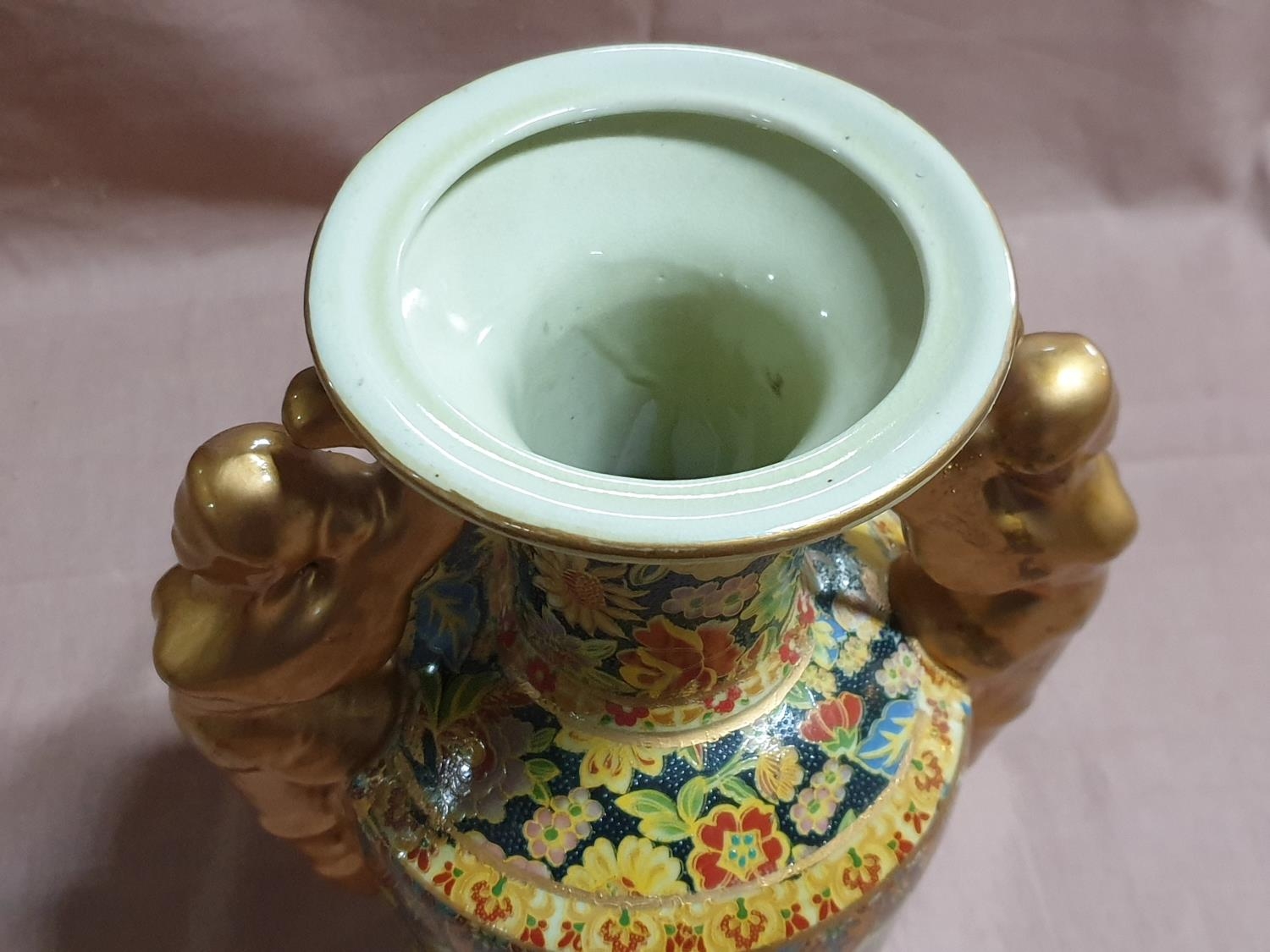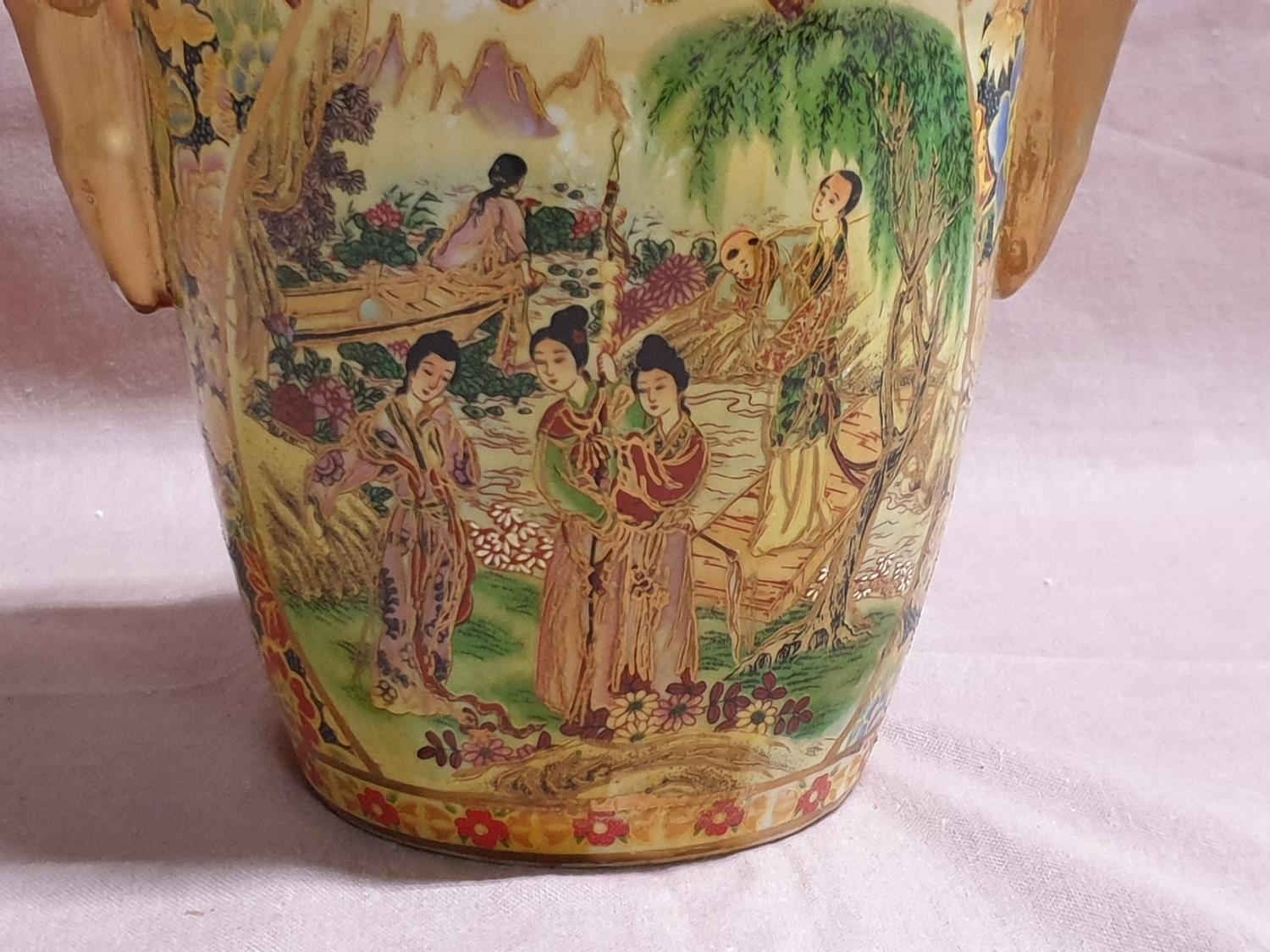 Satsuma Style Porcelain Vase with Asian Pattern (H:30cm) with Decorative Handles