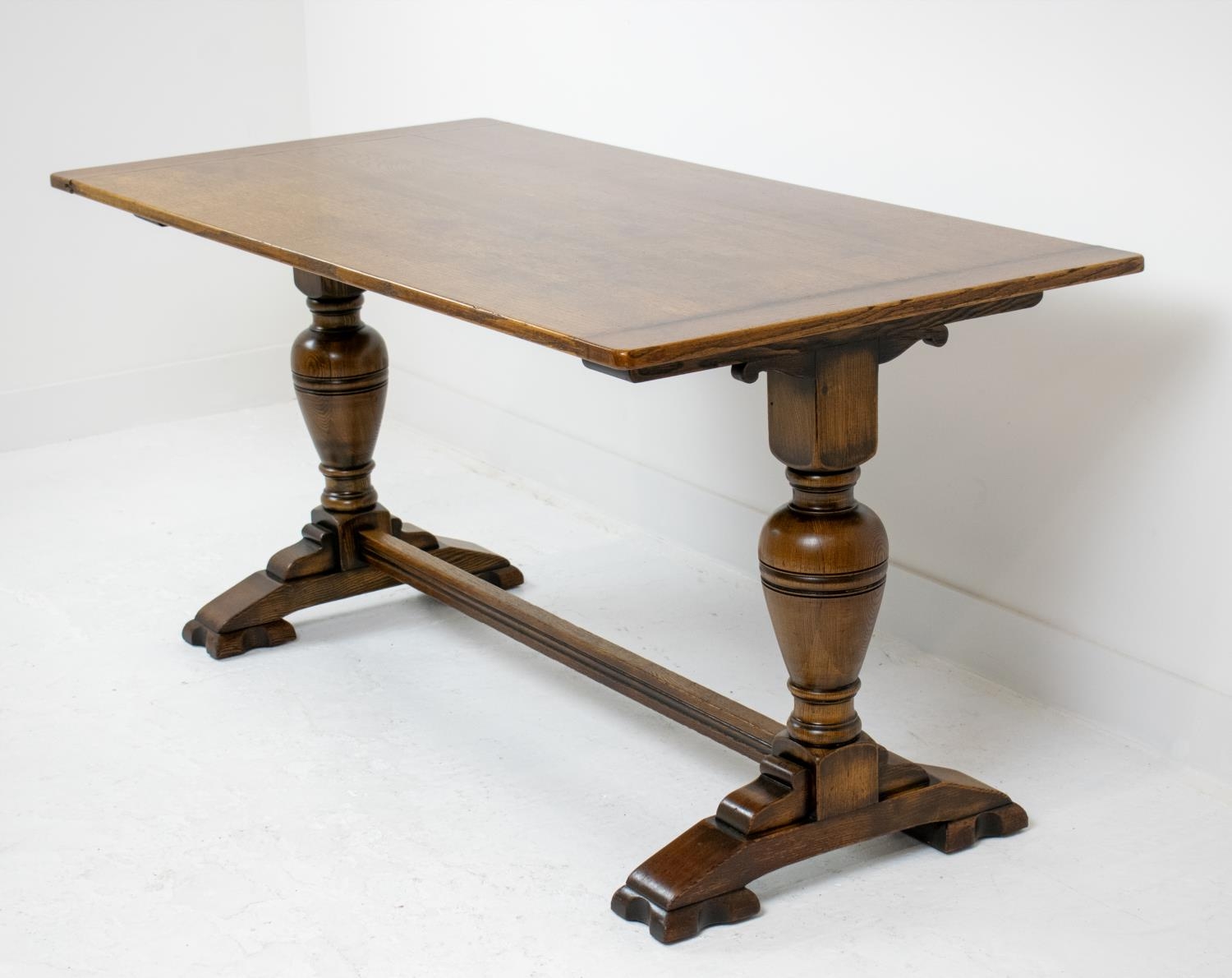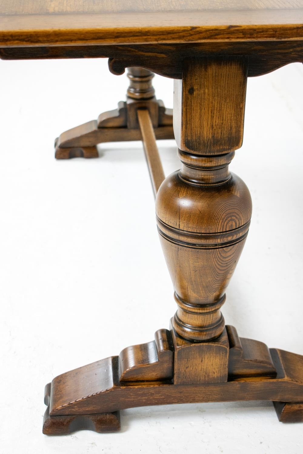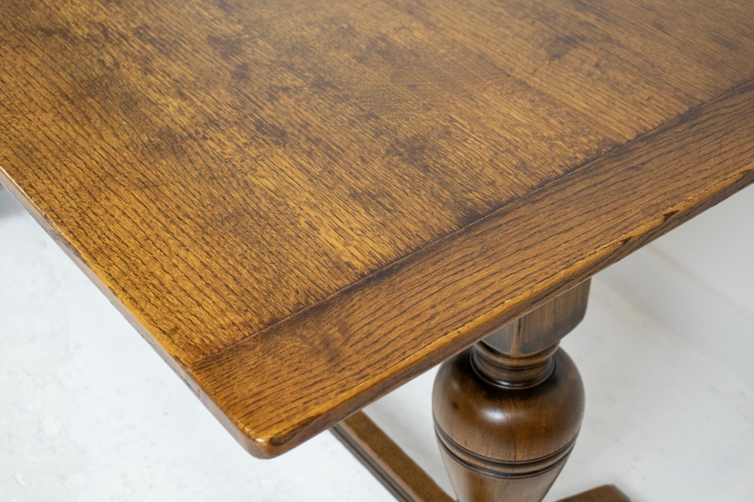 REFECTORY TABLE, Jacobean style oak with bulbous supports, 152cm x 77cm.