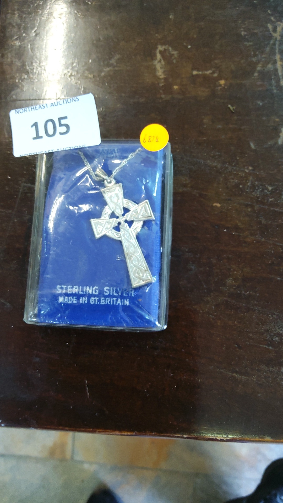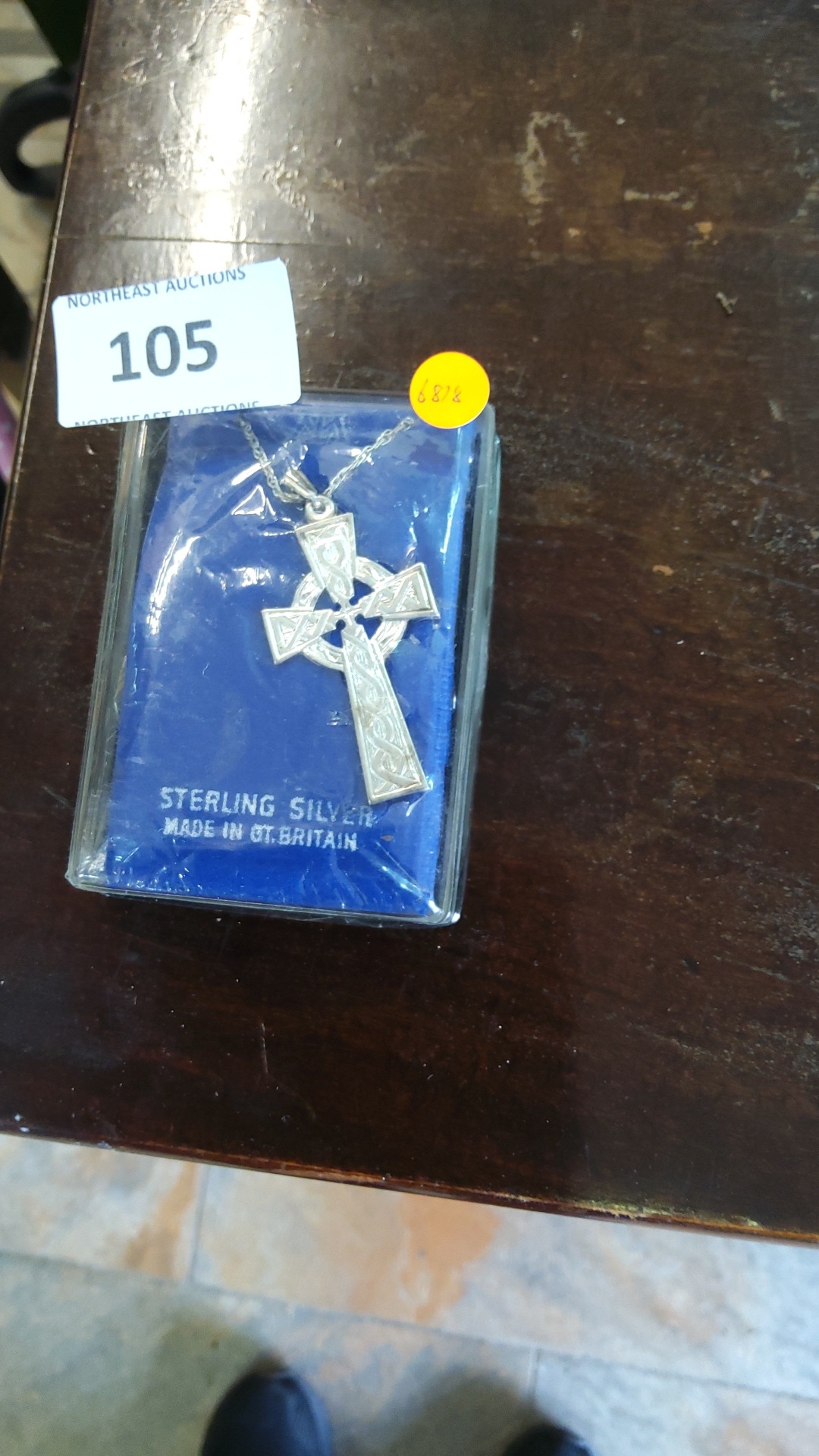 Celtic knotwork cross pendant with circular nimbus, on fine chain, marked “Sterling Silver