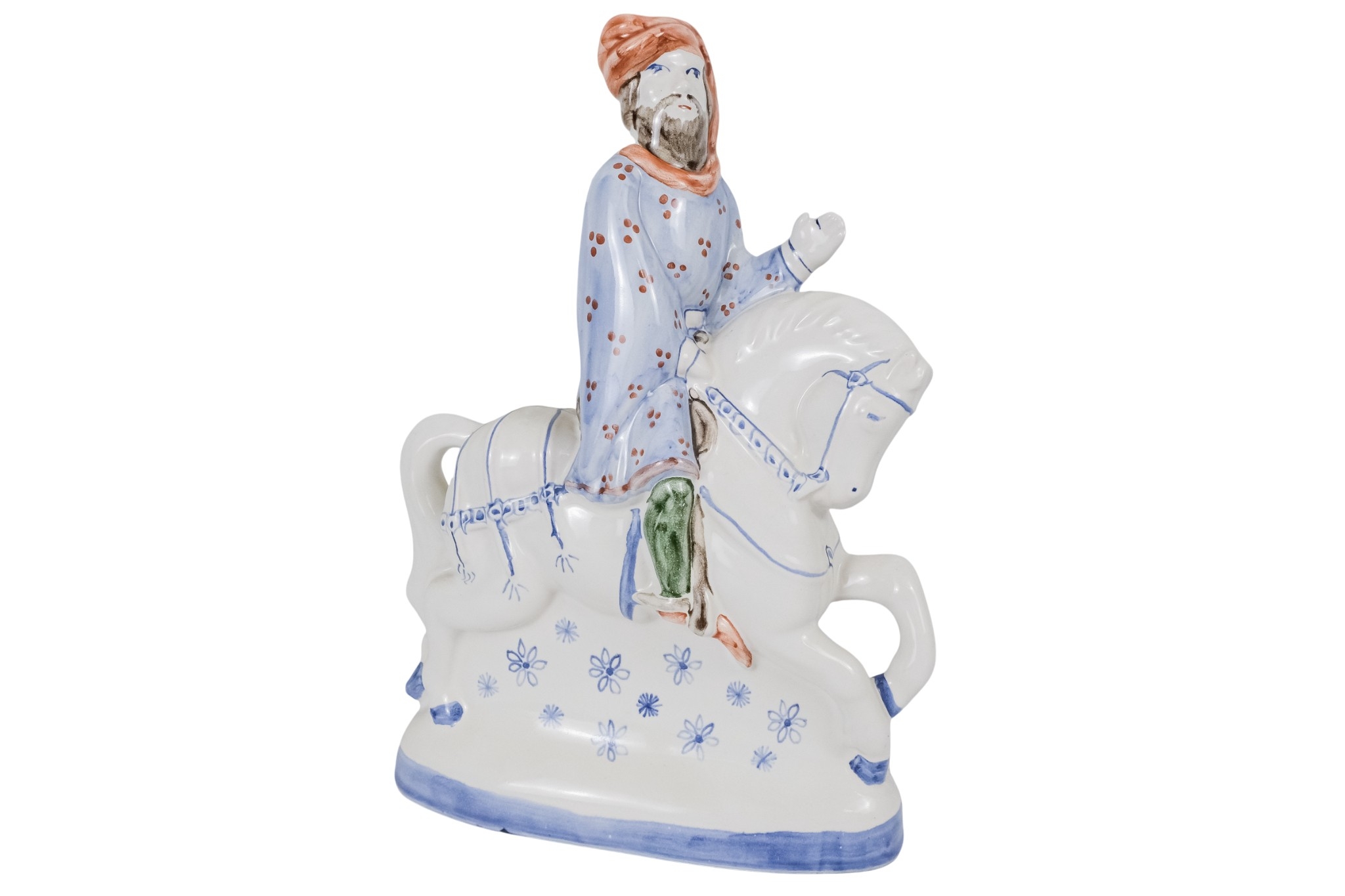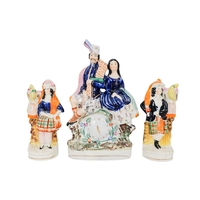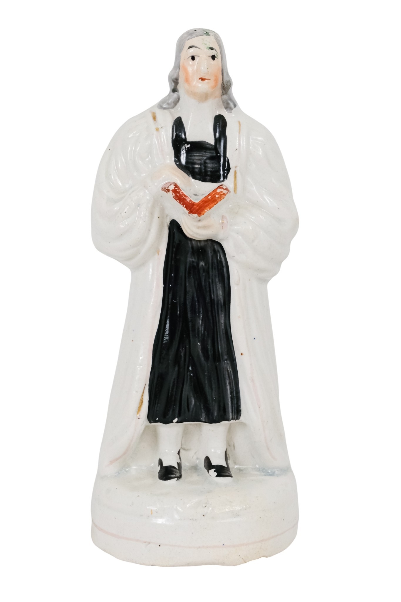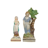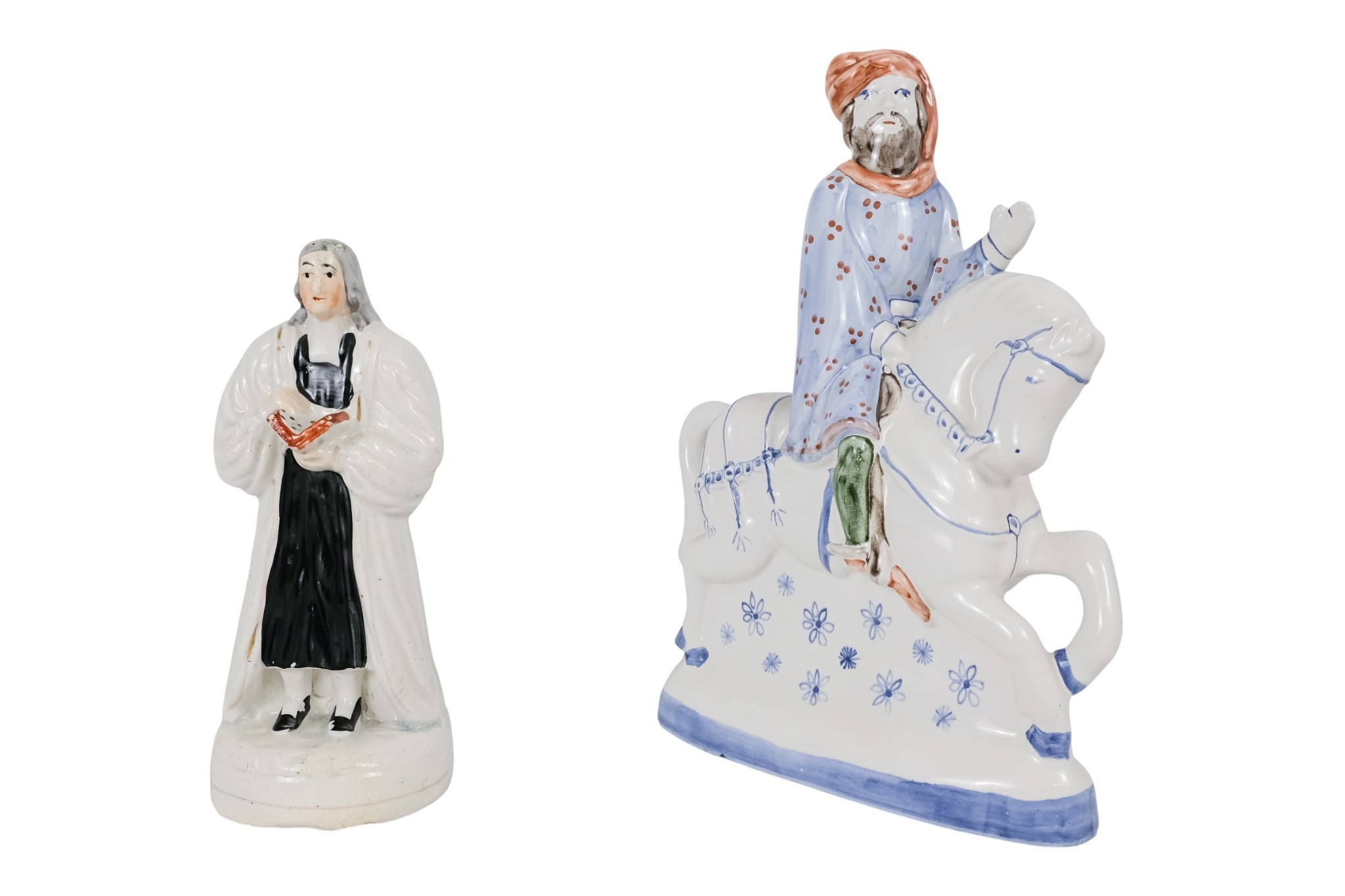 A 20th century Rye Pottery 'Canterbury Tales' flatback figure - The Knight, 25cm high, together with a 19th century Staffordshire figure of a cleric. (2)