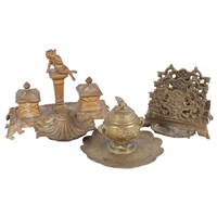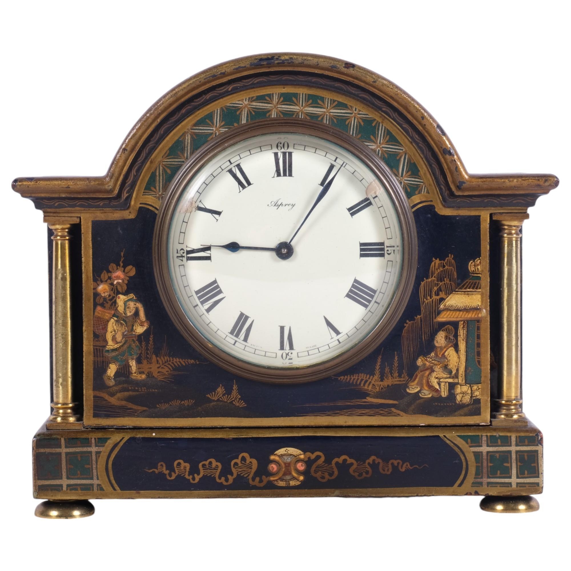 Antique Asprey's clock in ornate embossed lacquered and gilded case, with brass mounts, H17cm