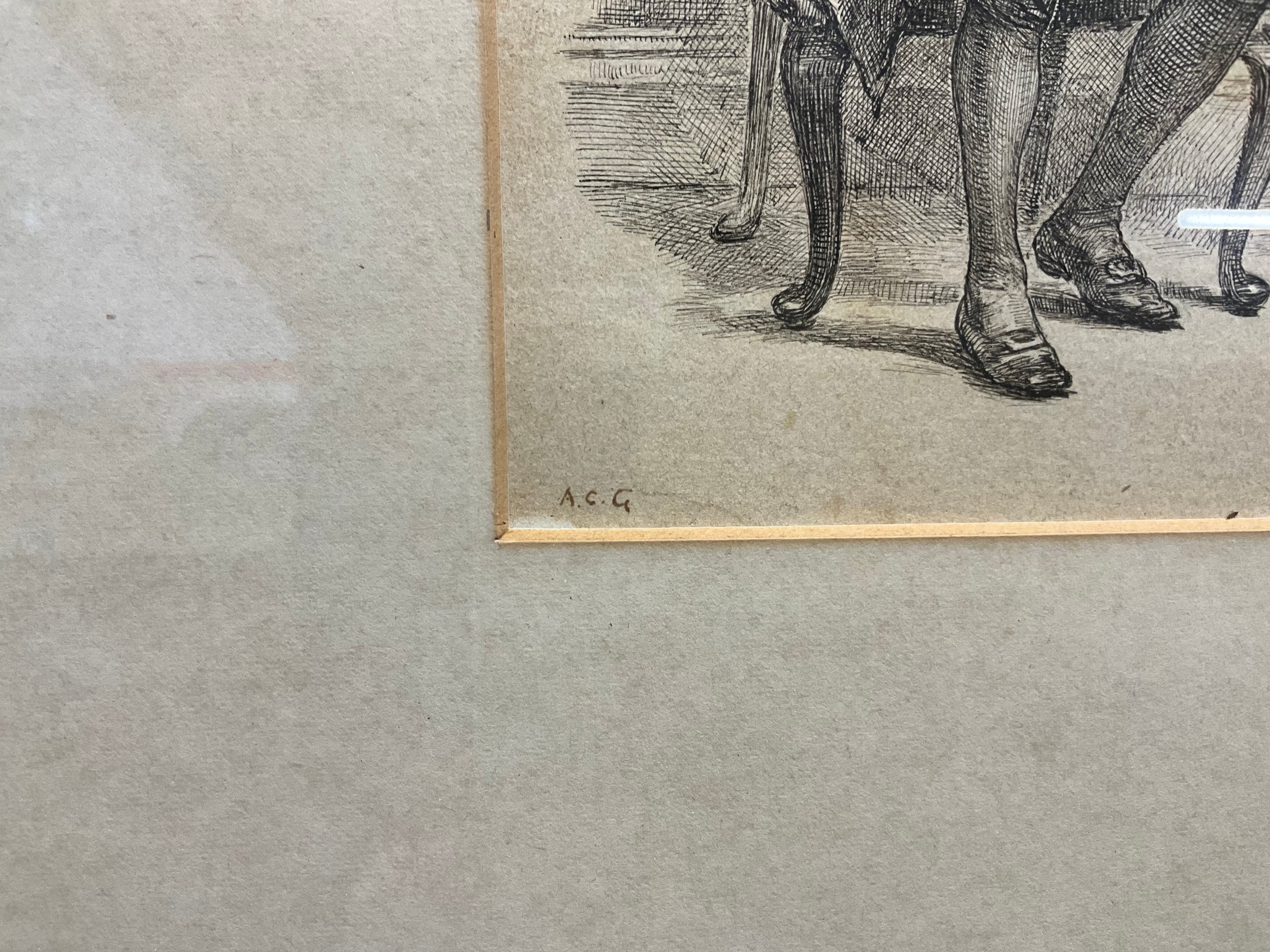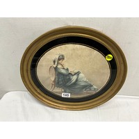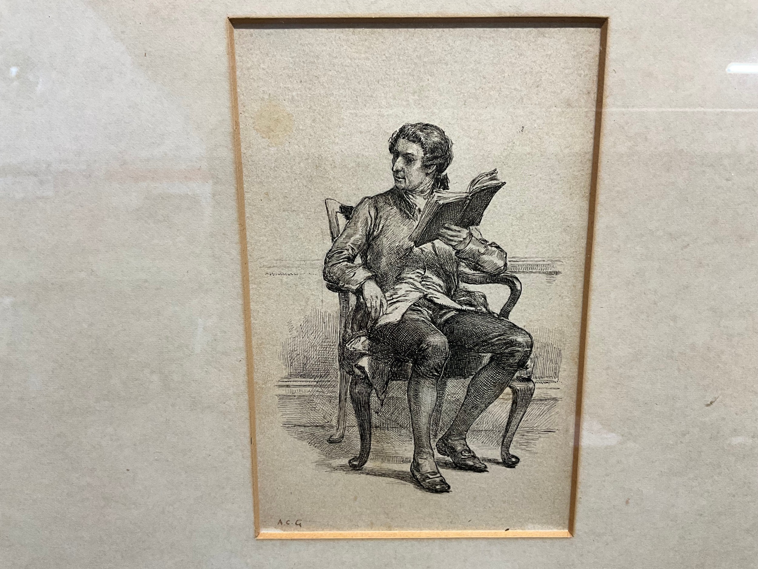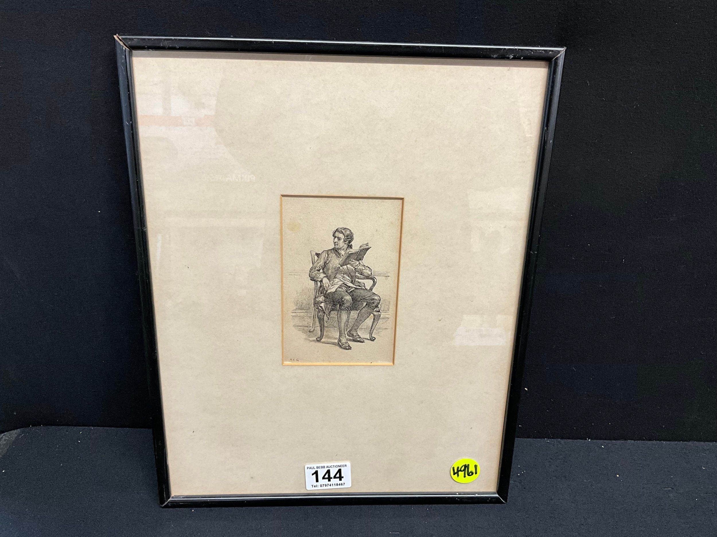 VINTAGE FRAMED ENGRAVING OF SEATED GENTLEMAN SIGNED TO MARGIN 14"X12"
