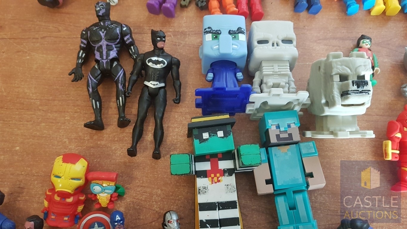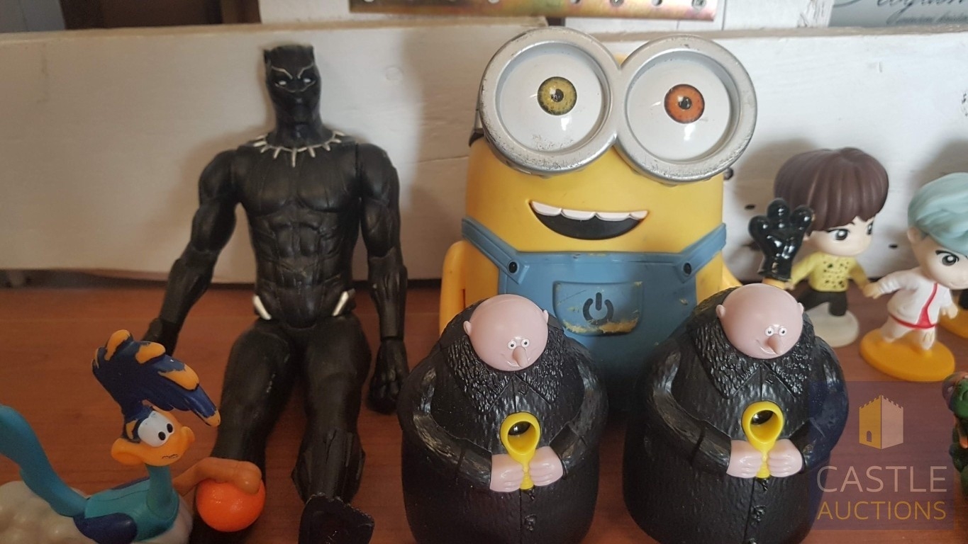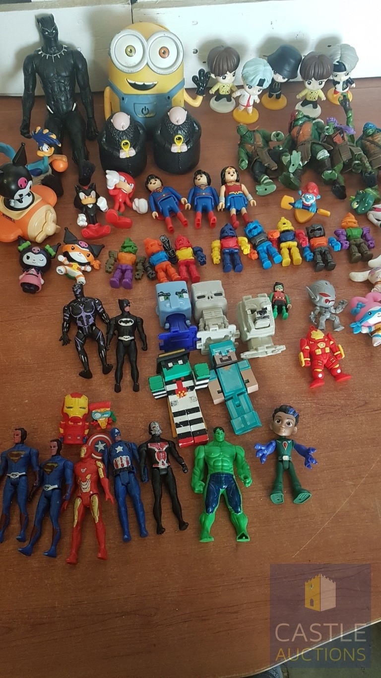 Large Collection of Various Cartoon Hero Figurines, Inc. Minecraft Toy Action Figurines, Kuromi Figurines, Minion Figurres, Tinytan x BTS 2025, Mutant Ninja Turtles and Others, See Multiple Photos.