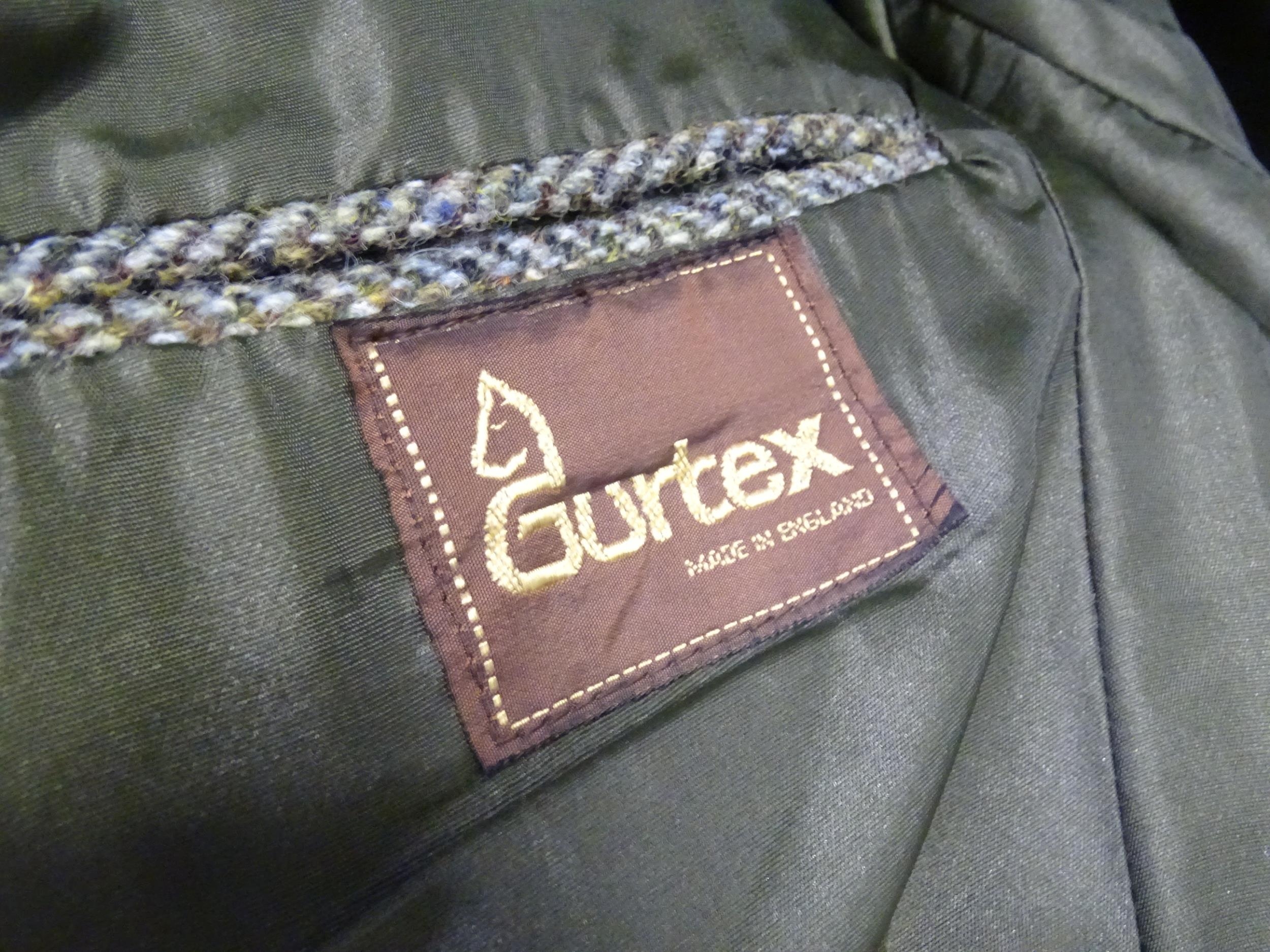 A Harris Tweed hacking jacket by Gurtex, with three buttons to front and single vent to rear, measuring approx 36" chest, 30" collar to hem, 24" sleeve