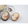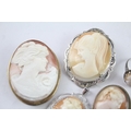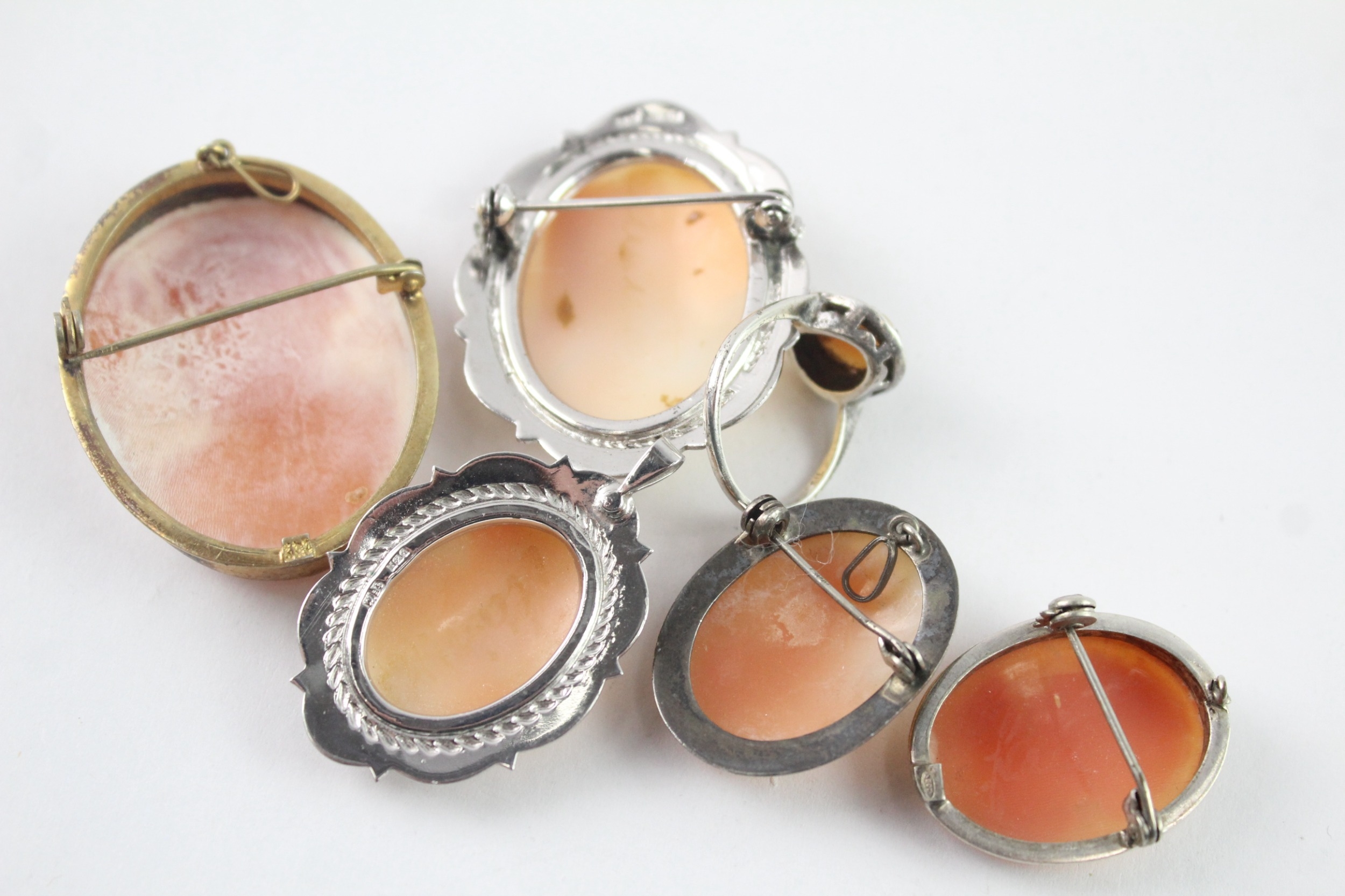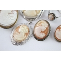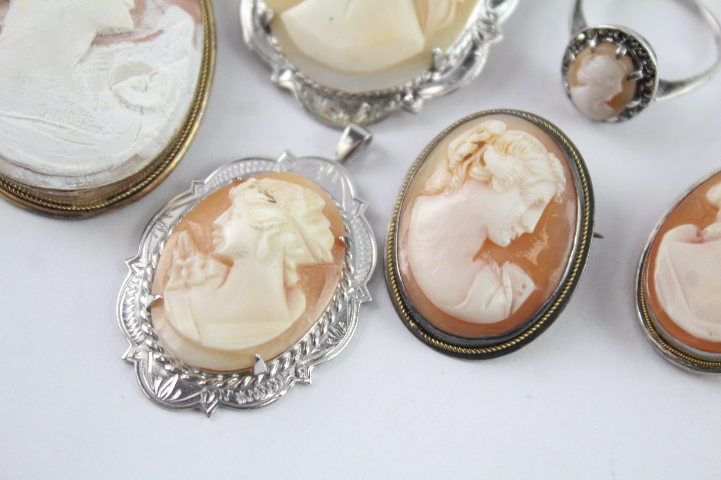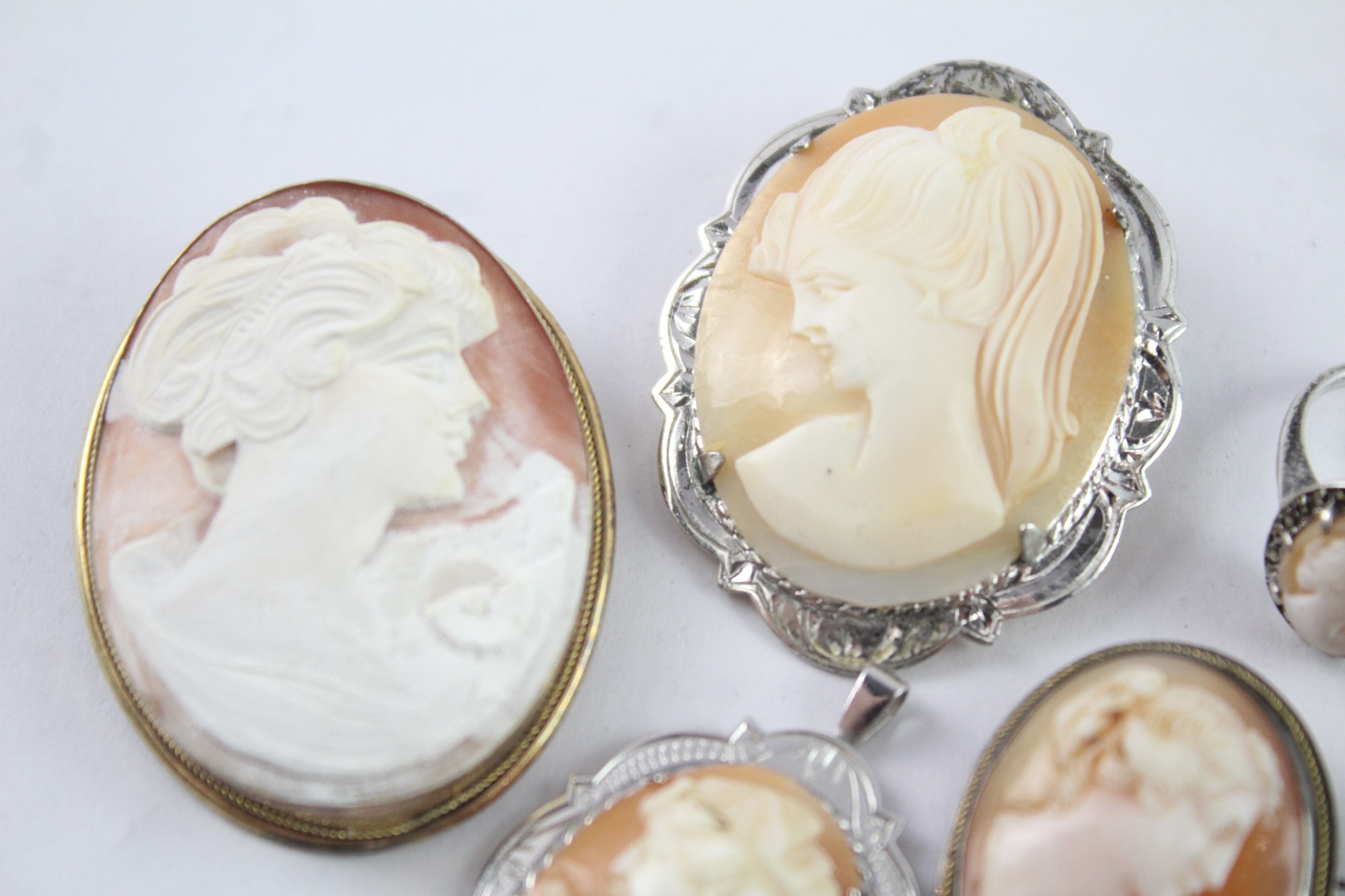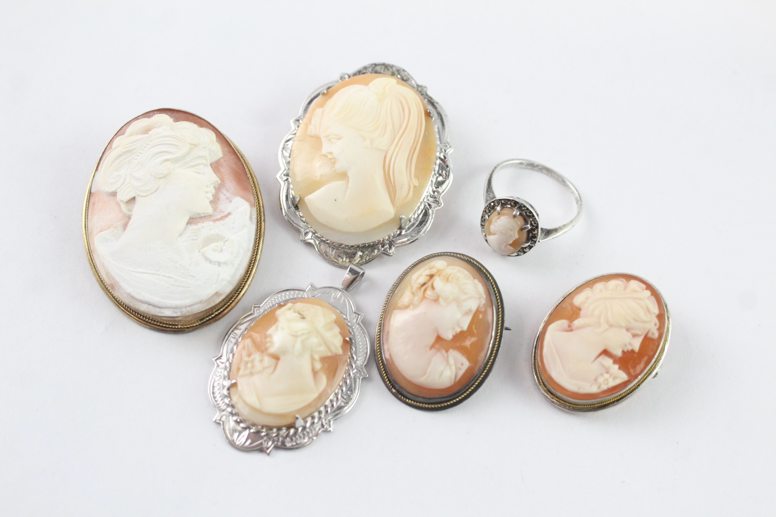 Collection of Silver Shell Cameo Jewellery inc. Brooches, Pendant, Ring x 6 (33g)