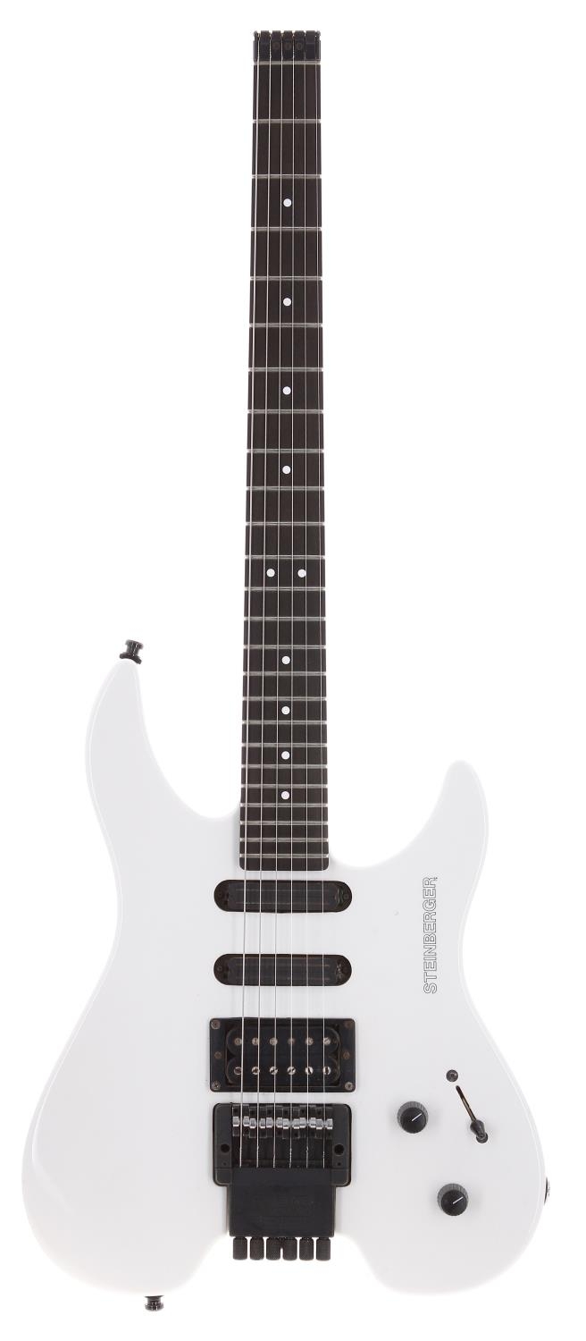 1991 Steinberger GR4 electric guitar, made in USA; Body: white finish, light surface buckle scratching to back, a few other minor marks otherwise good; Neck: graphite, a few dings to first position; Fretboard: graphite; Frets: good; Electrics: working; Hardware: good; Case: original gig bag; Weight: 3.31kg; Overall condition: good for age