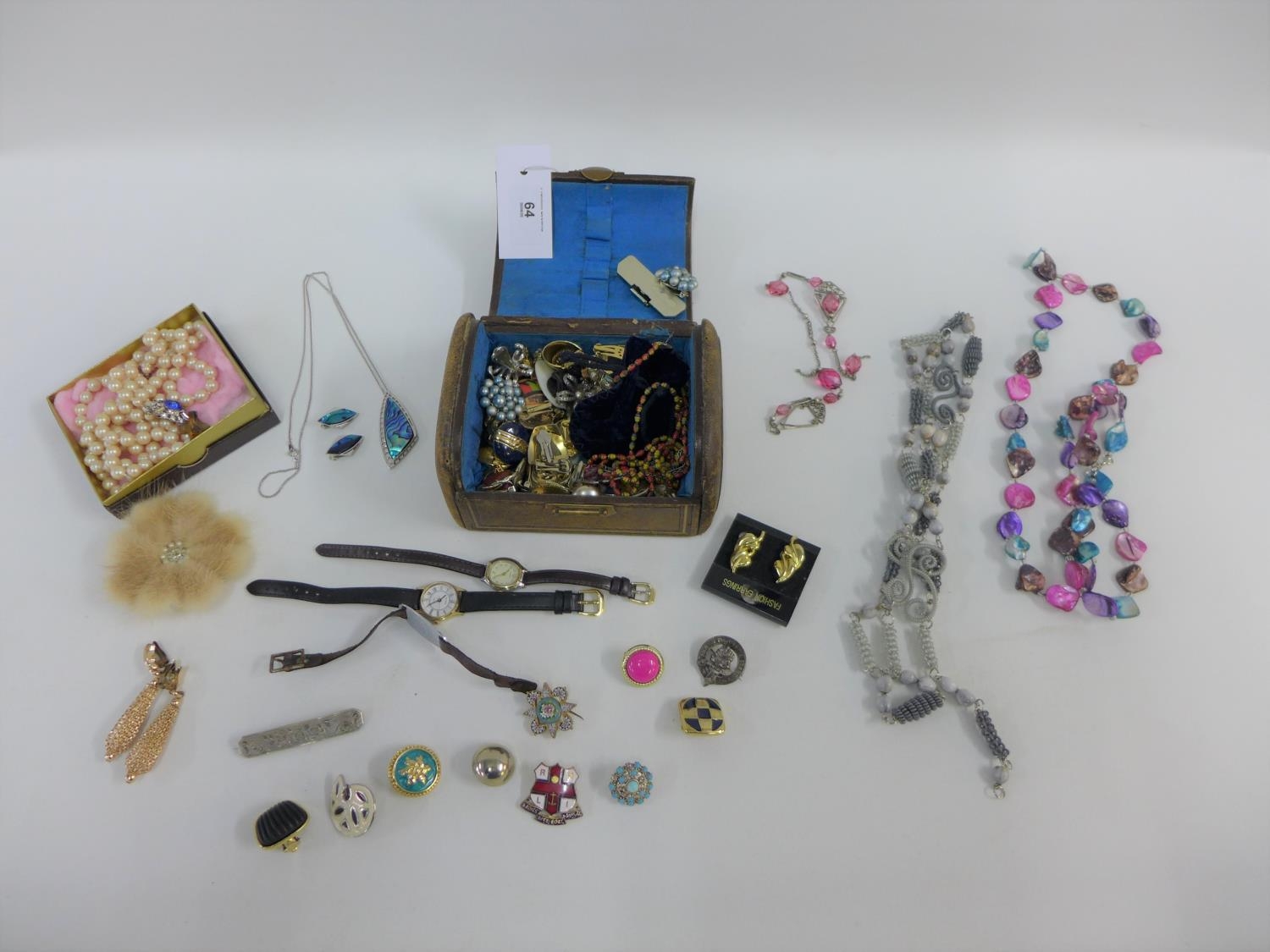 A leather jewellery box containing a quantity of costume jewellery, etc (a lot)