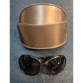 A pair of vintage ladies gucci sunglasses in case.