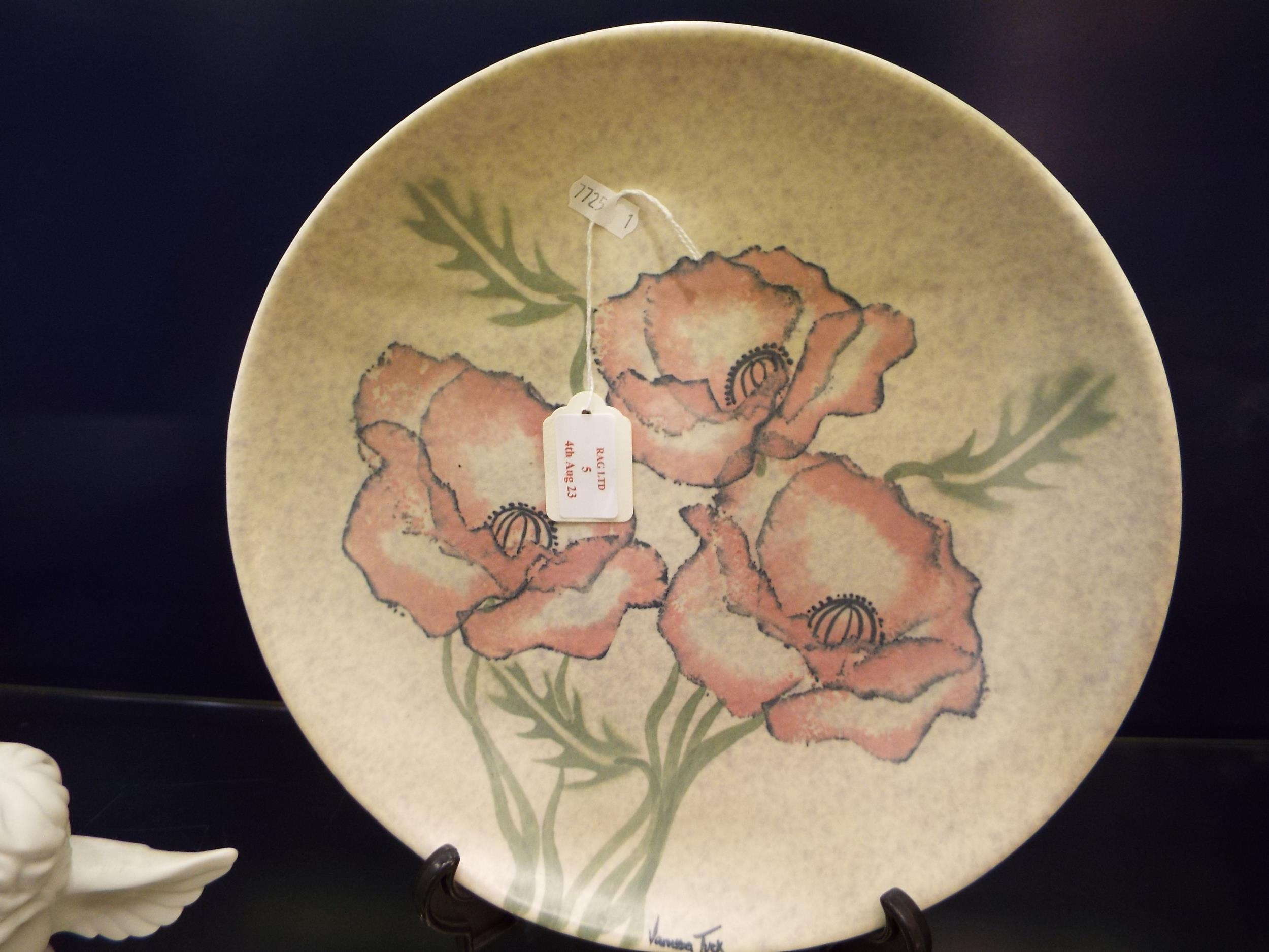 A Vanessa Tuck signed pottery charger having poppy decoration