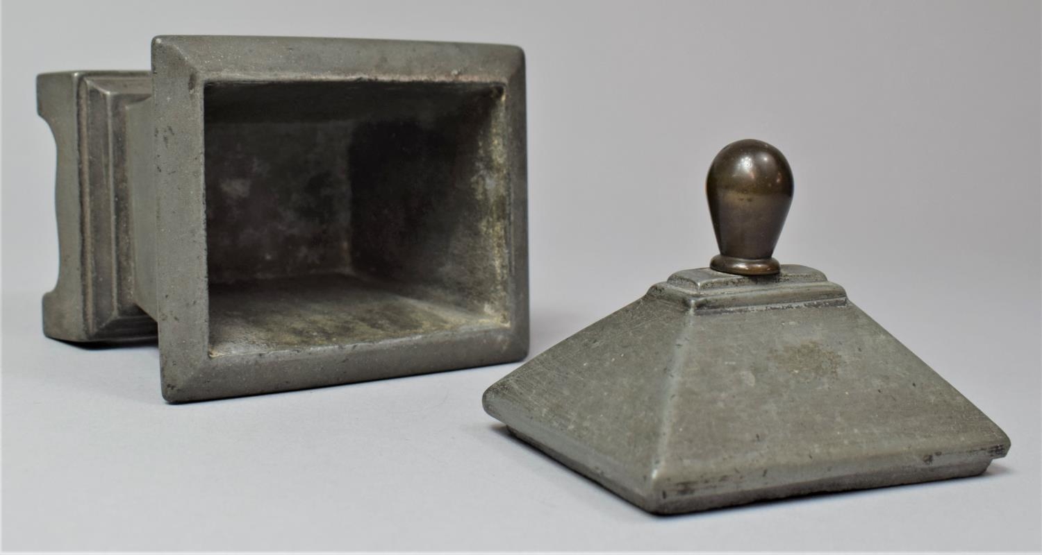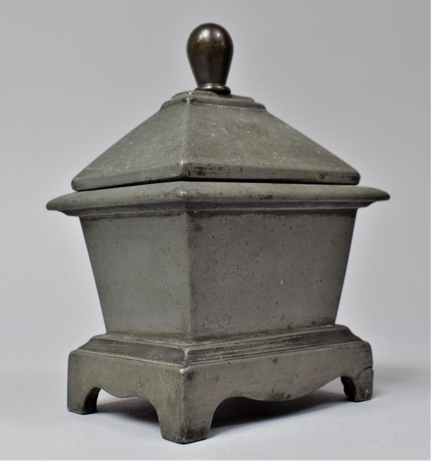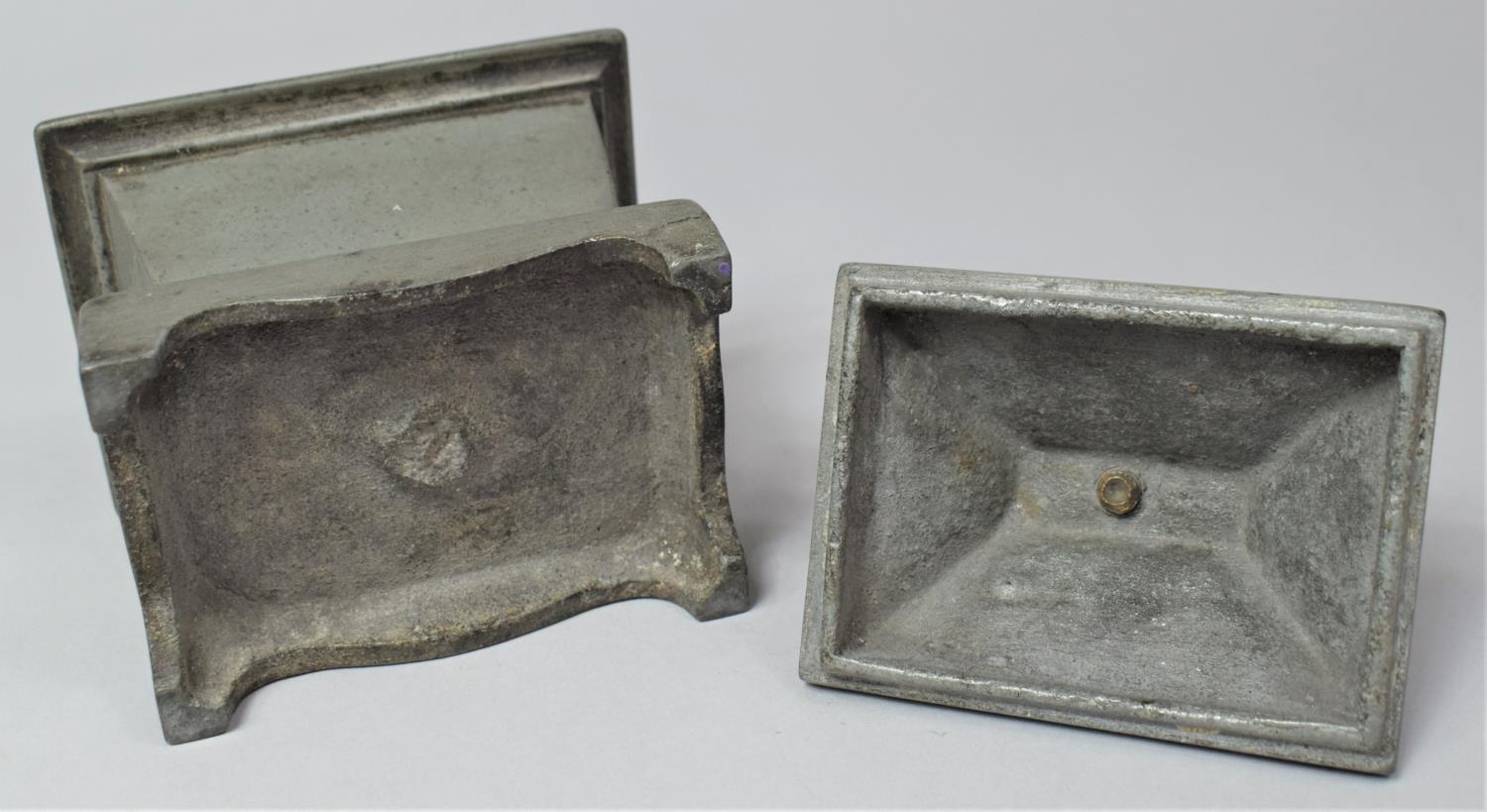 A 19th Century Lead Tobacco Box of Sarcophagus Form, 11cm Wide