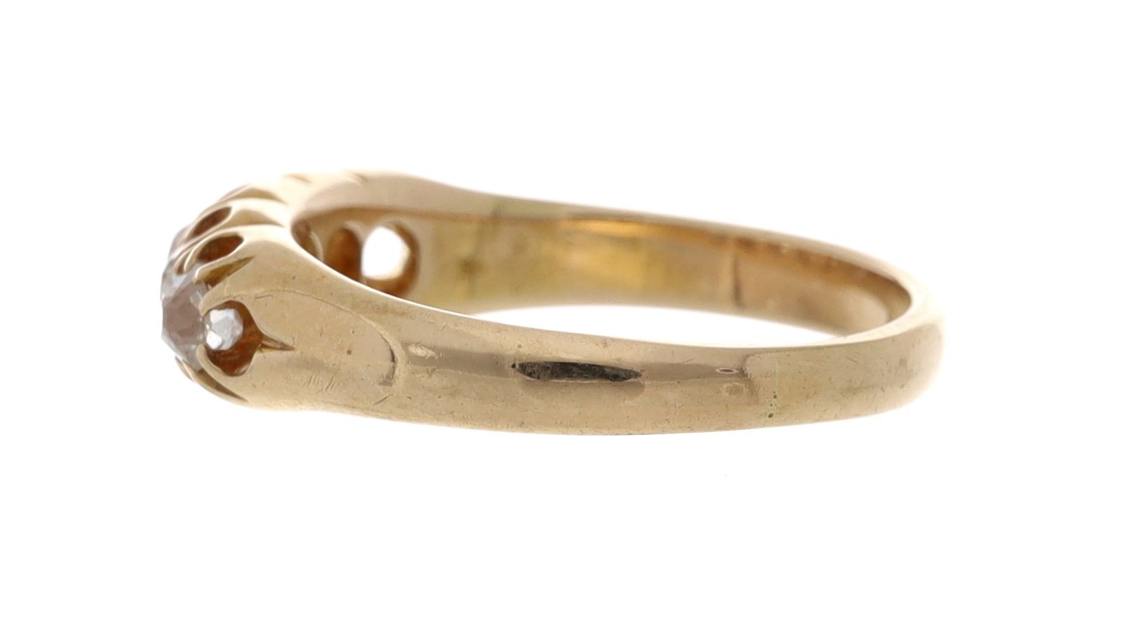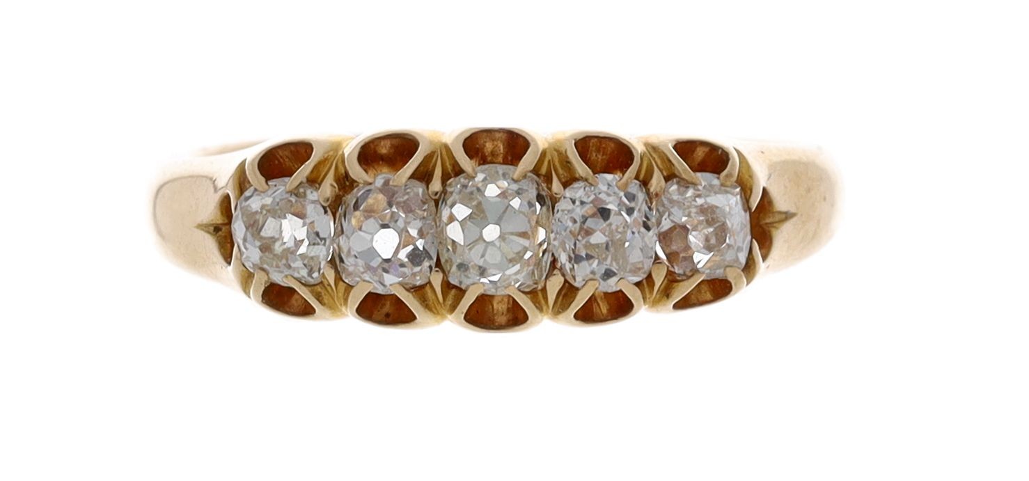 Attractive antique 18ct claw set five stone old-cut diamond ring, 0.50ct approx in total, clarity VS2/SI1, colour G-I, width 5mm, 3.3gm, ring size K