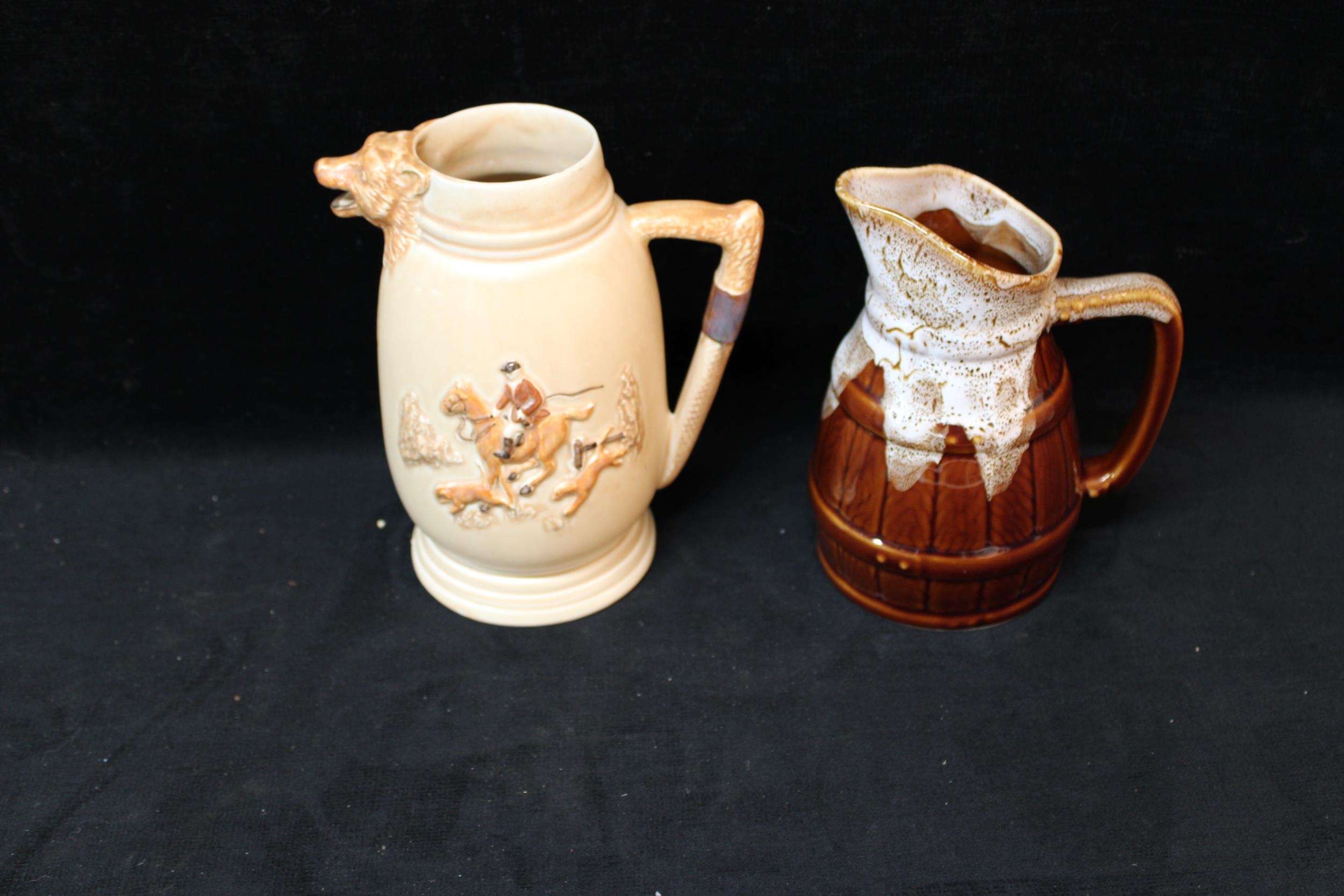 Two pottery jugs tallest 20cmH